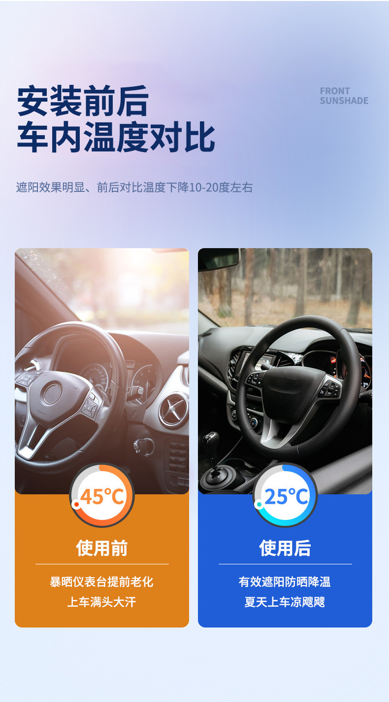 强烈的阳光从侧窗直射进来,不仅刺眼,影响驾车,难以忍受,高温还会损坏到车内的真皮内饰,本遮阳挡,有效隔热及高温照射,方便使用!