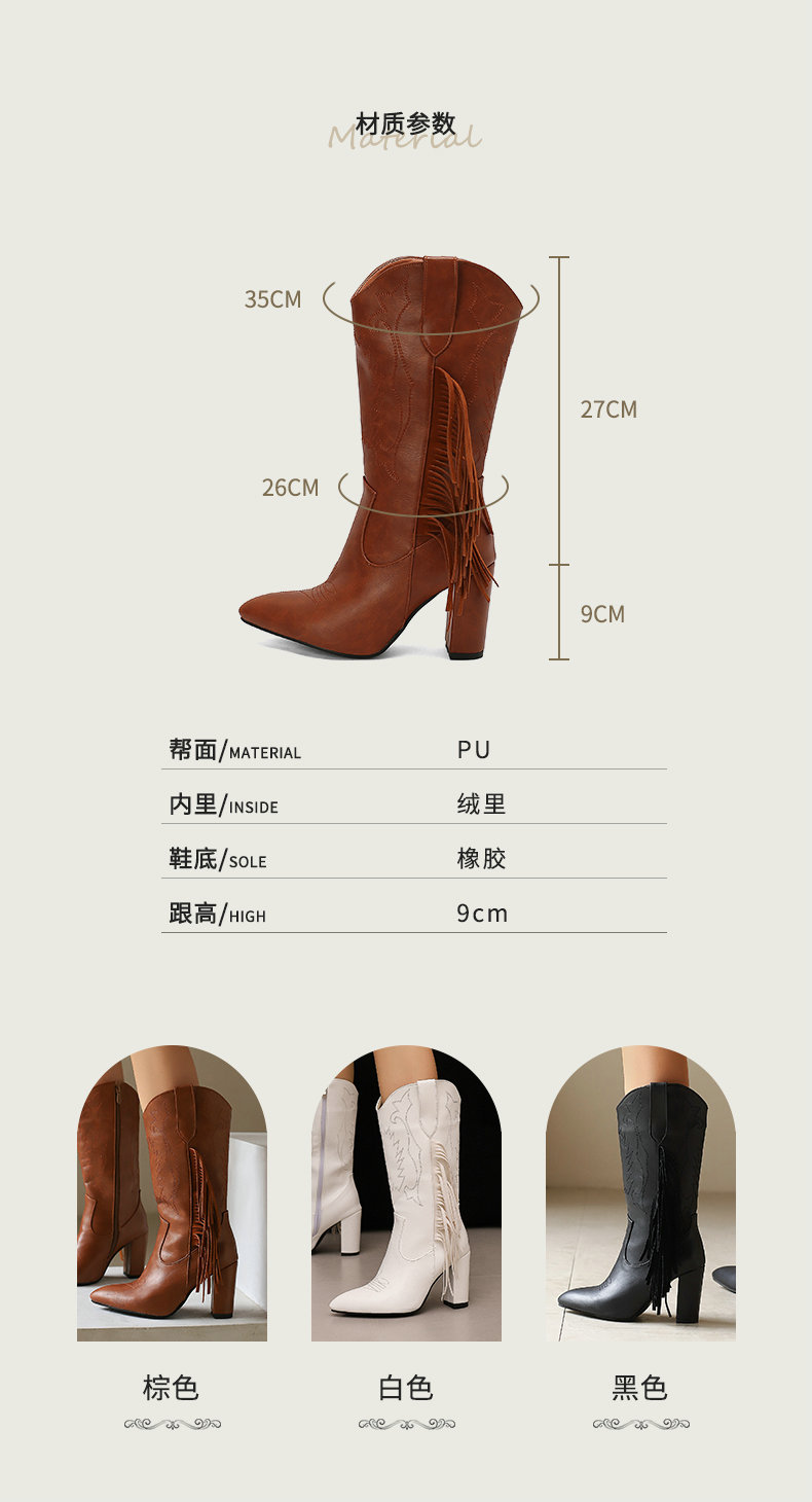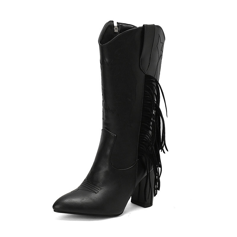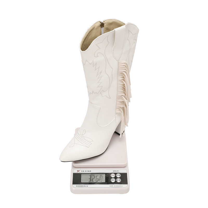 Европейские и американские трансграничные 2024 осенние и зимние наконечники сапоги рыцаря с вышитыми бахромами сапоги белые новые западные джинсовые сапоги