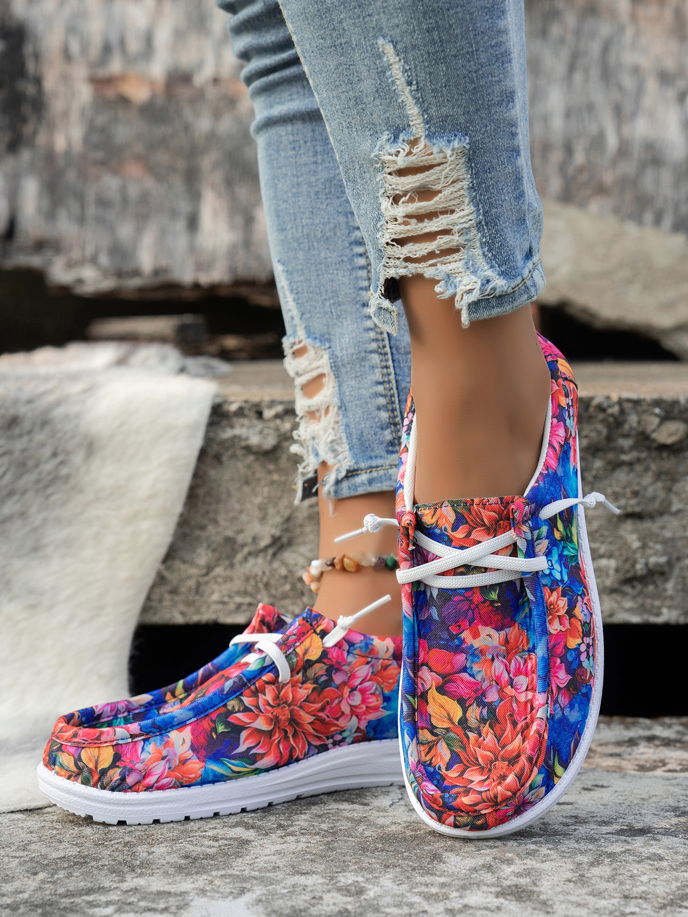 2025TEMU трансграничный новый европейский и американский стиль с цветочным принтом спереди на шнуровке с низким верхом экспортный большой размер модный спортивный женский повседневный стиль