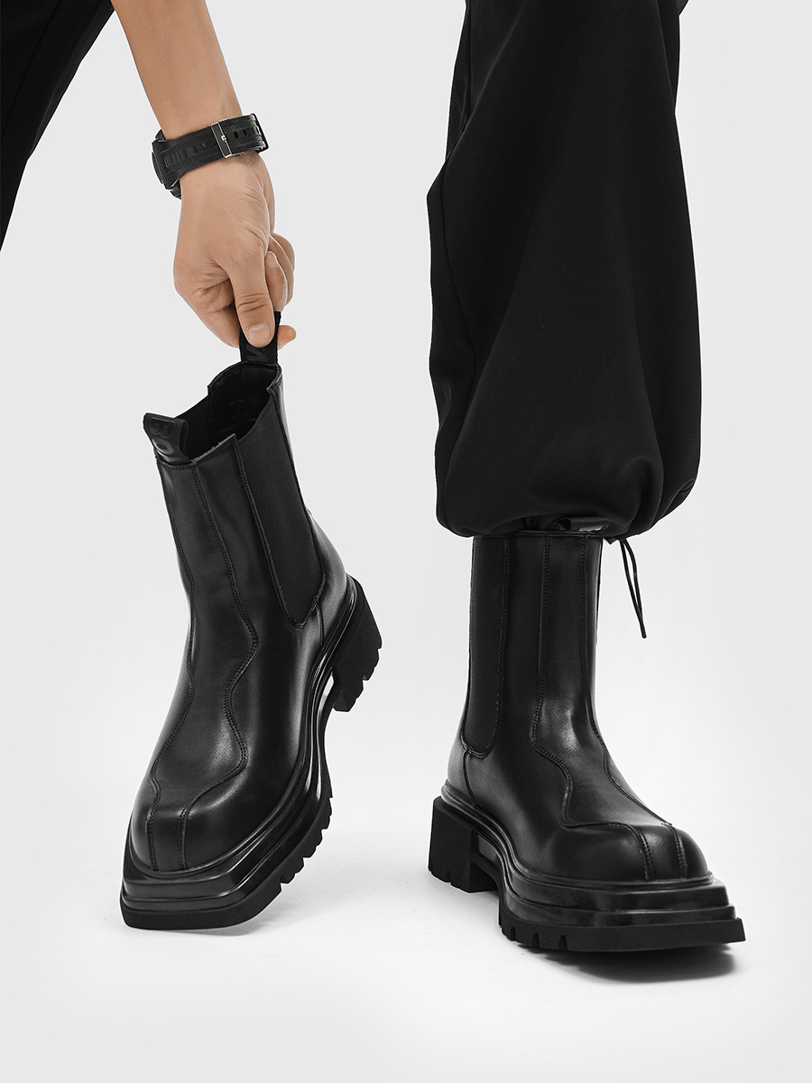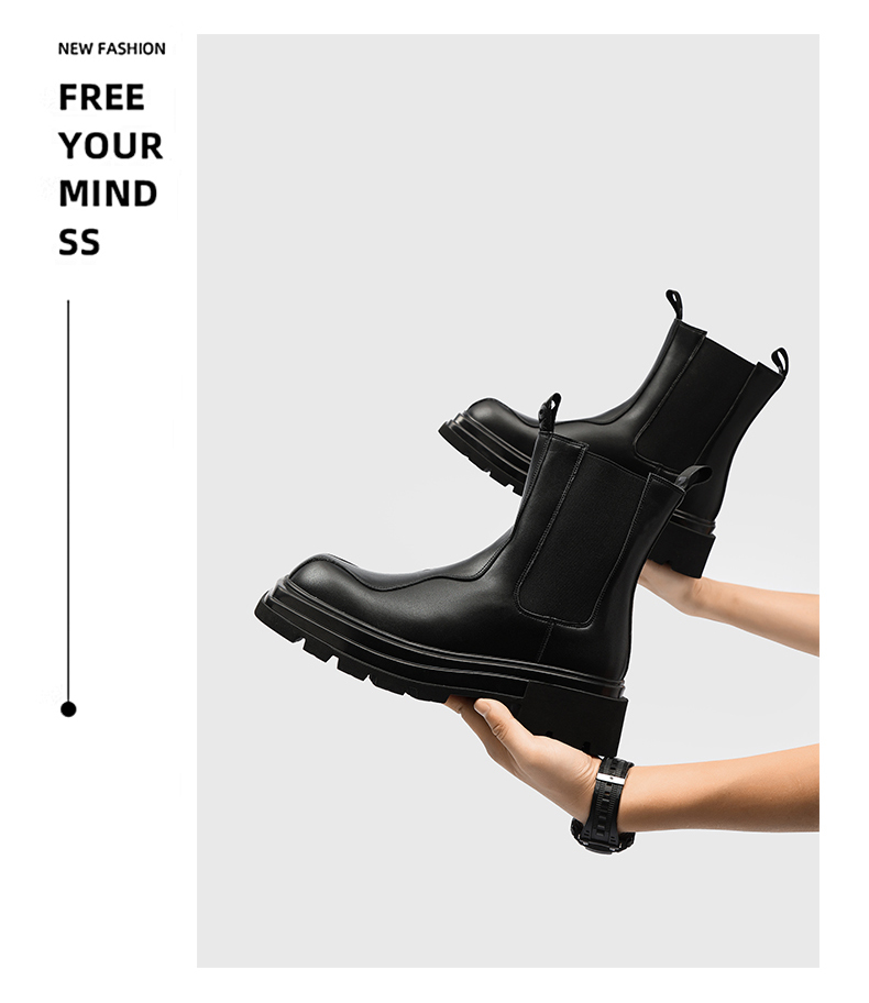 Ботинки, мужские летние кожаные туфли с высоким берцем, дымоходные ботинки в британском стиле в стиле ретро, ботинки челси на одной ноге на толстой подошве