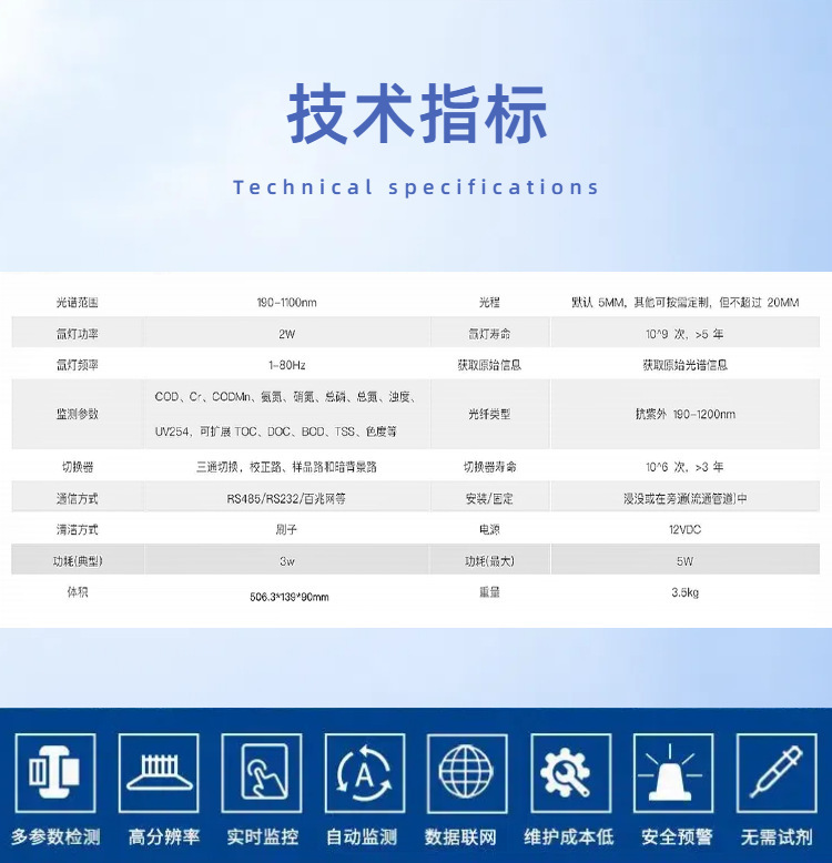 Полноспектральный анализатор качества воды Многопараметрический анализатор спектрального обнаружения качества воды Автоматический анализатор качества воды