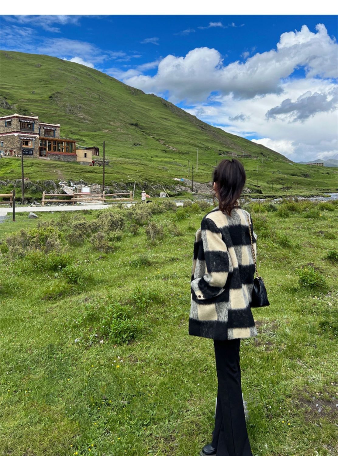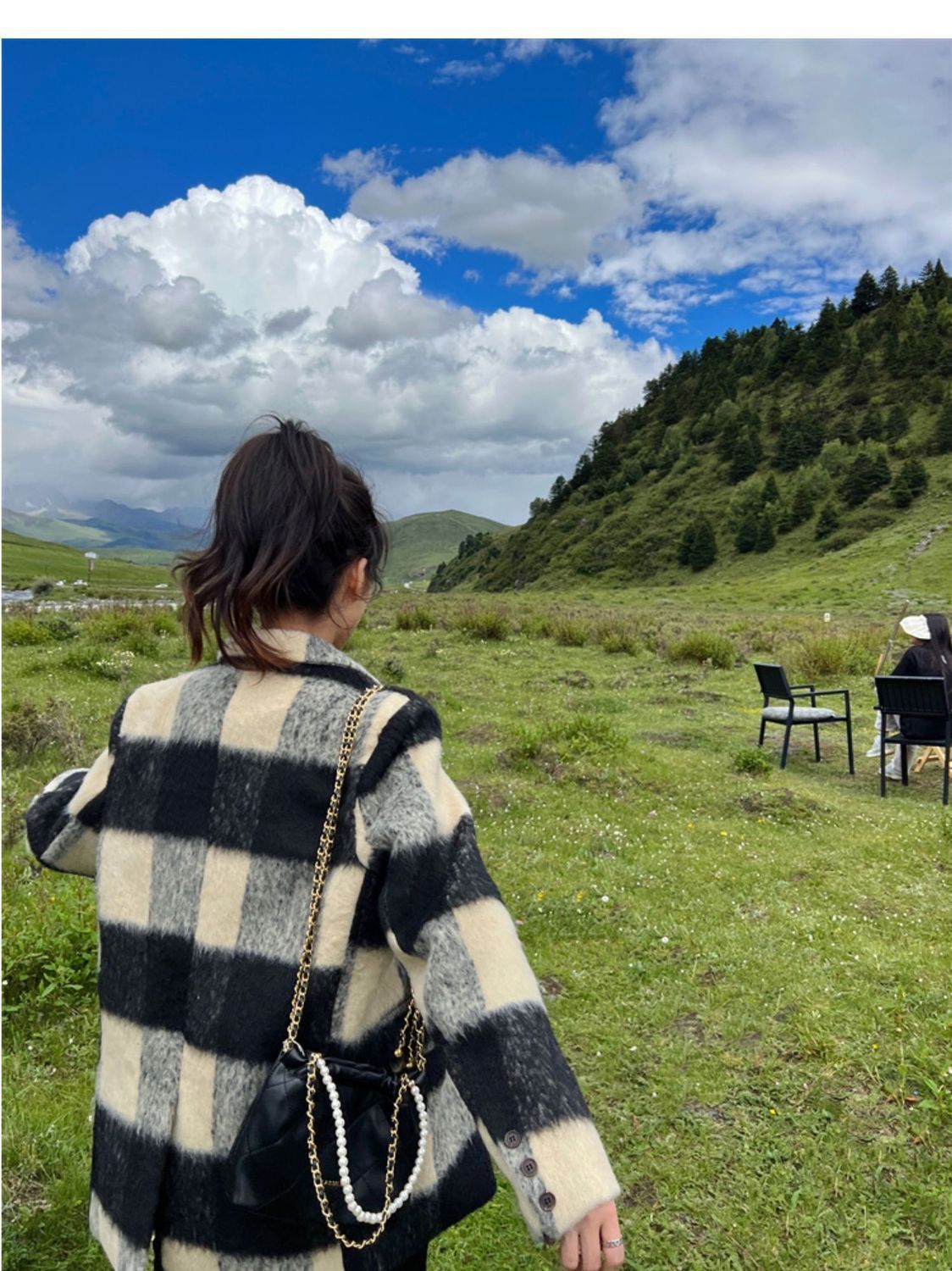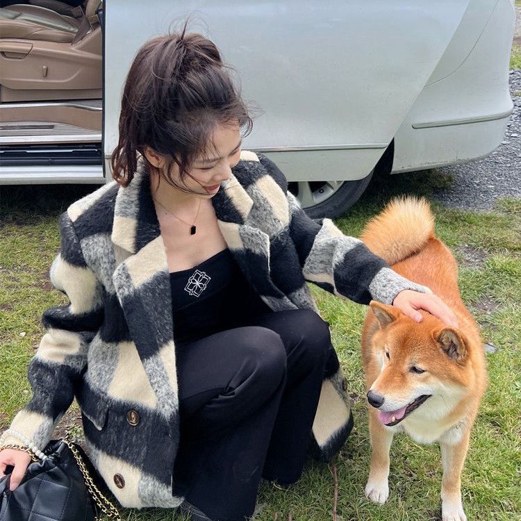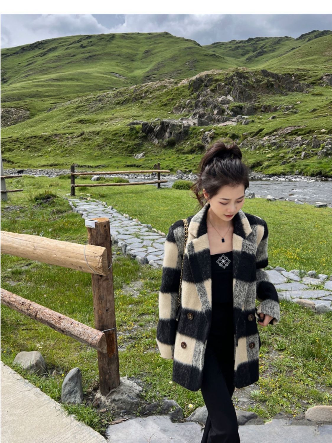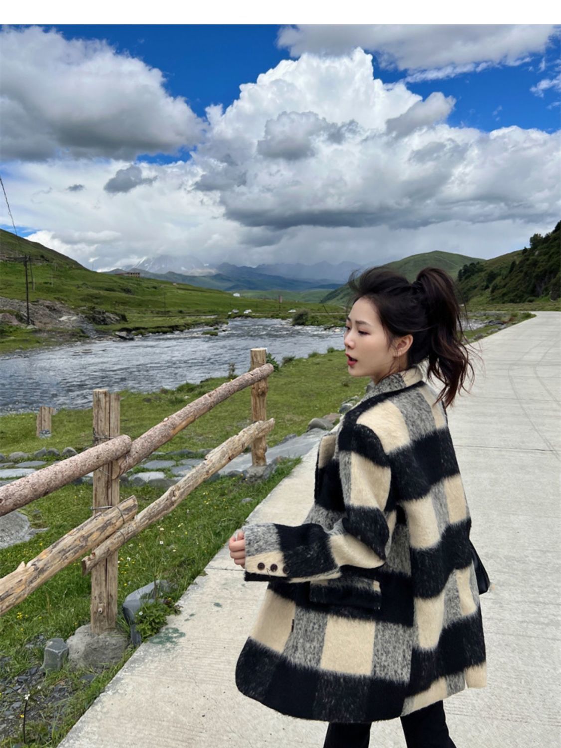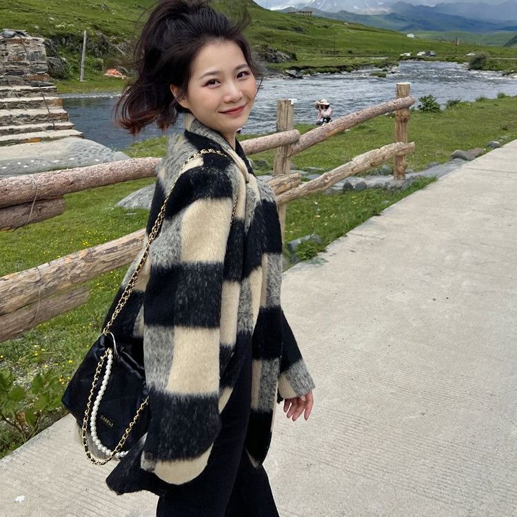 Новый короткий клетчатый 2024 шерстяной пиджак толстый осенью и зимой маленький человек ретро шерстяное пальто