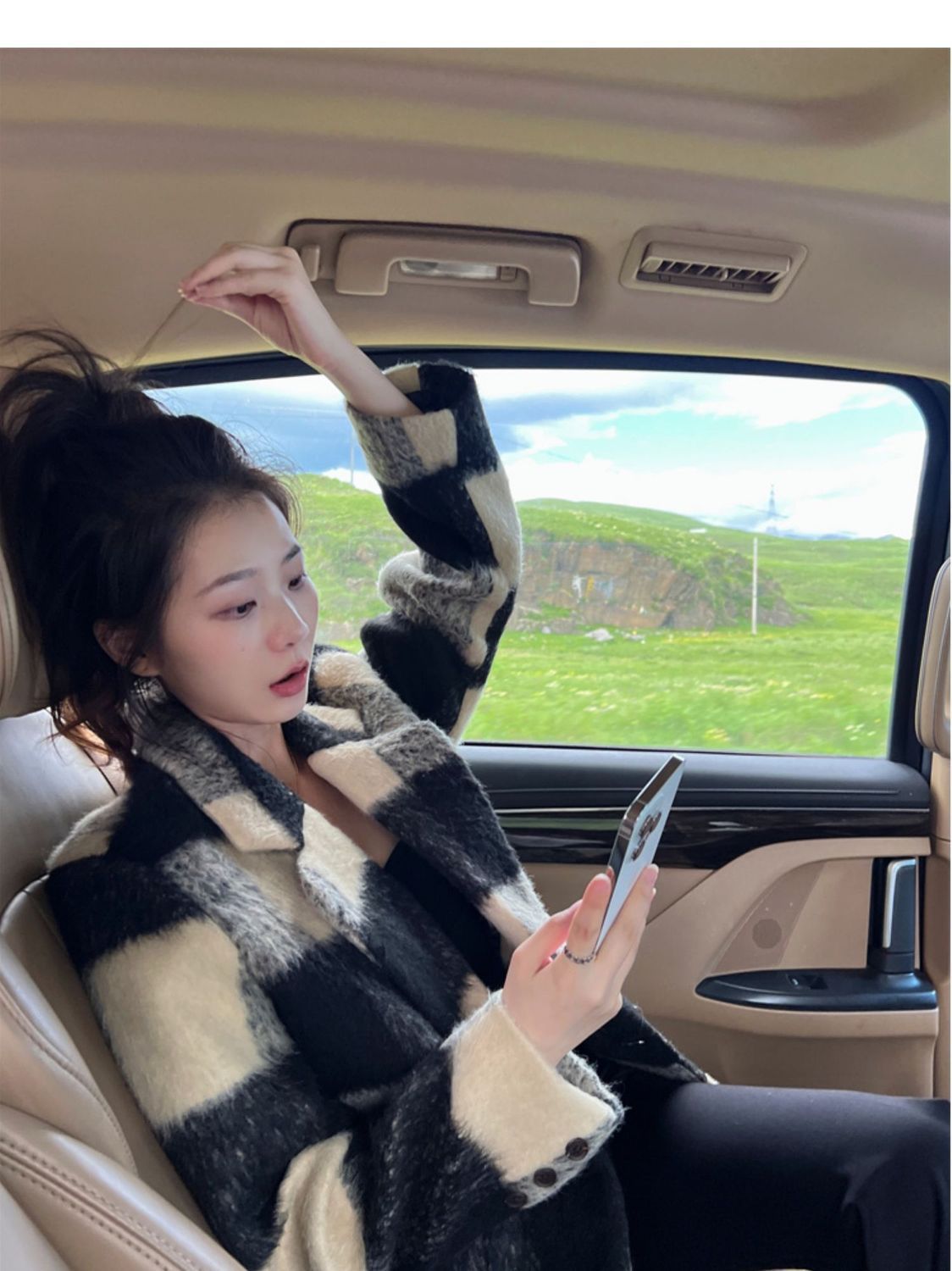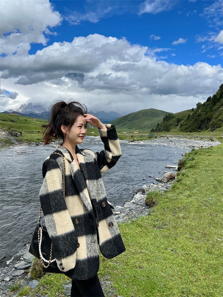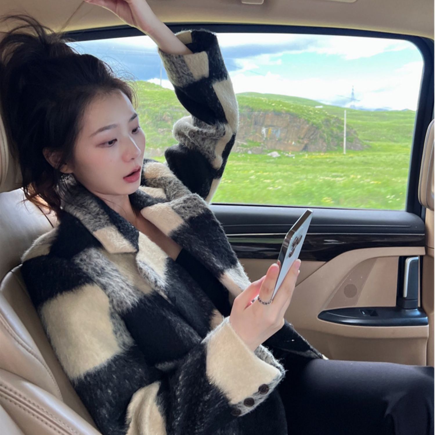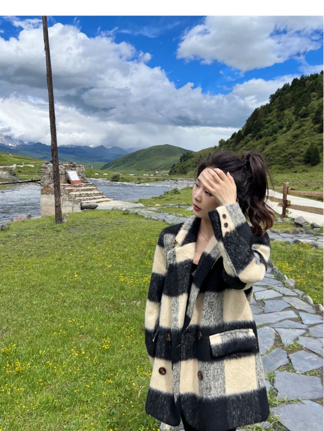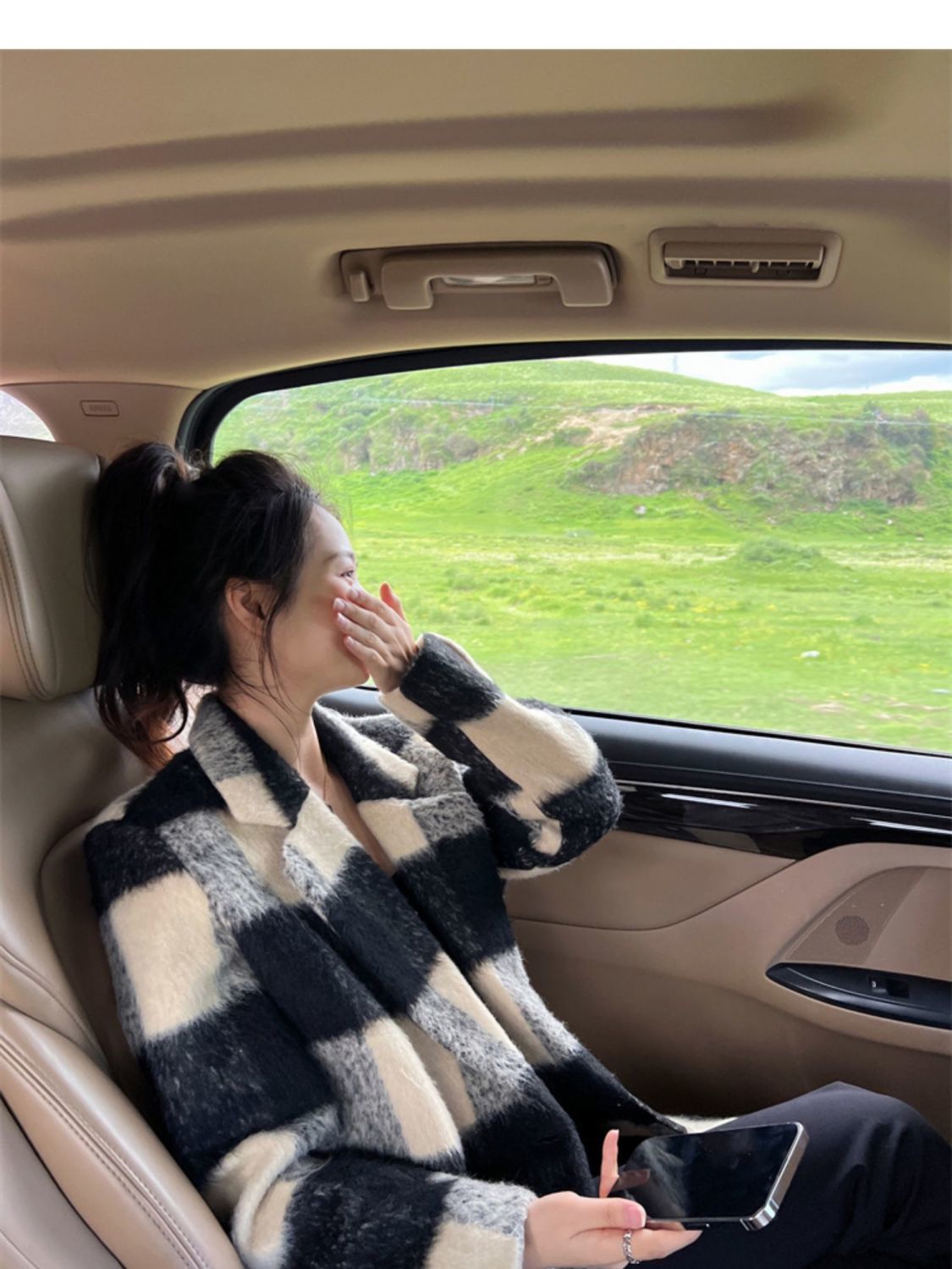 Новый короткий клетчатый 2024 шерстяной пиджак толстый осенью и зимой маленький человек ретро шерстяное пальто