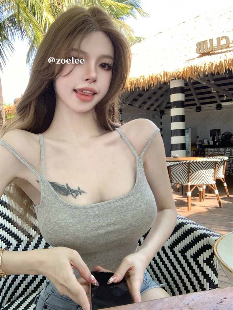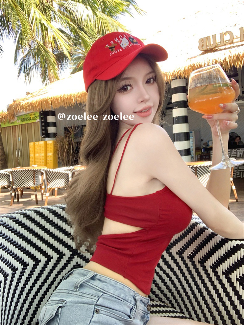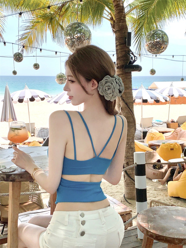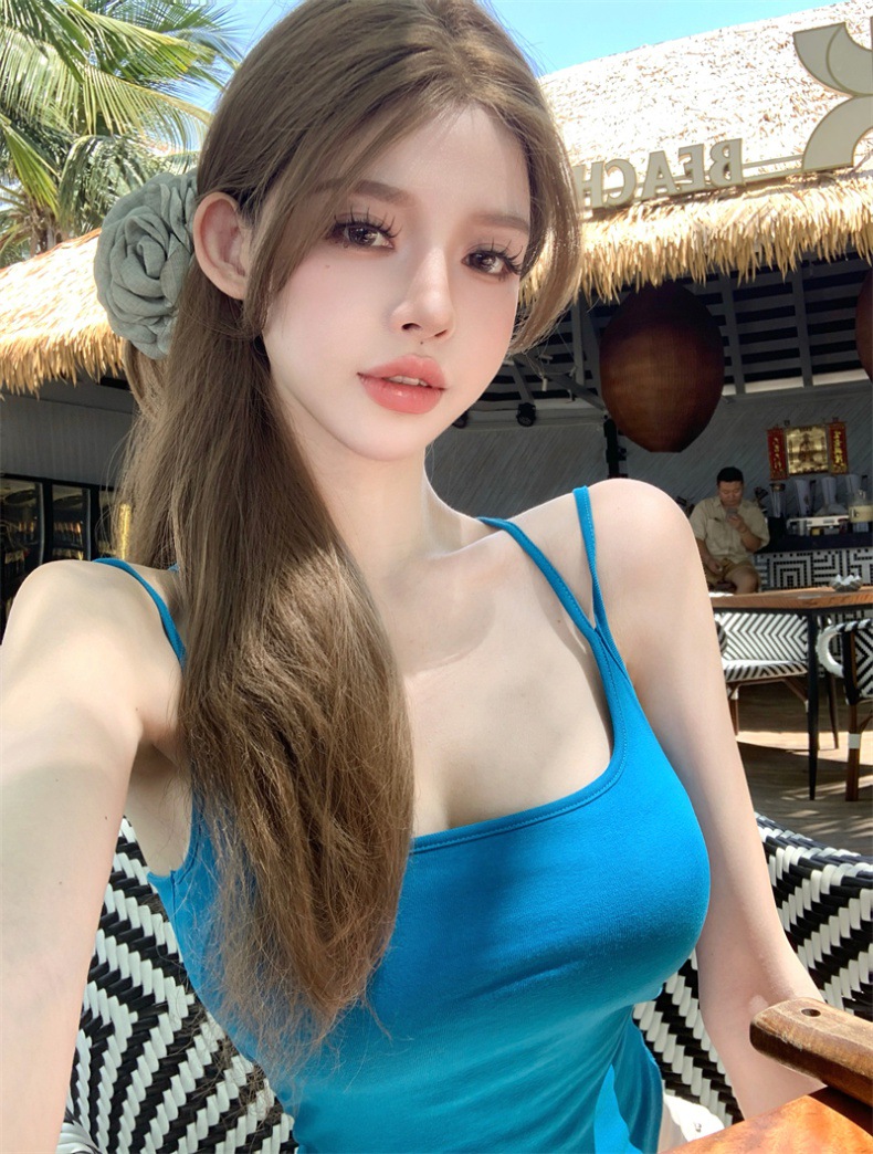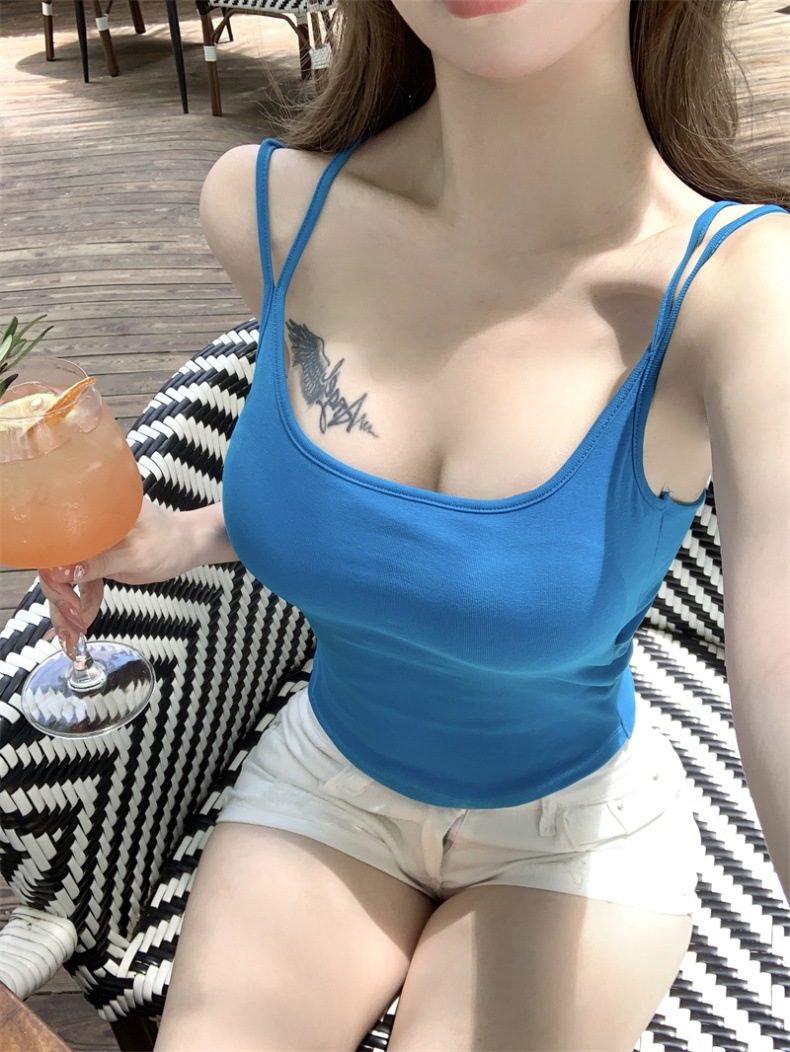 Горячая девушка сексуальная синяя короткая камзол жилет женская летняя стройная без рукавов с нагрудным ковриком
