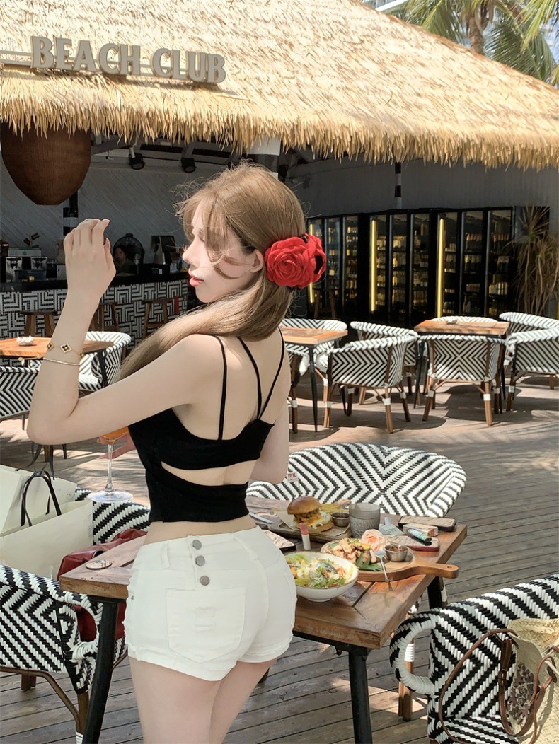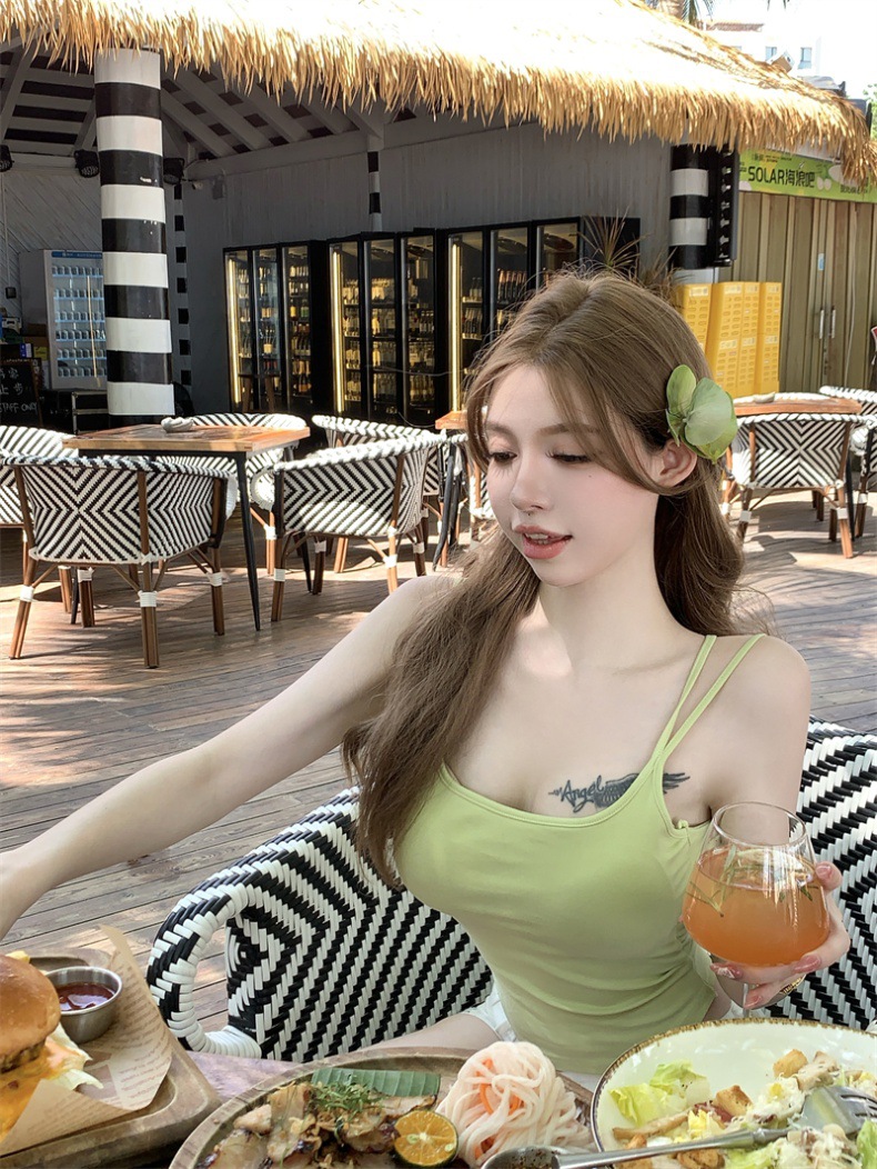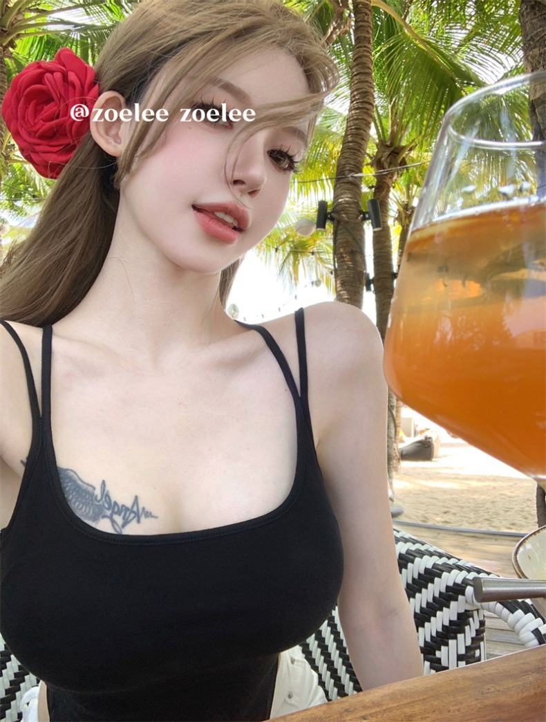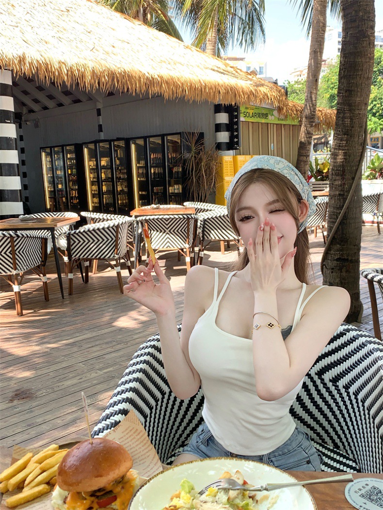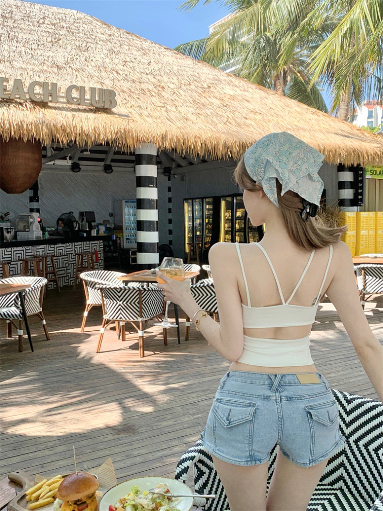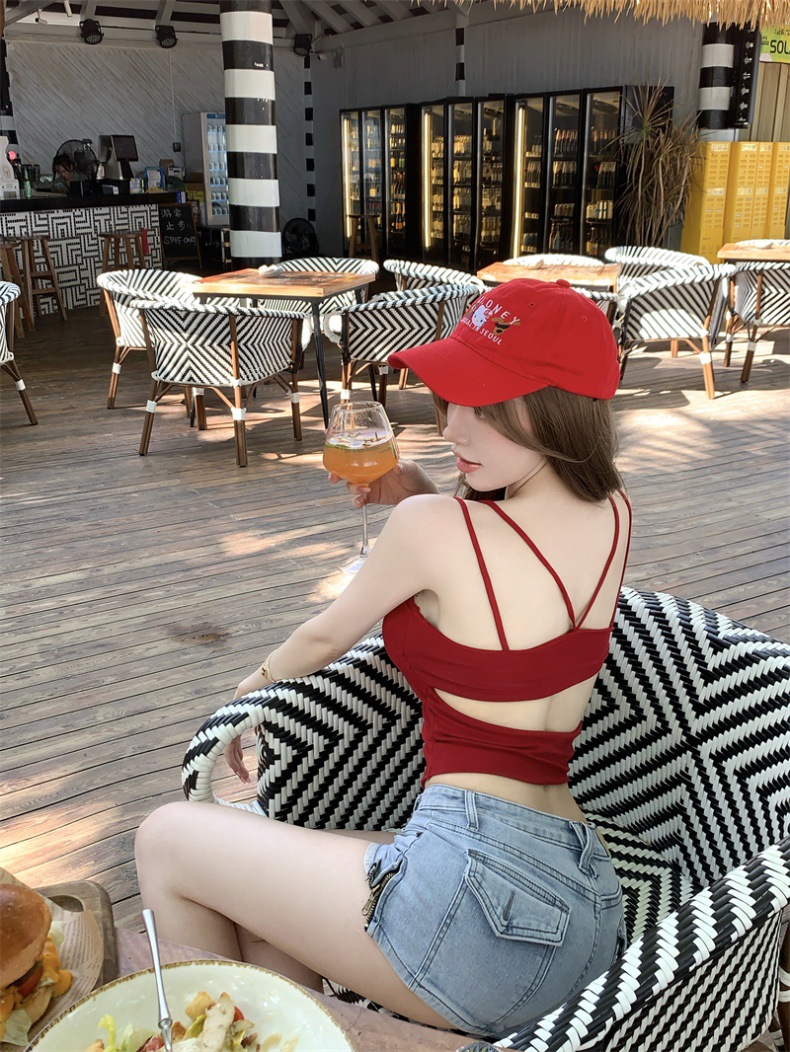 Горячая девушка сексуальная синяя короткая камзол жилет женская летняя стройная без рукавов с нагрудным ковриком