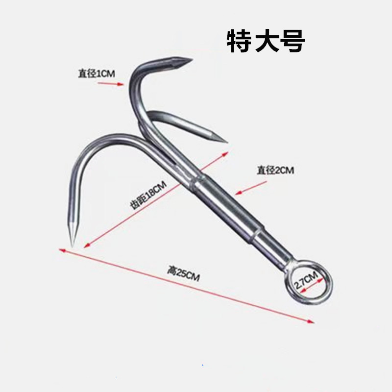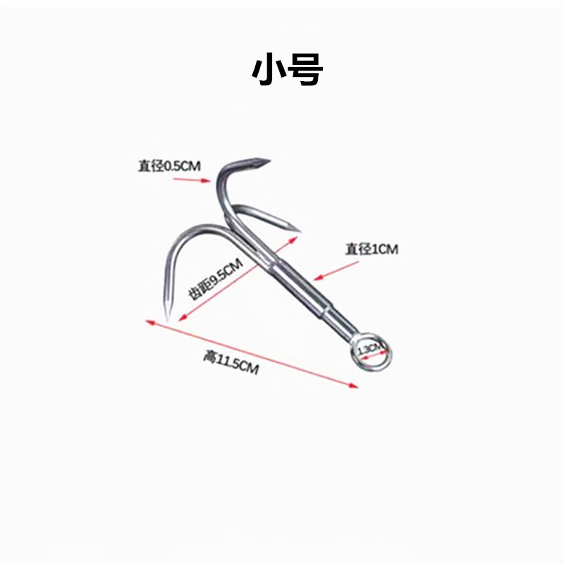 不锈钢飞虎爪锚钩三角勾实心打捞钩清理水草野钓鱼水草锚钩水草刀