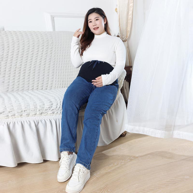 Джинсы для беременных плюс толстые шнурки большого размера осенние и зимние платья для беременных 300 кг пап брюки маленькие прямые толстые брюки