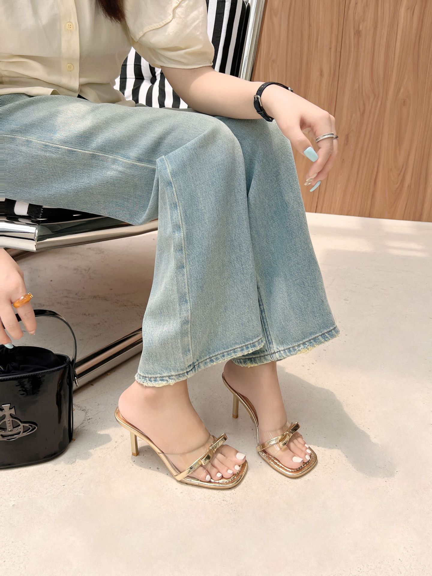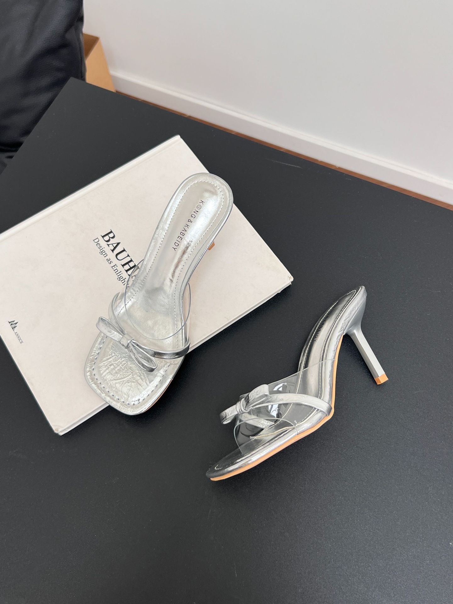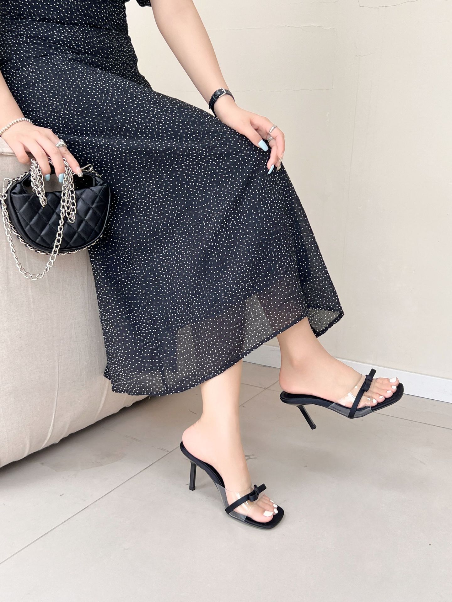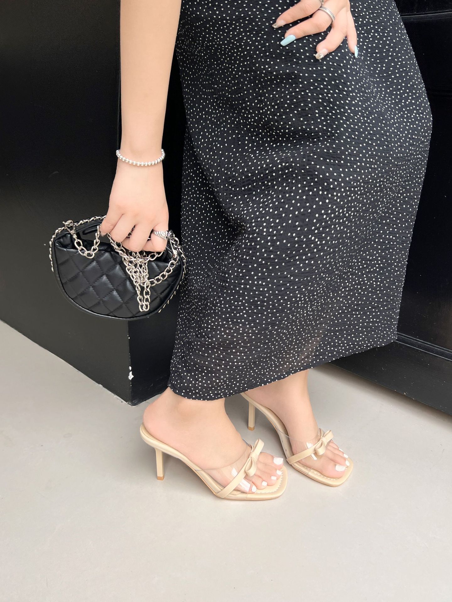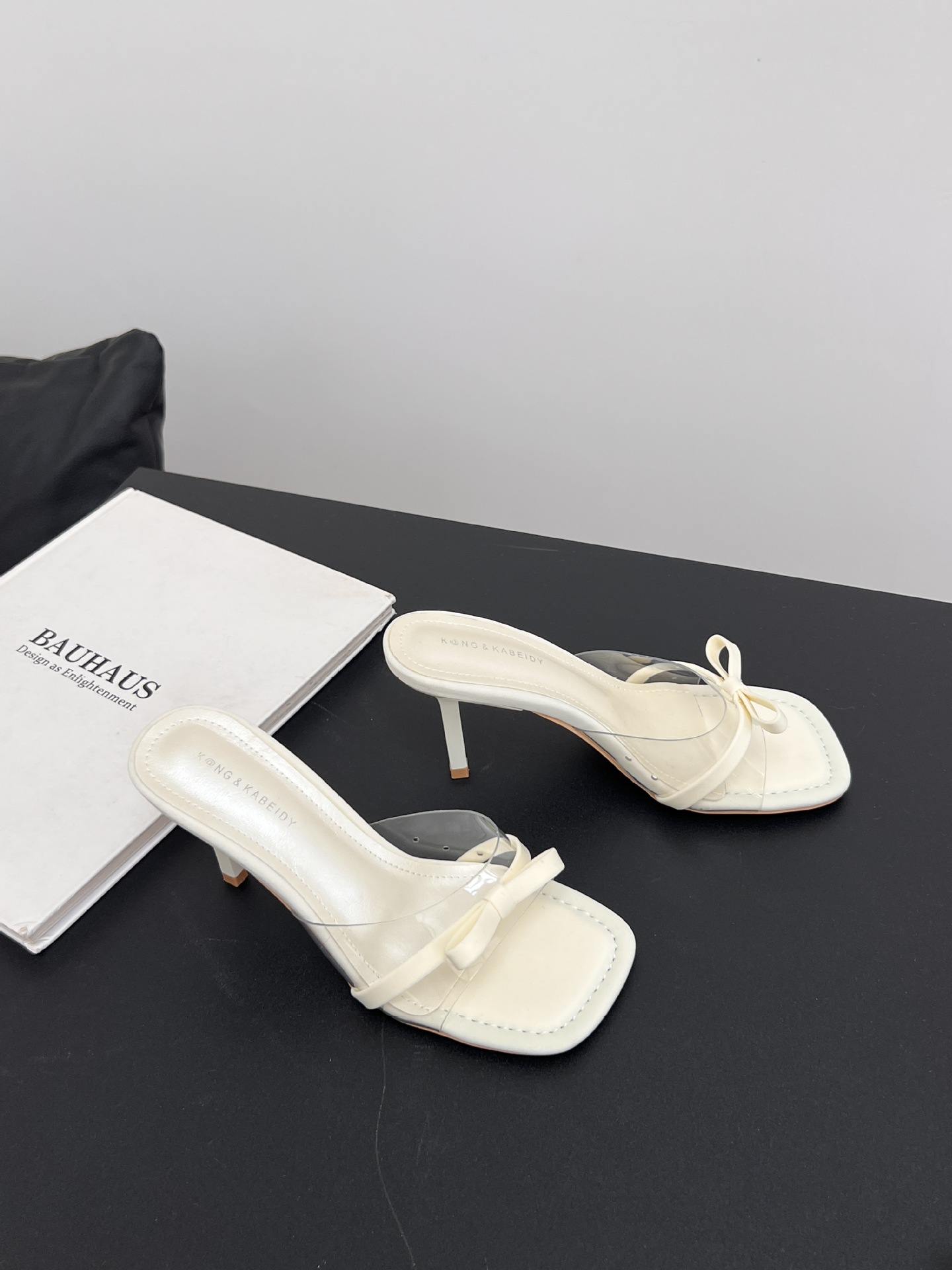 Новинка 2023 года, открытые сандалии и тапочки с прозрачным бантом и квадратным носком интернет-знаменитостей, самые последние модели подходят на очень высоком каблуке-шпильке