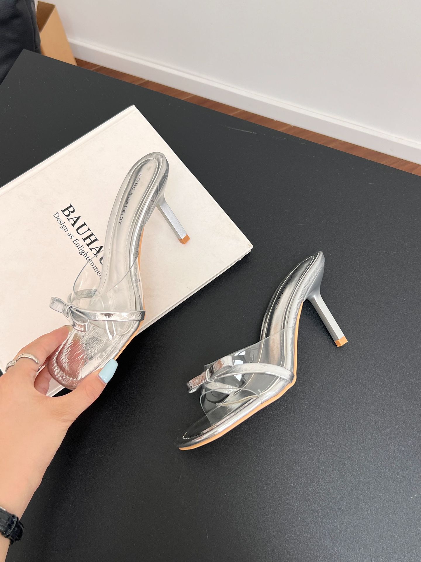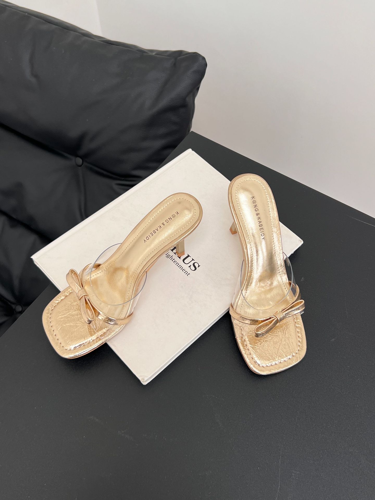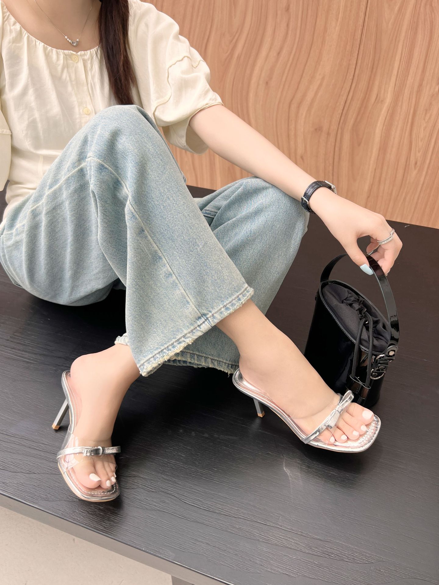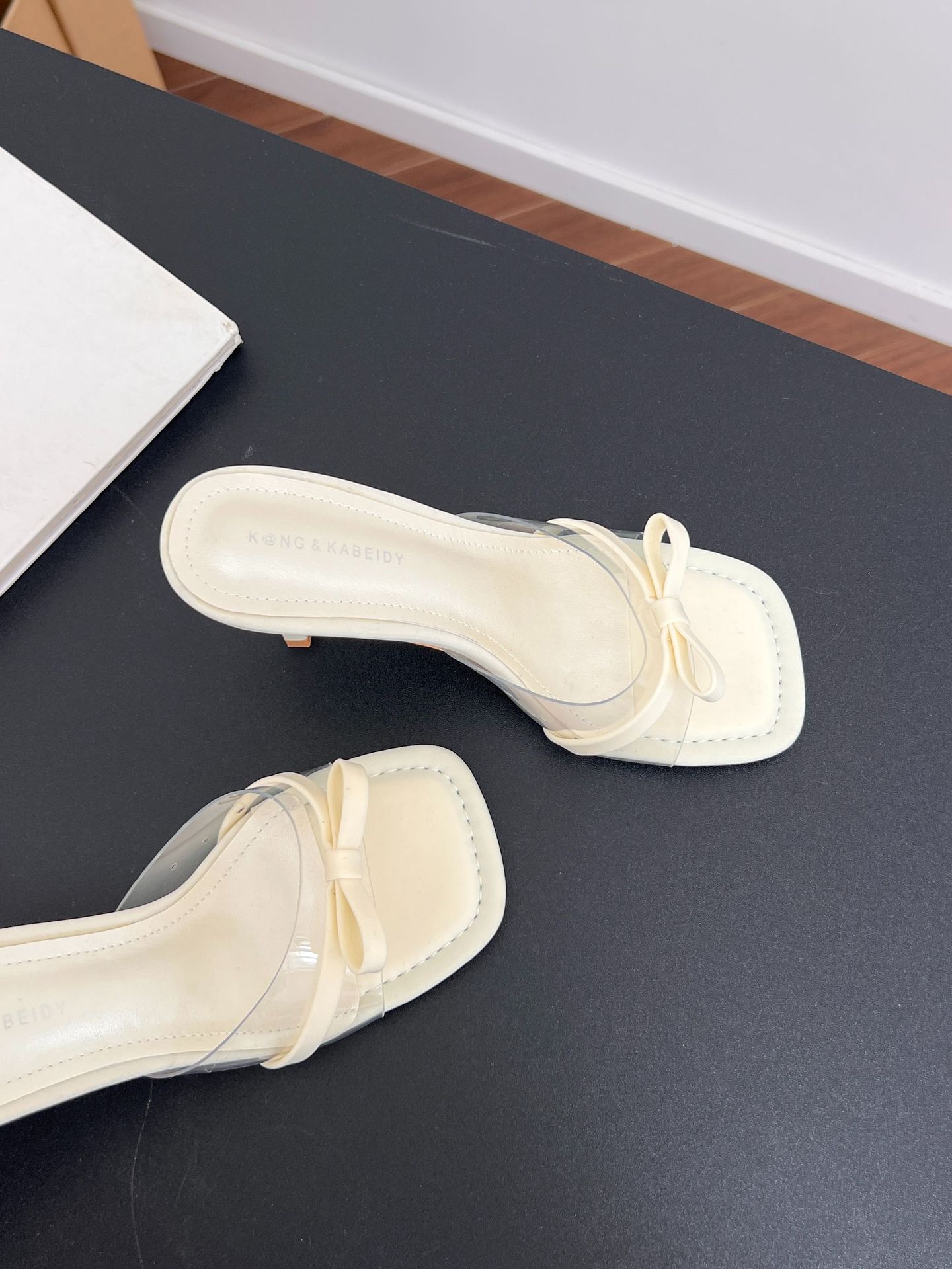 Новинка 2023 года, открытые сандалии и тапочки с прозрачным бантом и квадратным носком интернет-знаменитостей, самые последние модели подходят на очень высоком каблуке-шпильке