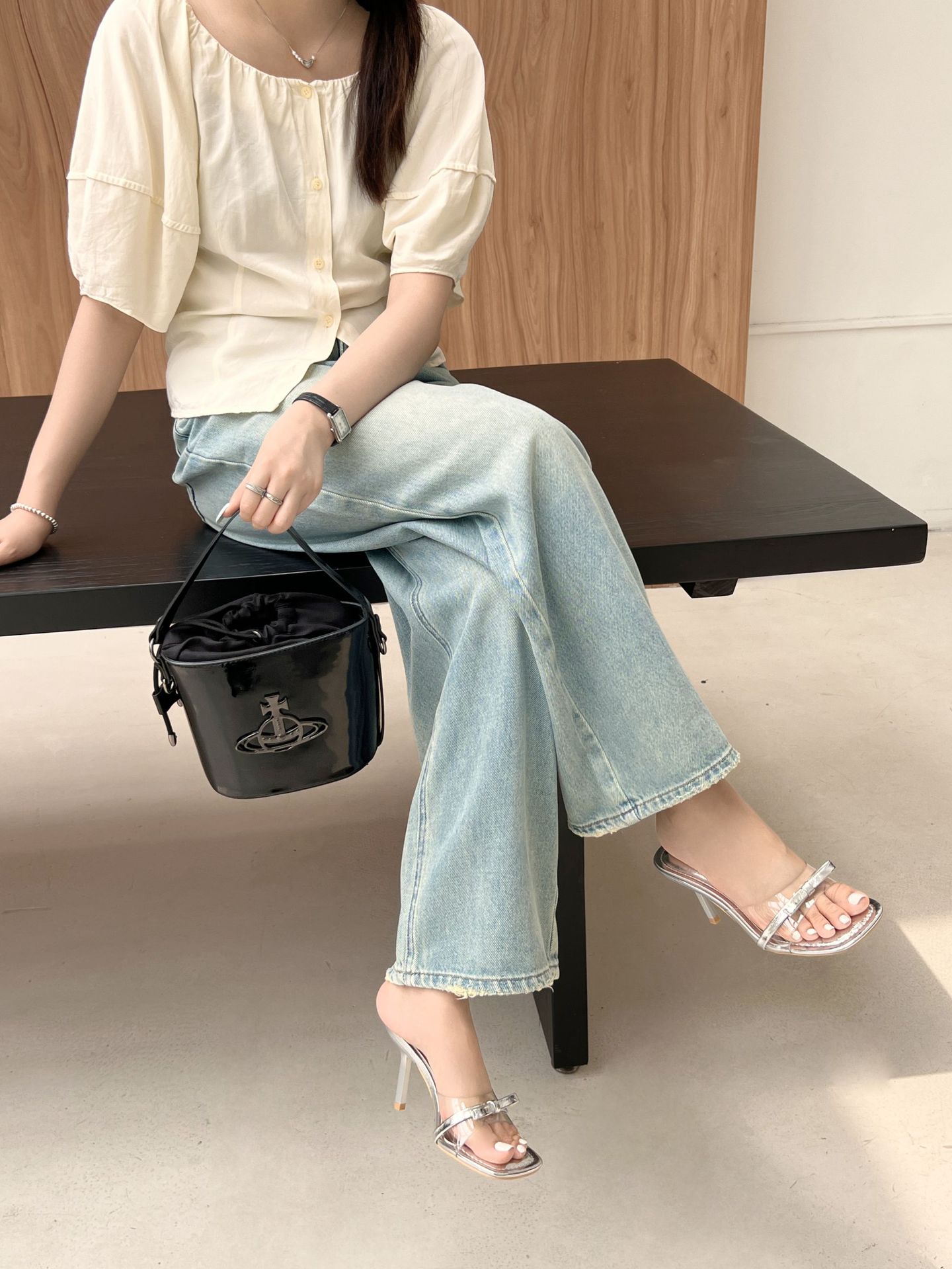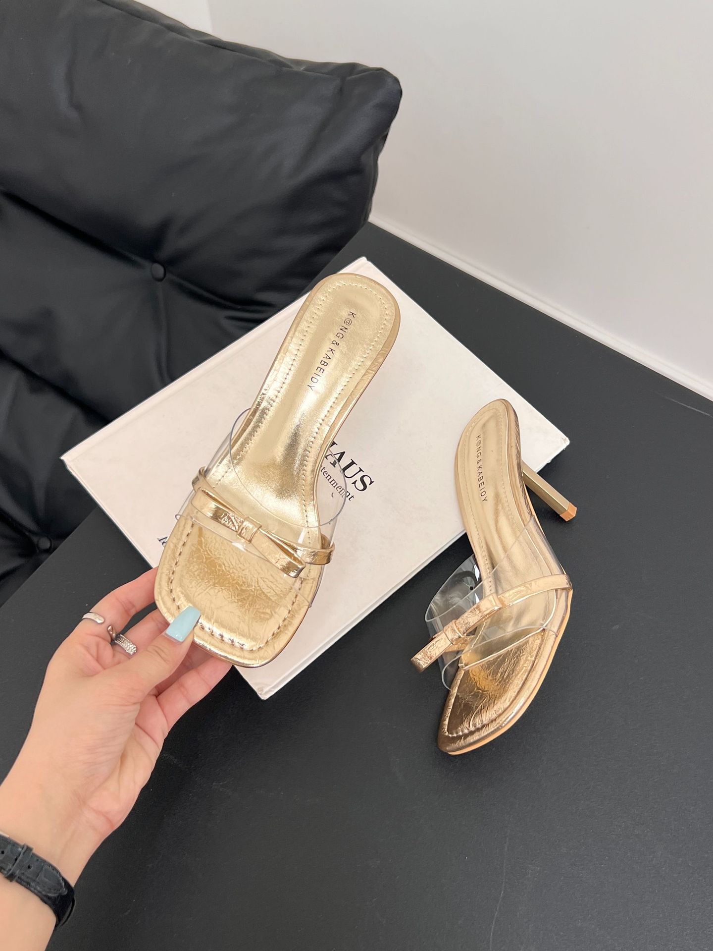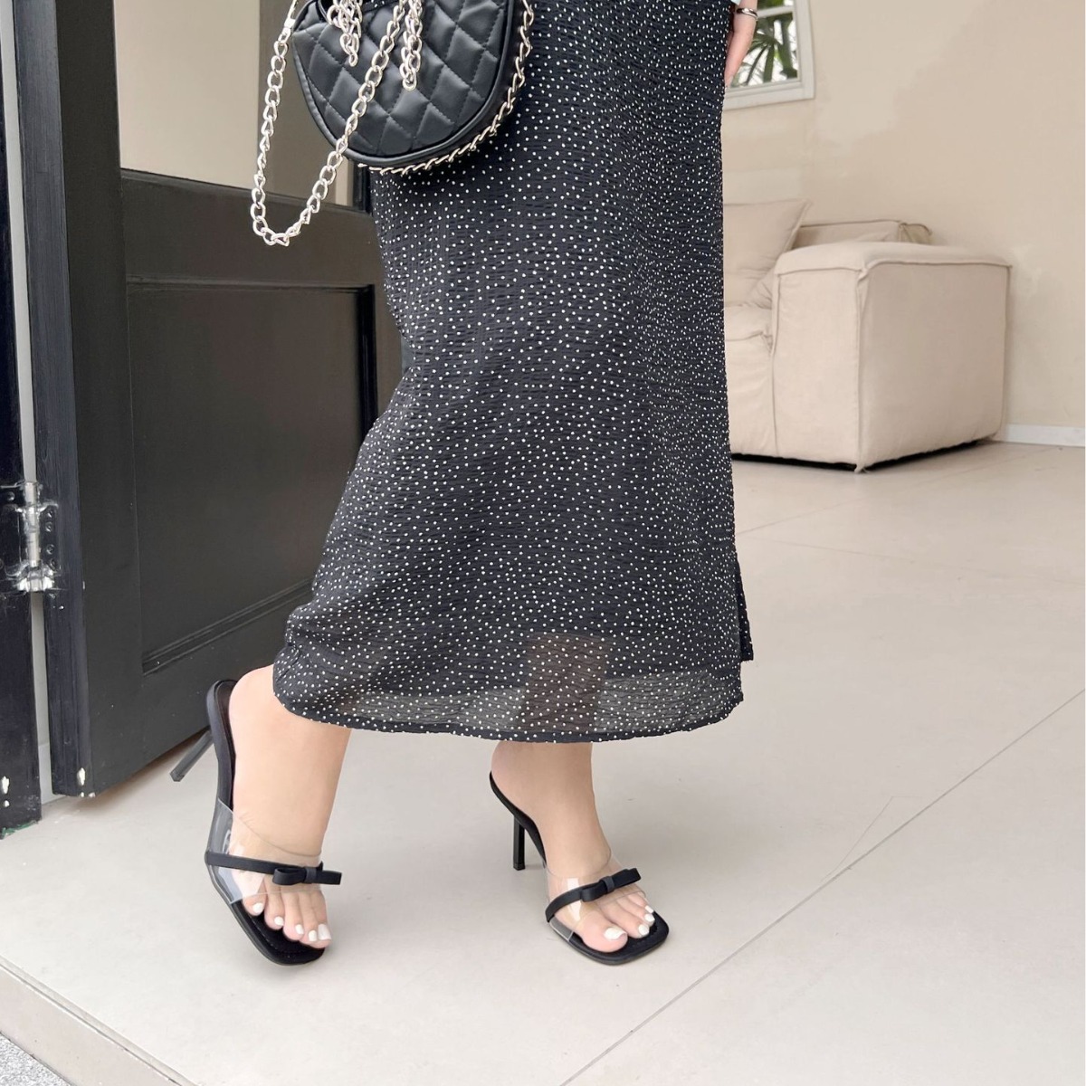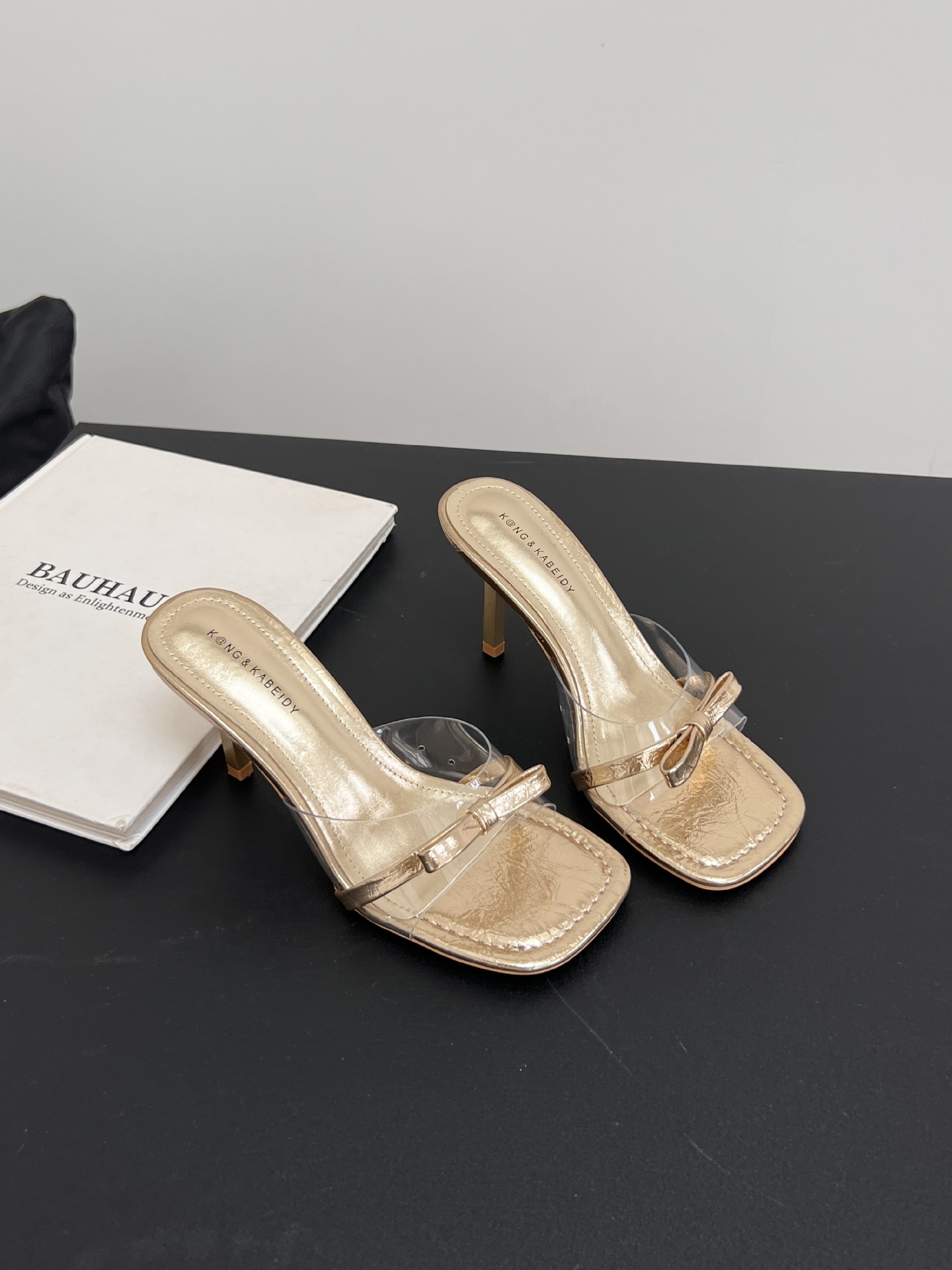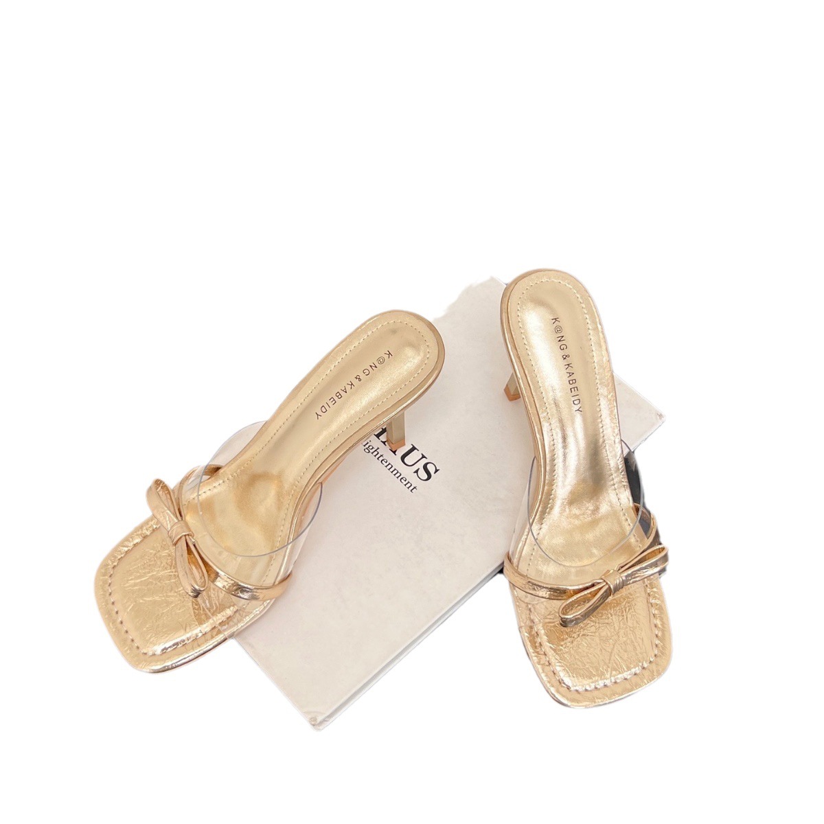 Новинка 2023 года, открытые сандалии и тапочки с прозрачным бантом и квадратным носком интернет-знаменитостей, самые последние модели подходят на очень высоком каблуке-шпильке