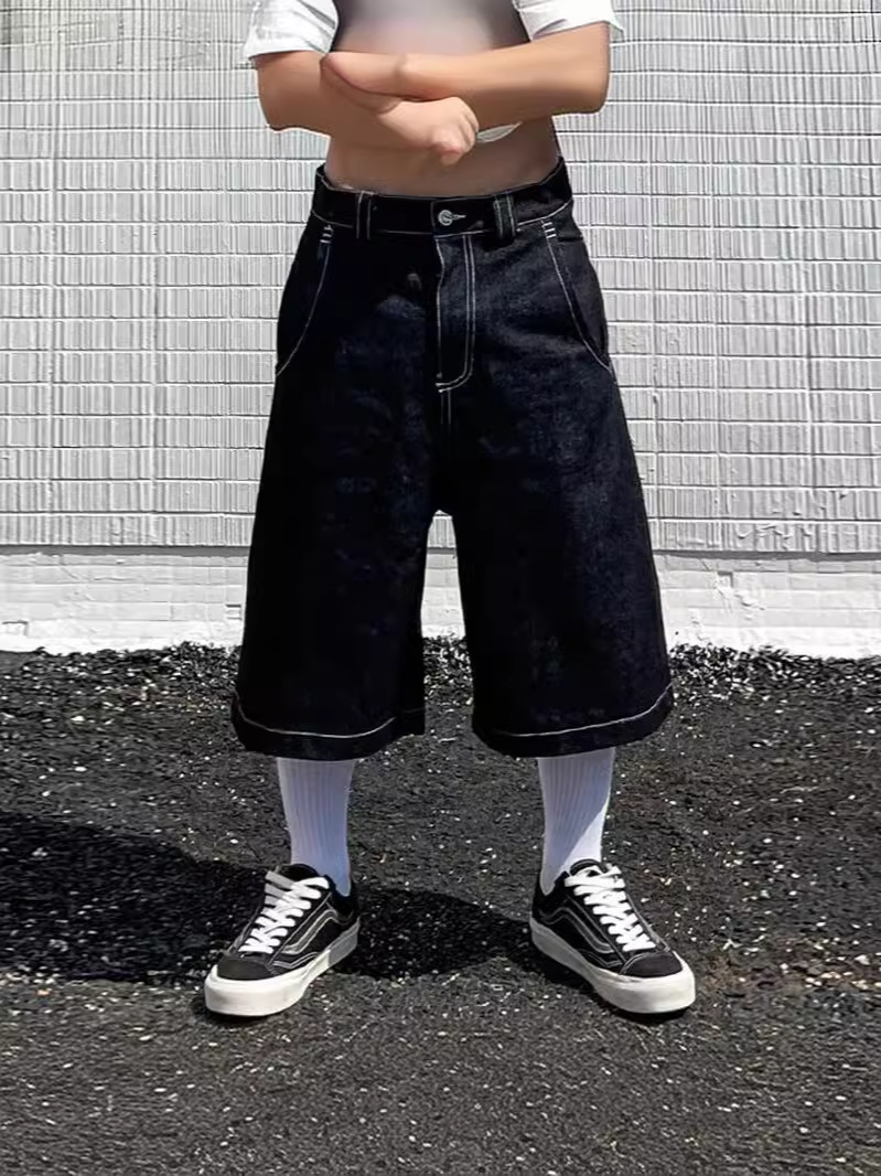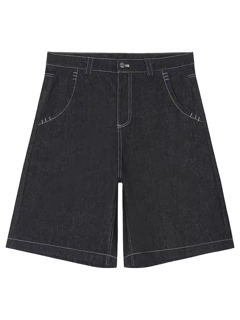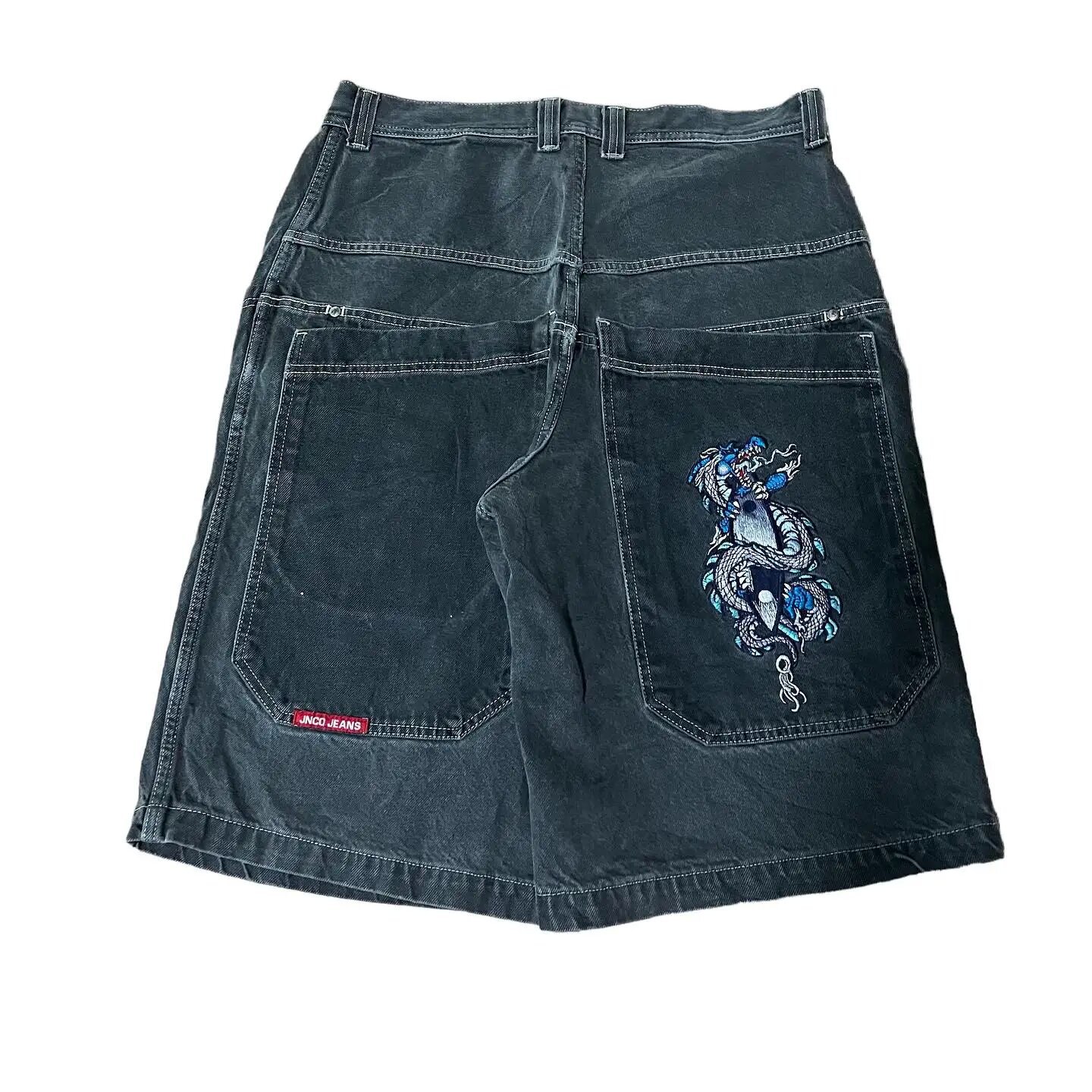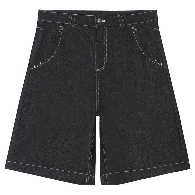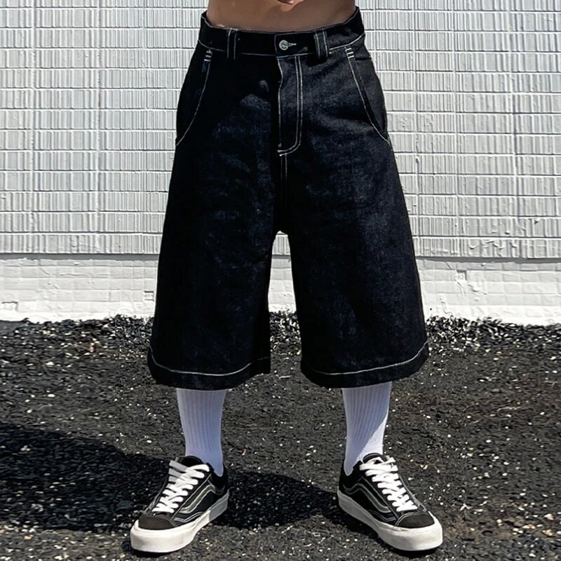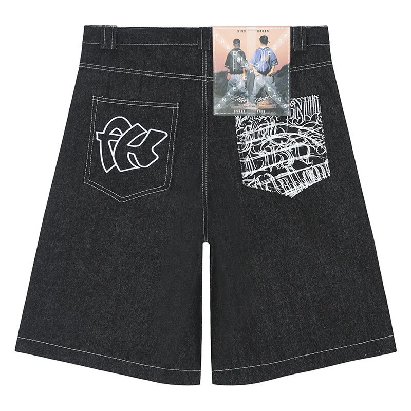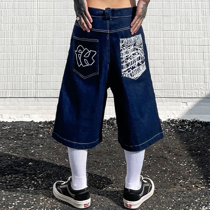 Хип-хоп карманные вышитые буквенные принты джинсы мужские шорты ретро лето негабаритные широкие джинсы колено брюки