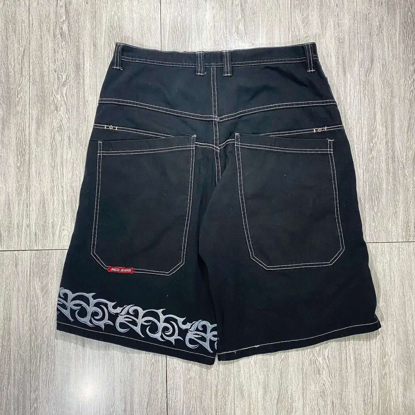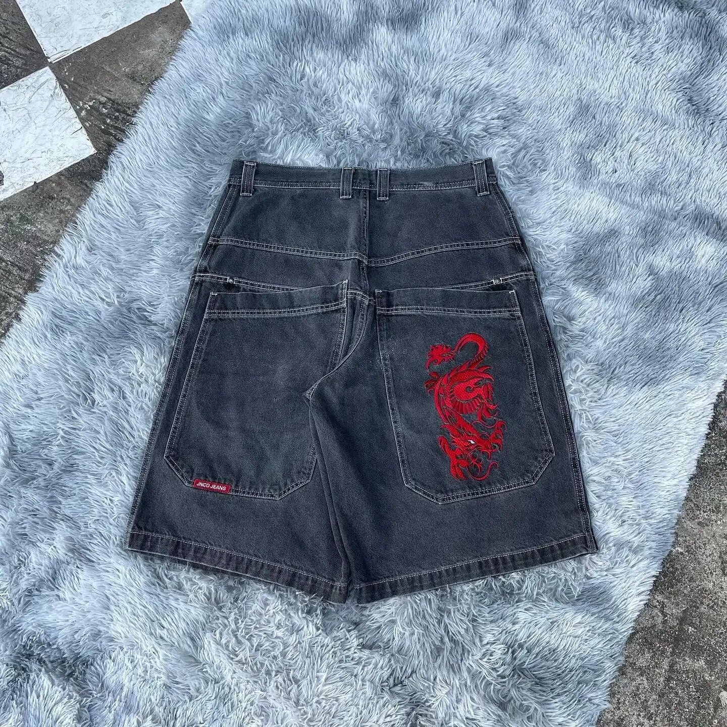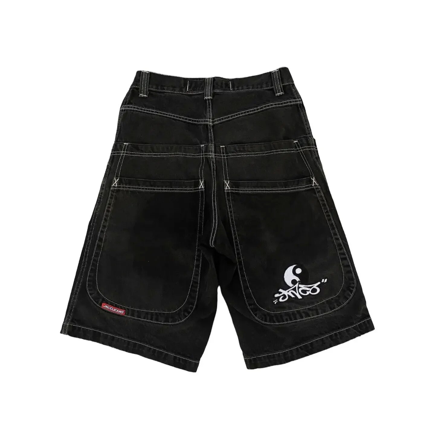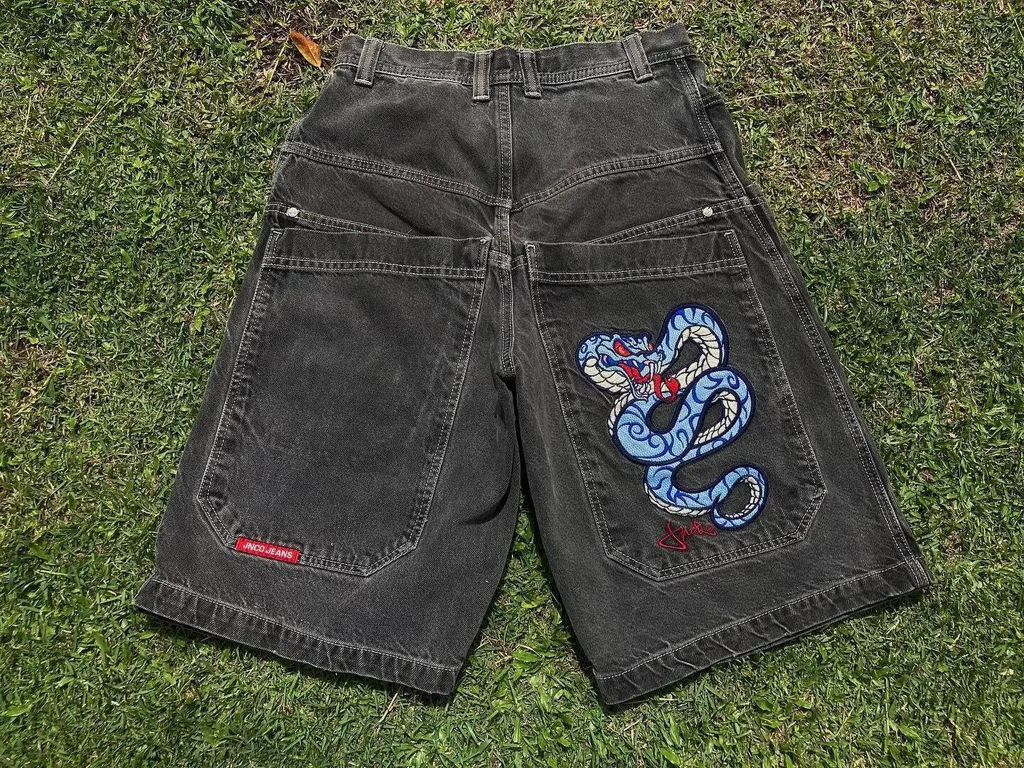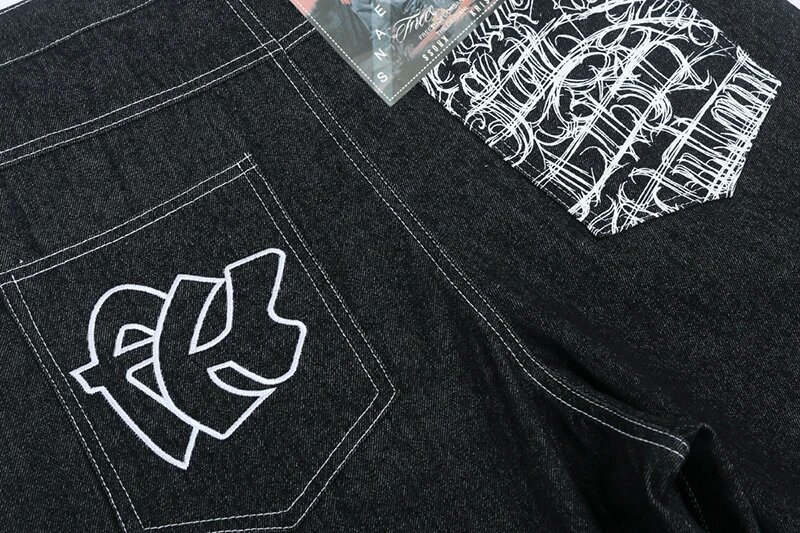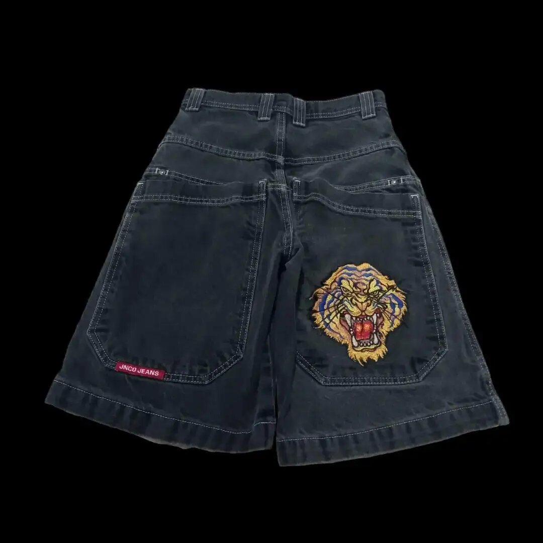 Хип-хоп карманные вышитые буквенные принты джинсы мужские шорты ретро лето негабаритные широкие джинсы колено брюки