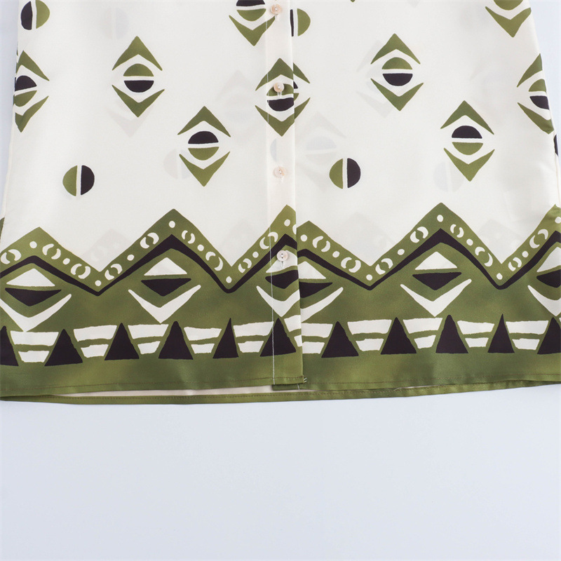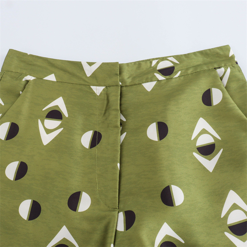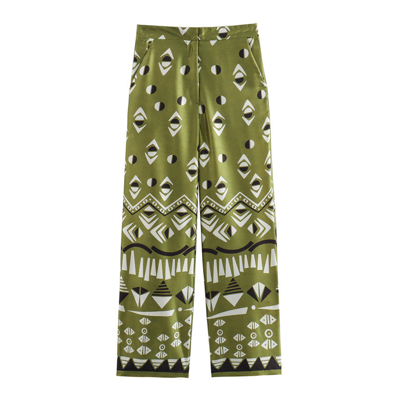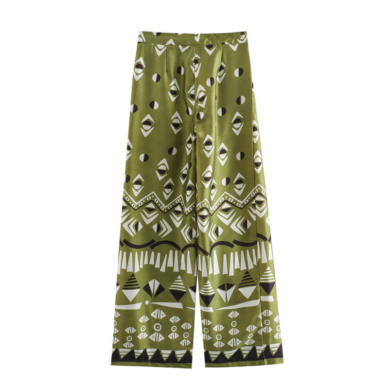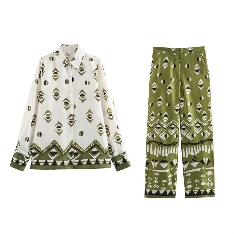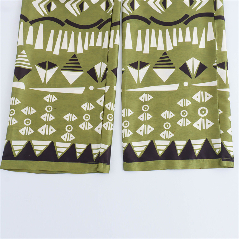 Трансграничная внешняя торговля 2024 летний новый европейский и американский стиль шелковый атлас текстура позиционирования рубашка с принтом брюки набор женский 335