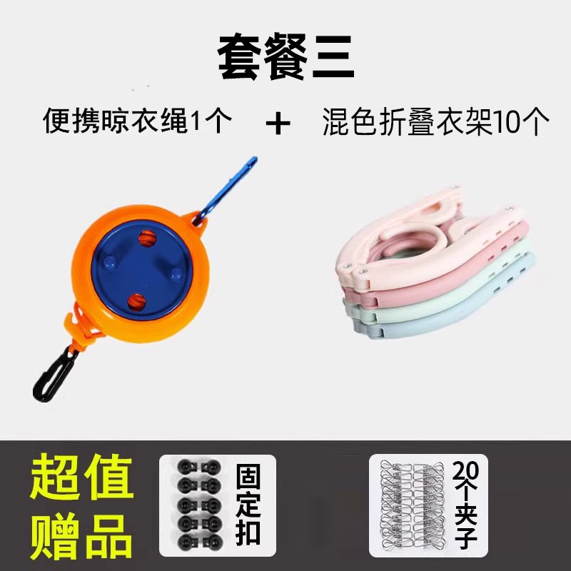 Пакет 1★Оранжевый (10m полиэфирная веревка, прочная, несущая нагрузку и ее нелегко сломать); Пакет 2 ★ Веревка для белья + 20 ветрозащитных зажимов + 10 фиксированных пряжек.; [Поездка на короткие расстояния] Пакет три★Веревка для белья + 20 ветрозащитных зажимов + 10 фиксированных пряжек + 5; [7 дней путешествия] Пакет три★Веревка для белья + 20 ветрозащитных зажимов + 10 фиксированных пряжек + 10; Комплект складных вешалок для одежды из 5 штук (случайные цвета)