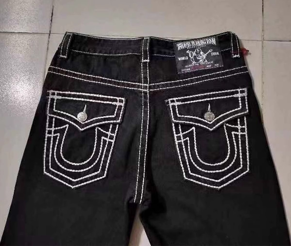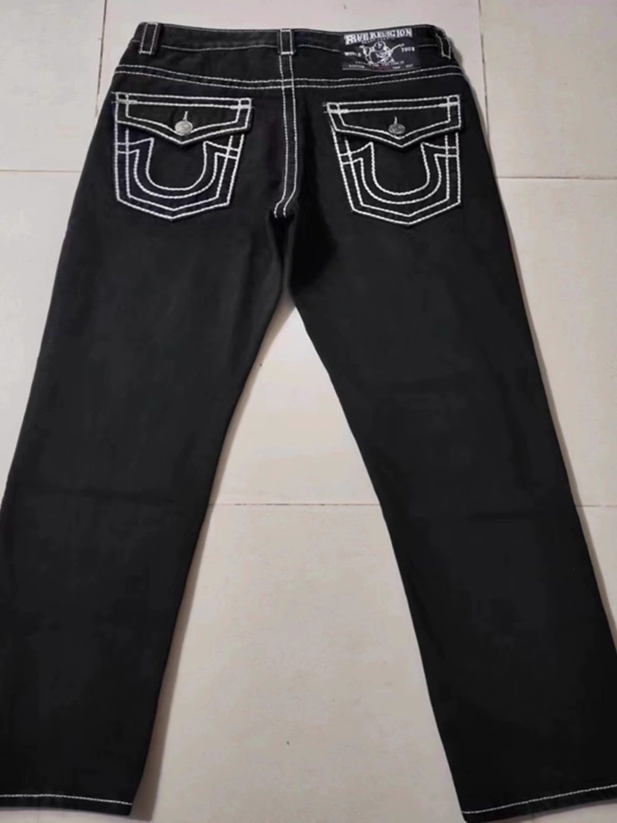 Трансграничная электрическая коммерция, американская улица, высокая улица, джинсы, белые толстые линии, большие Будда, прямые брюки Religion