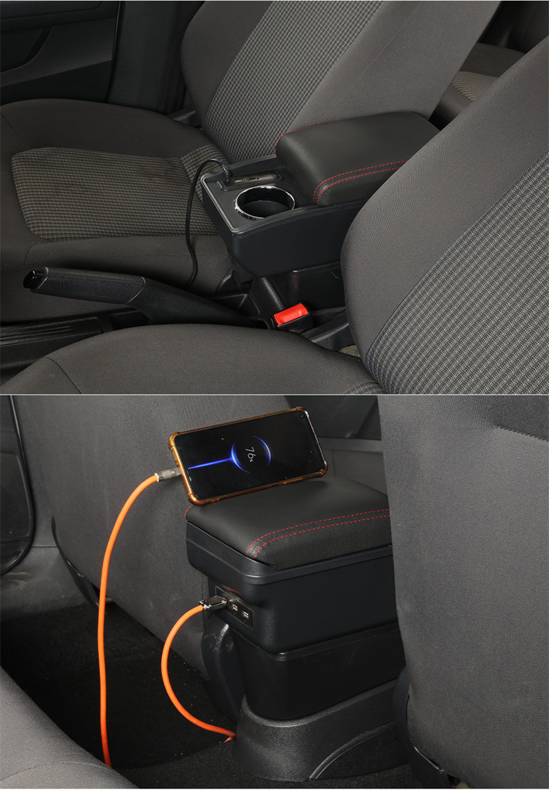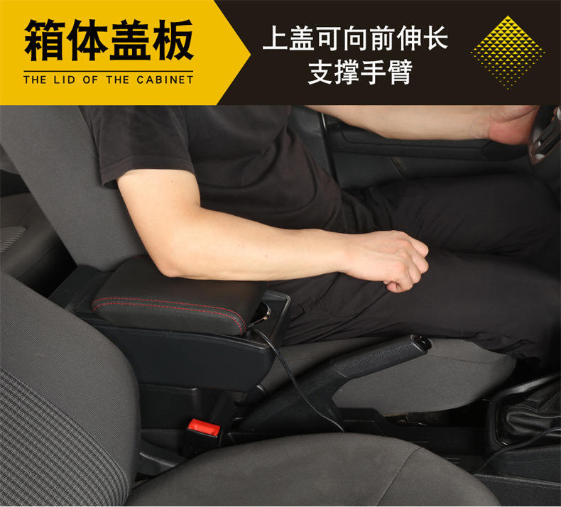 【产品特点】:本产品简约创意、设计独特、大容量收纳空间,适用于各类汽车原车没有中控扶手箱安装使用。主要功能为缓解胳膊疲劳,杂物收纳,保持车内整洁有序,增强坐车时的舒适体感,兼具USB供电和水杯架等功能。