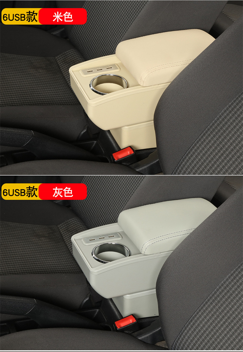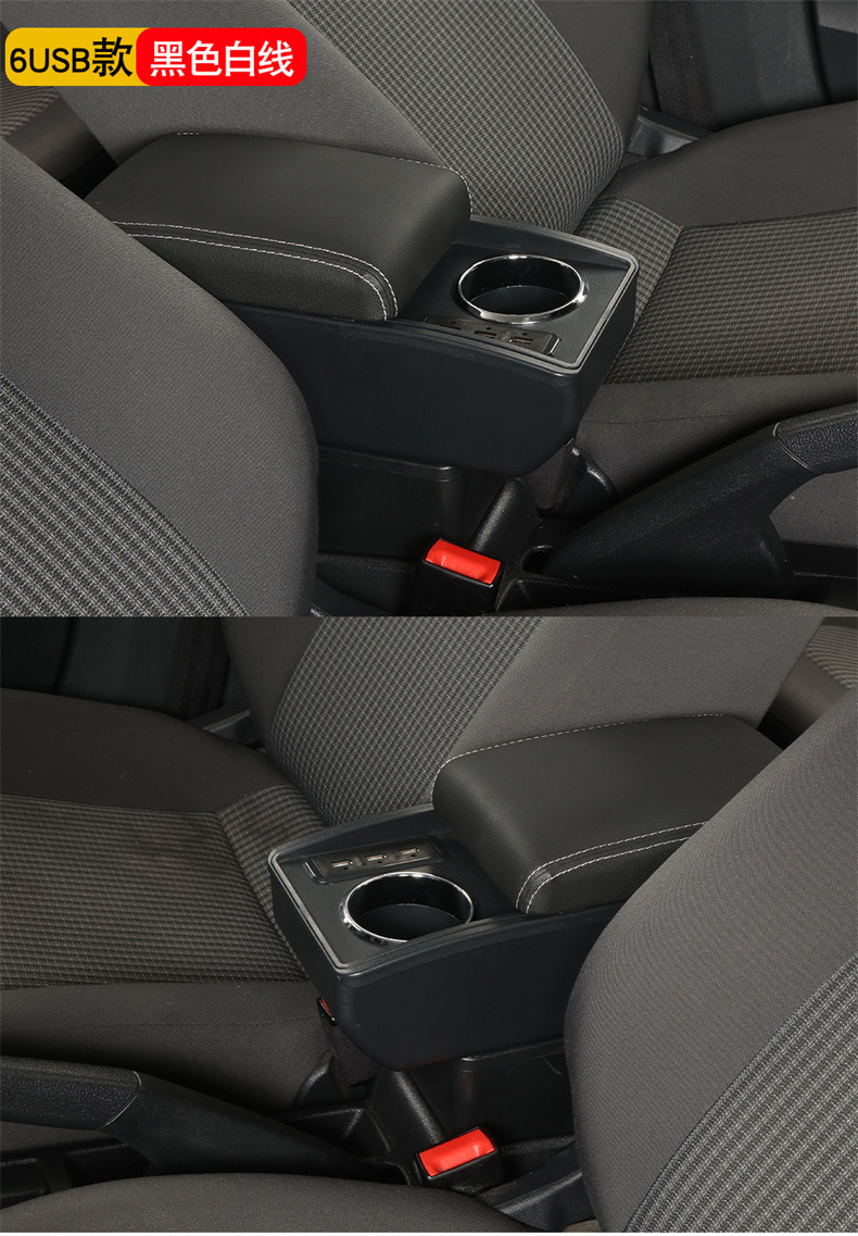 【产品特点】:本产品简约创意、设计独特、大容量收纳空间,适用于各类汽车原车没有中控扶手箱安装使用。主要功能为缓解胳膊疲劳,杂物收纳,保持车内整洁有序,增强坐车时的舒适体感,兼具USB供电和水杯架等功能。