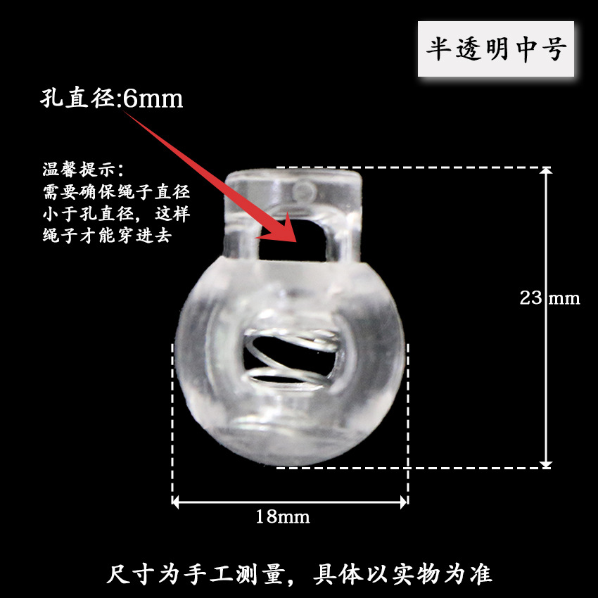 Модная пластиковая пружинная пряжка сферическая пружинная пряжка с круглым шариком с одним отверстием пряжка канатная пряжка черно-белая прозрачная пружинная пряжка