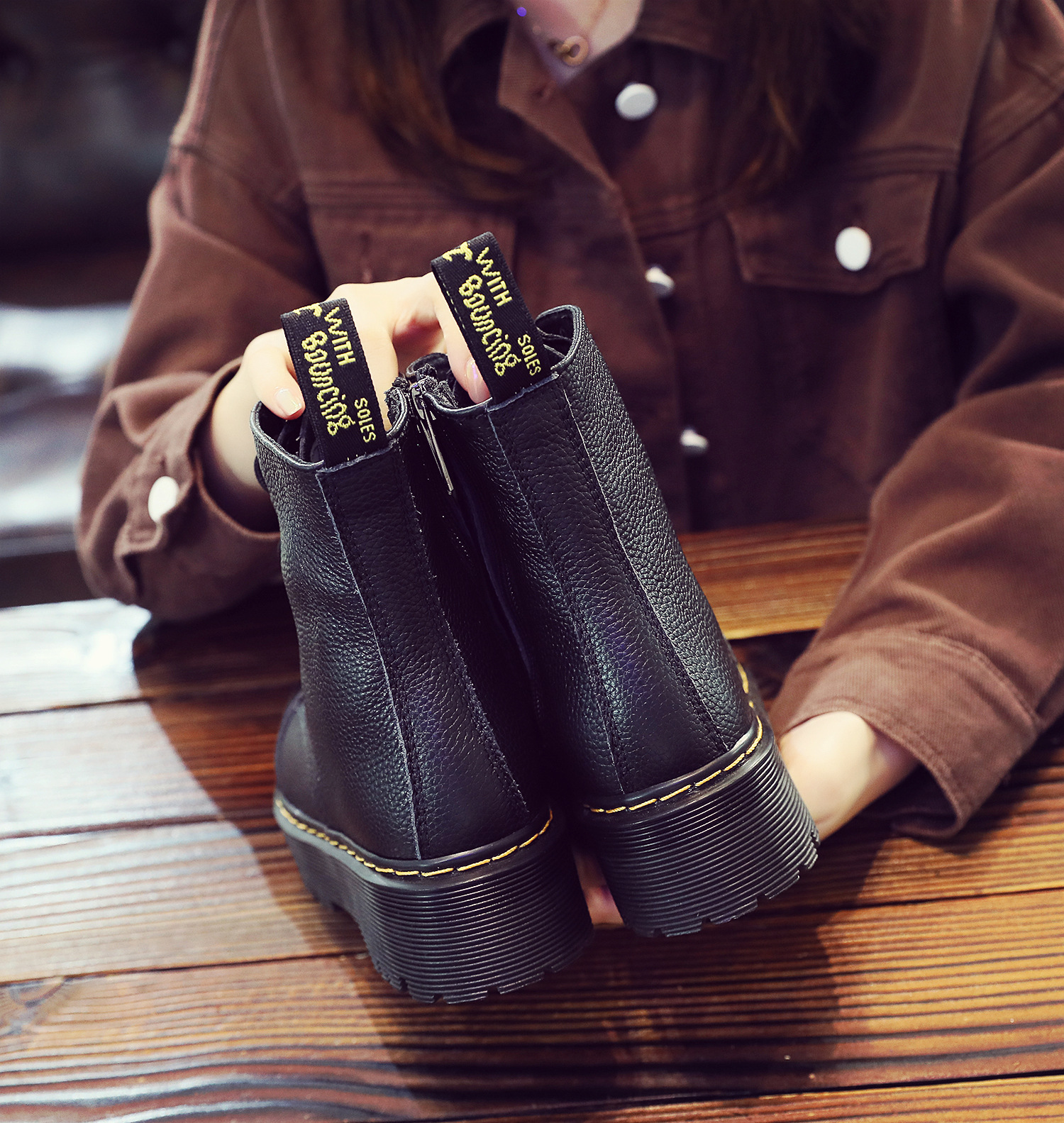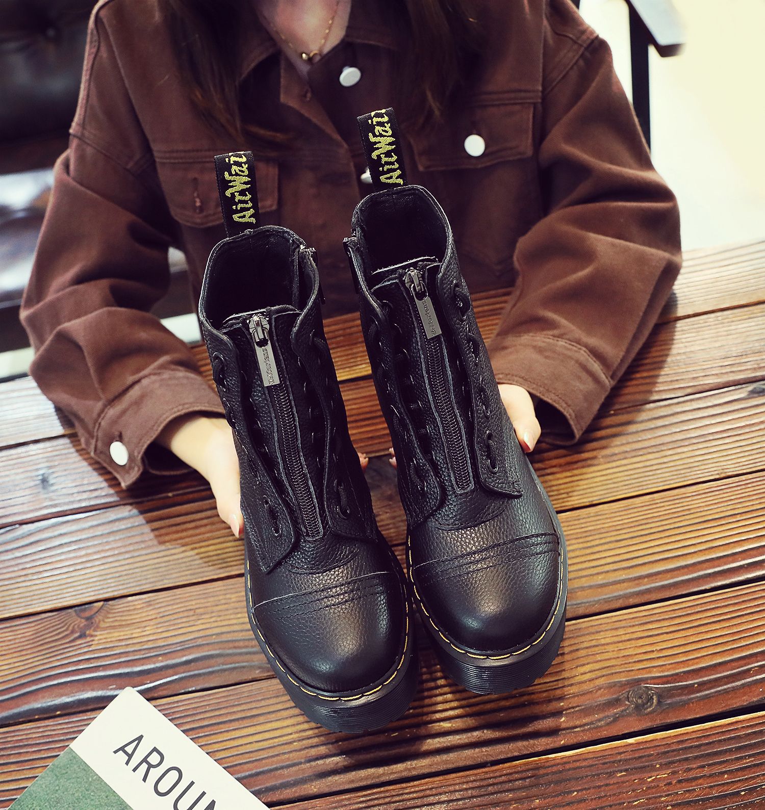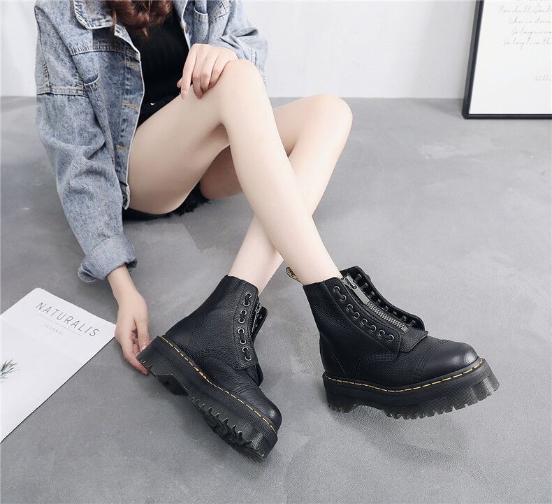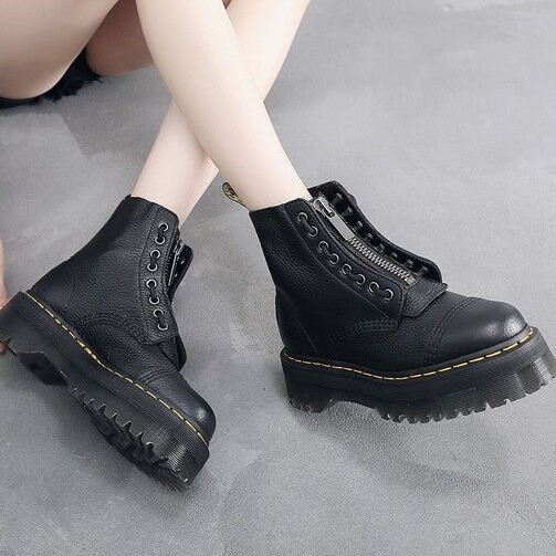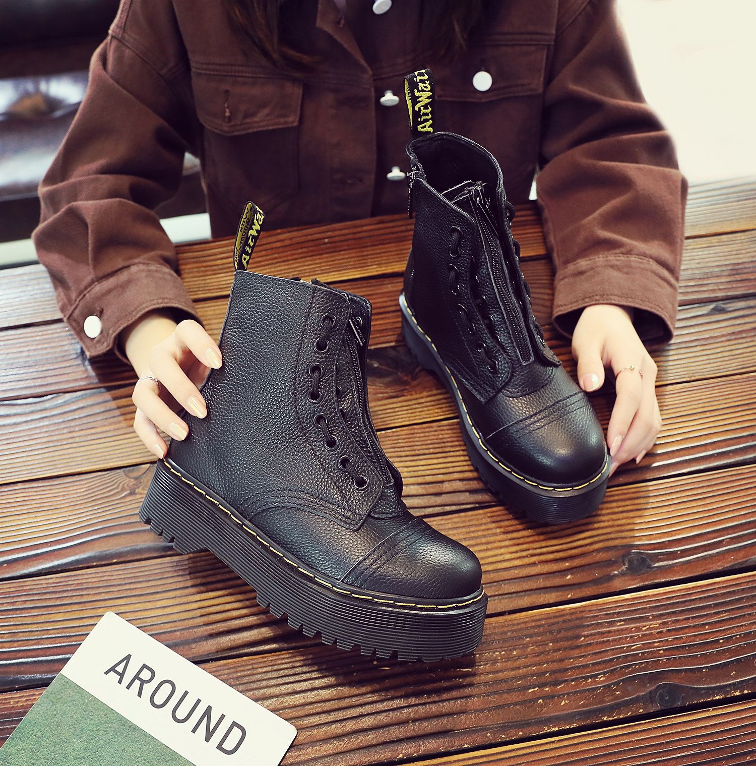 Sinclair передняя застежка-молния двойная надета для увеличения толстой подошвы ботинки Мартин женские ботинки из коровьей кожи шитые мужские и женские ботинки