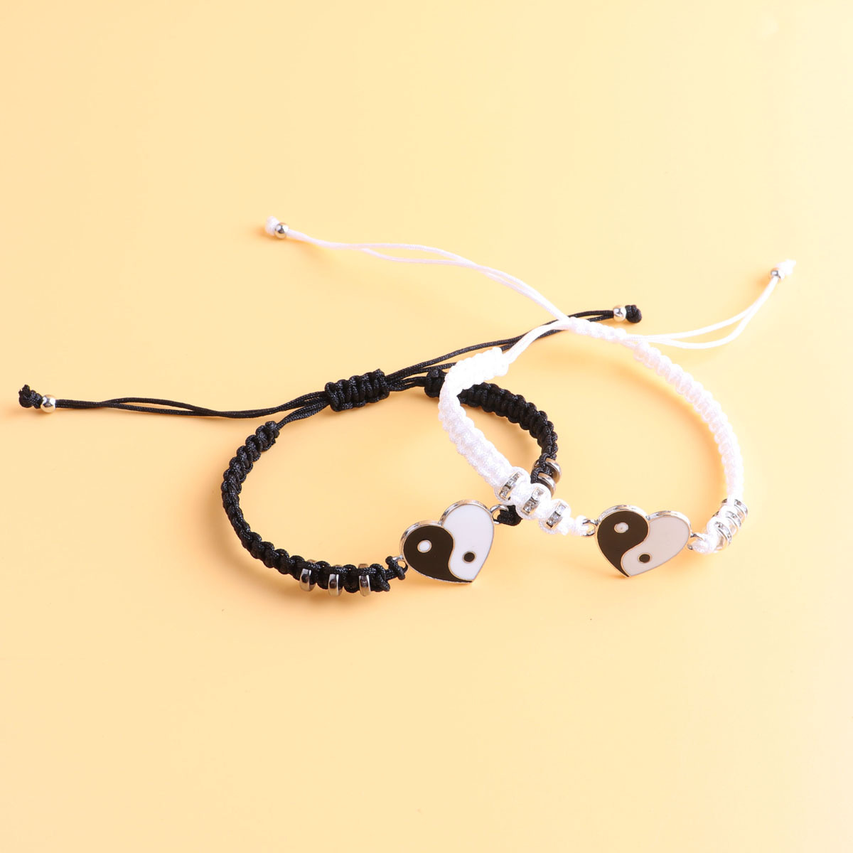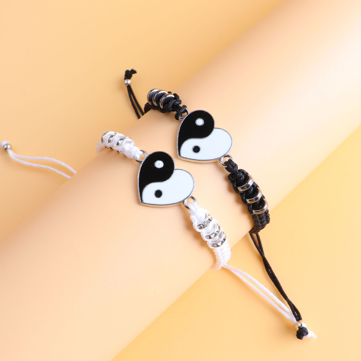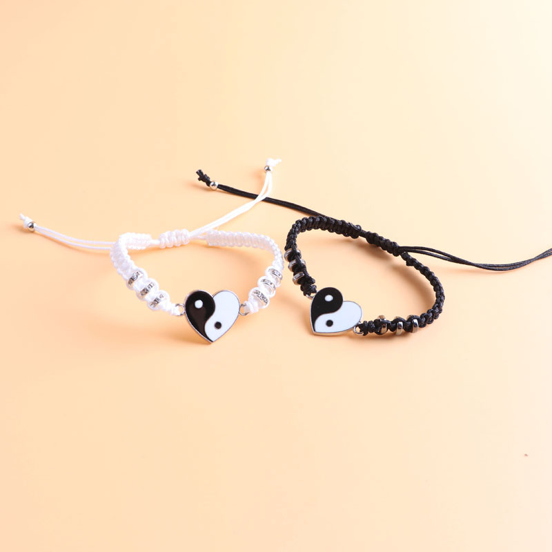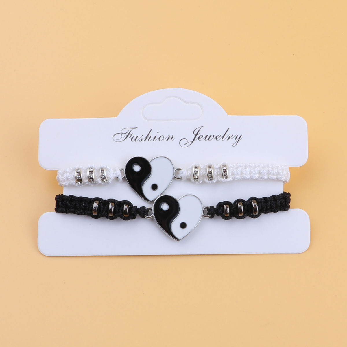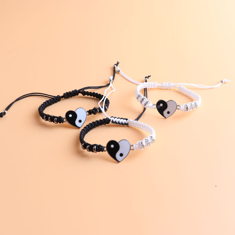 热卖跨境爱心黑白太极八卦手链情侣编织爱心黑白太极八卦手环链批发