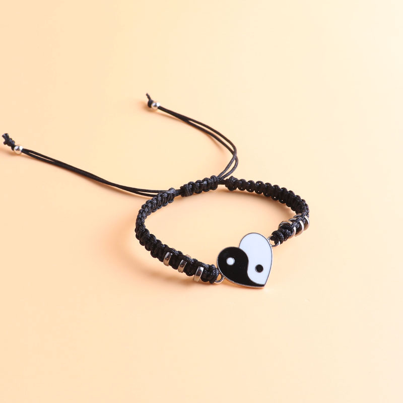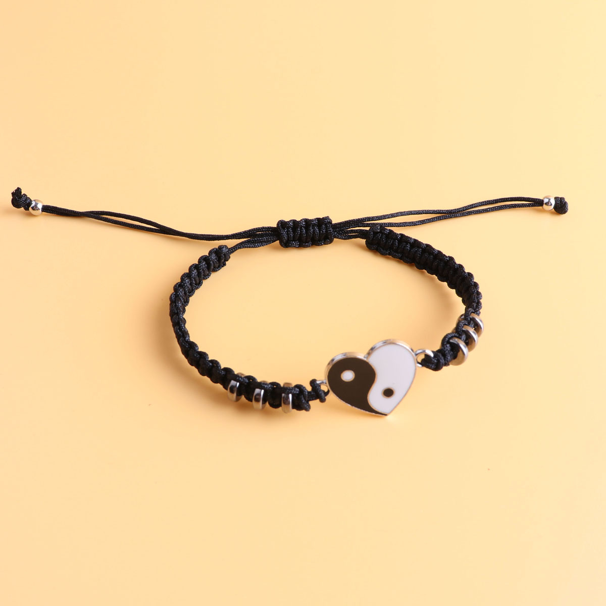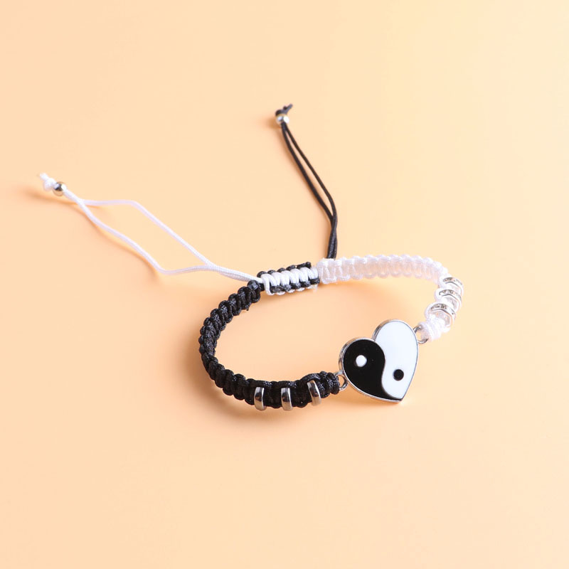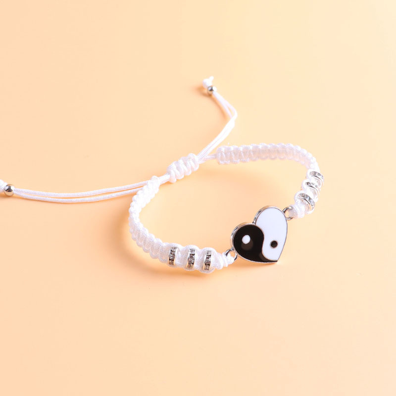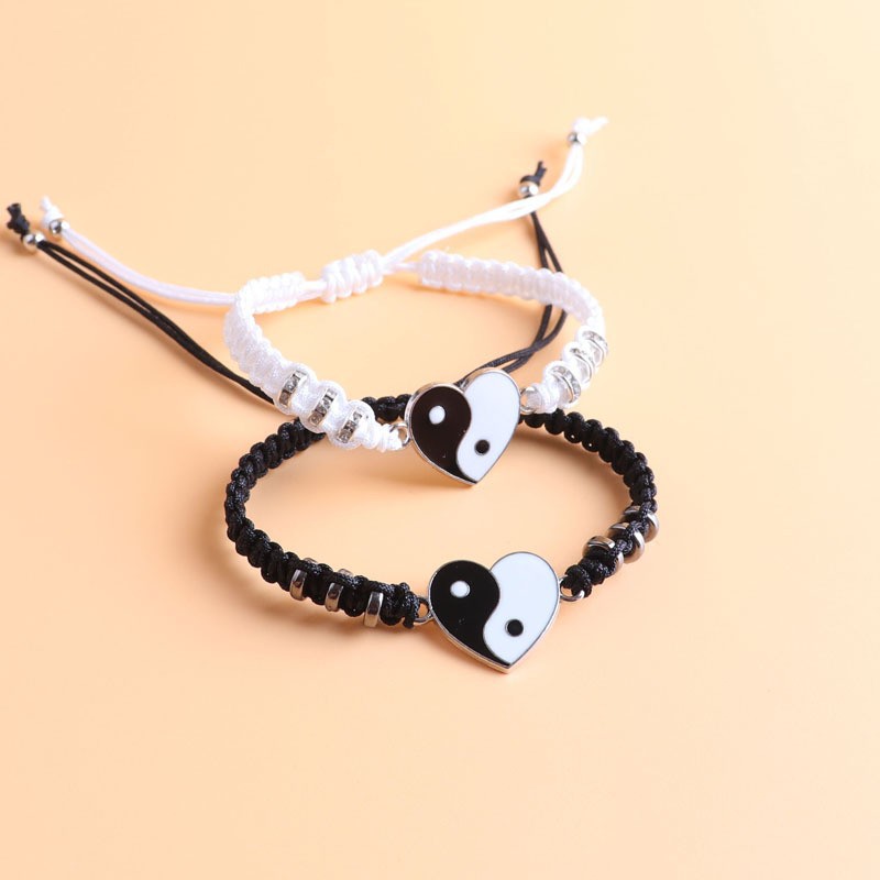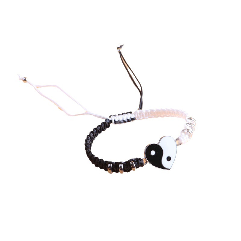 热卖跨境爱心黑白太极八卦手链情侣编织爱心黑白太极八卦手环链批发