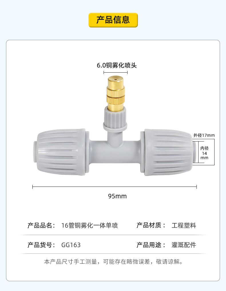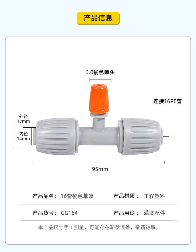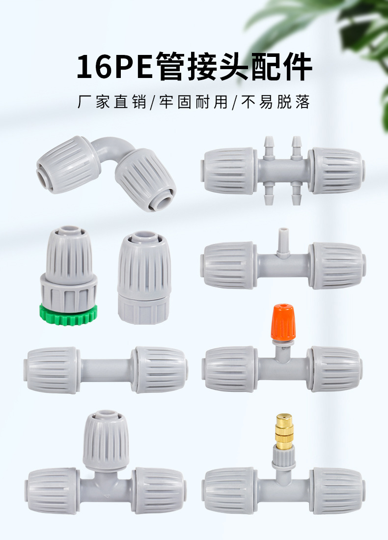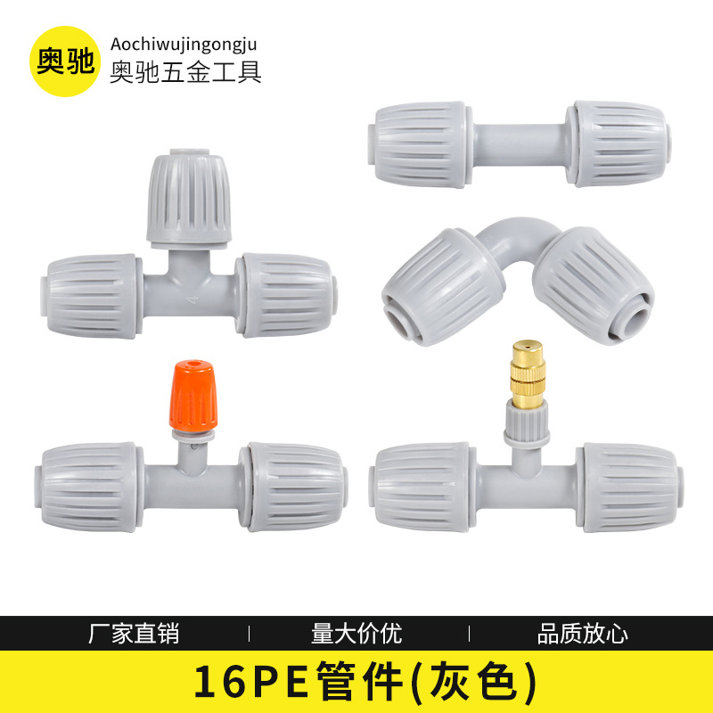 16PE труба серая многогранная запорная муфта микроструйная труба фитинги для садоводства орошения орошения разбрызгиватель