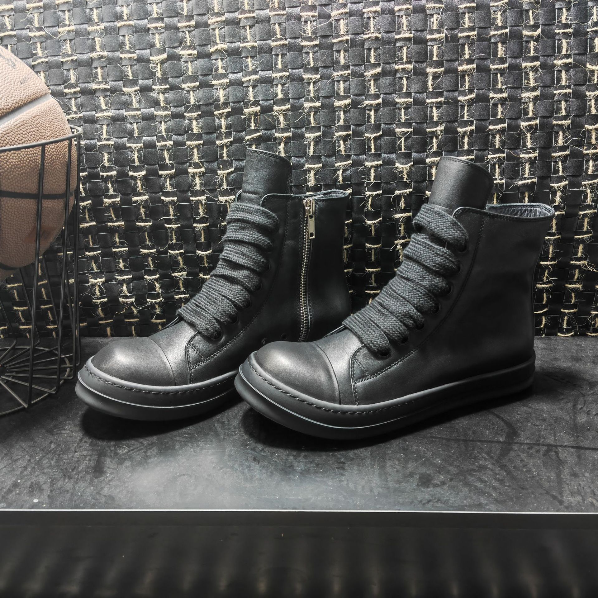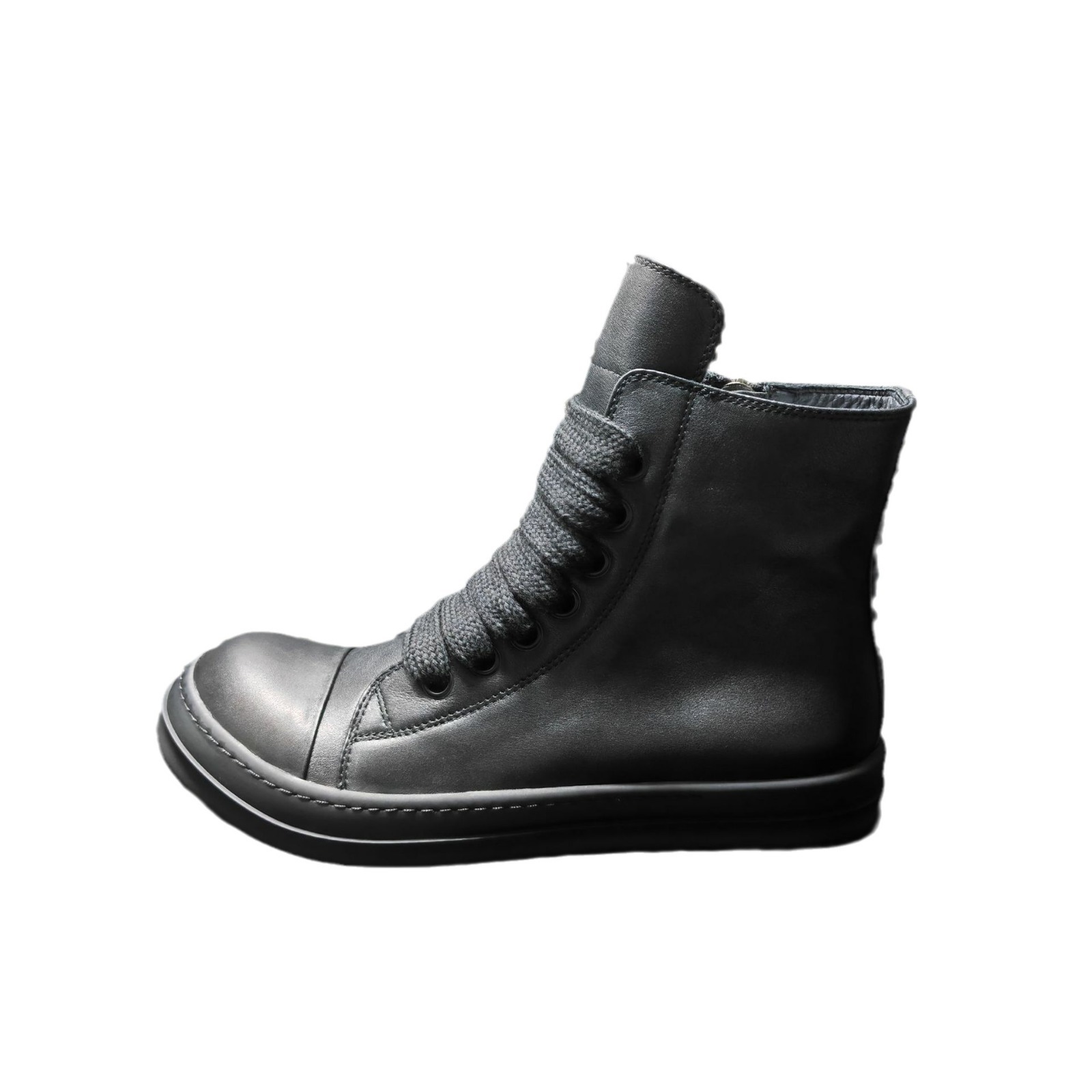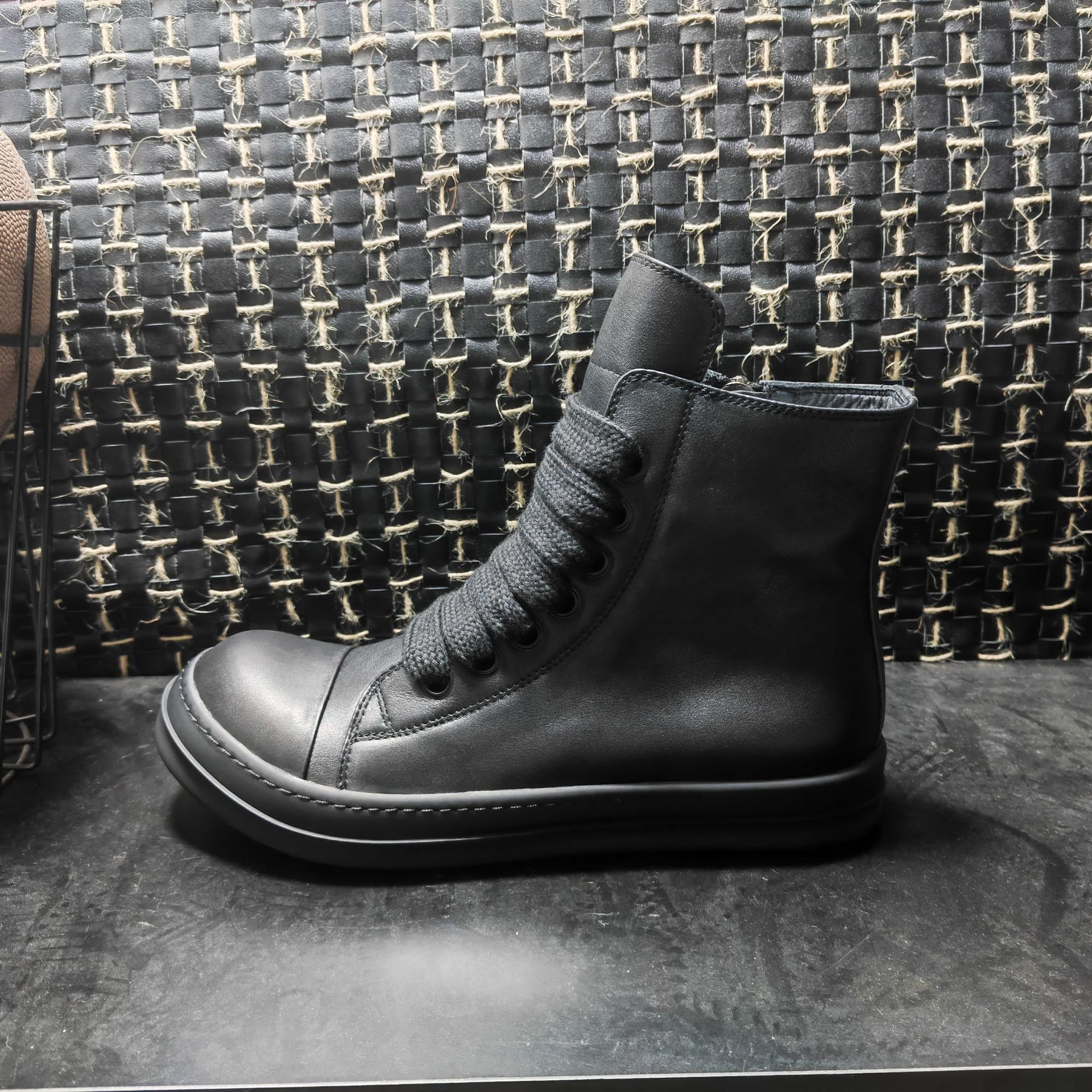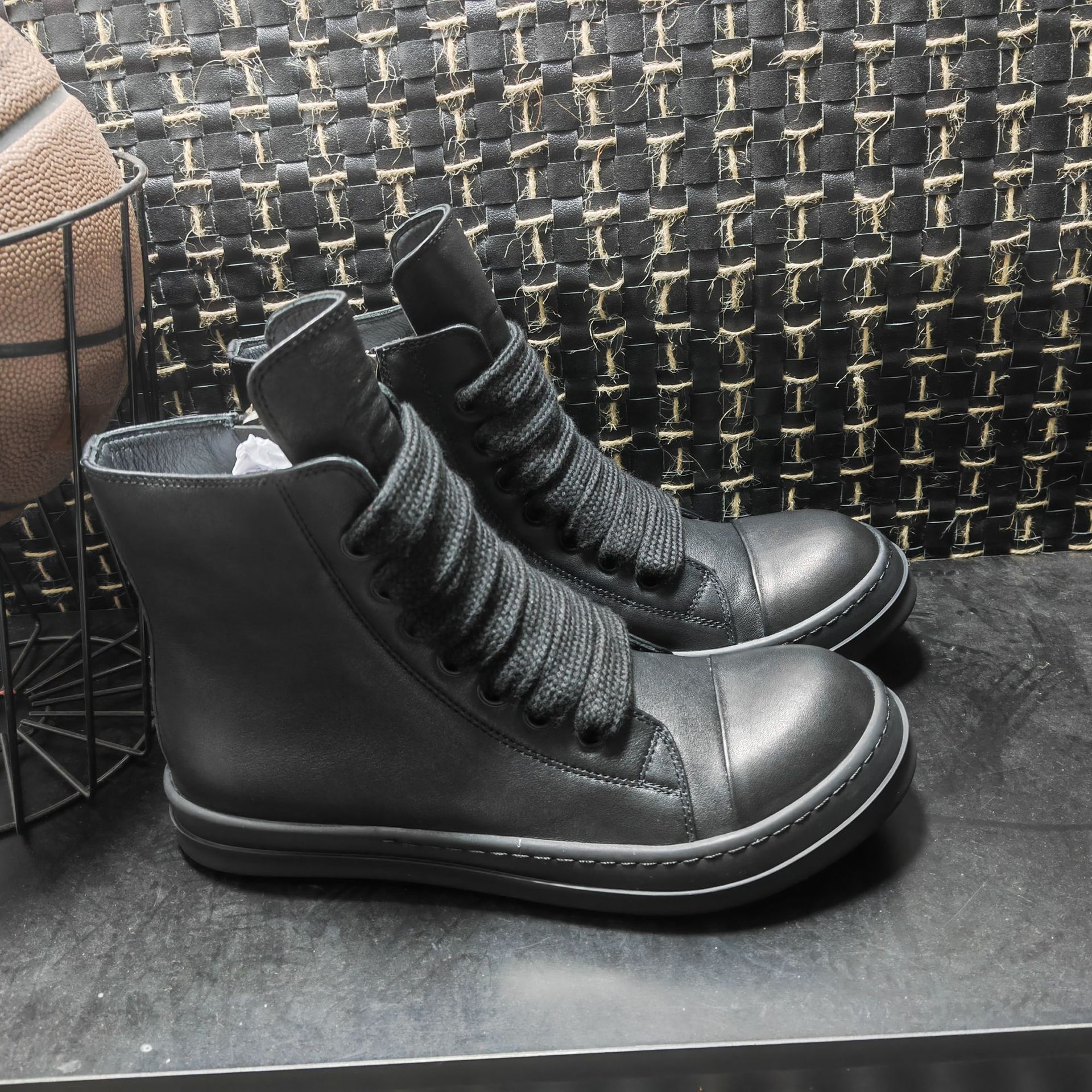 Ro Shoes мужские высокие кеды из натуральной кожи черные толстые широкие шнурки толстая подошва увеличивающая рост темный стиль уличные повседневные кроссовки женские ботильоны модные