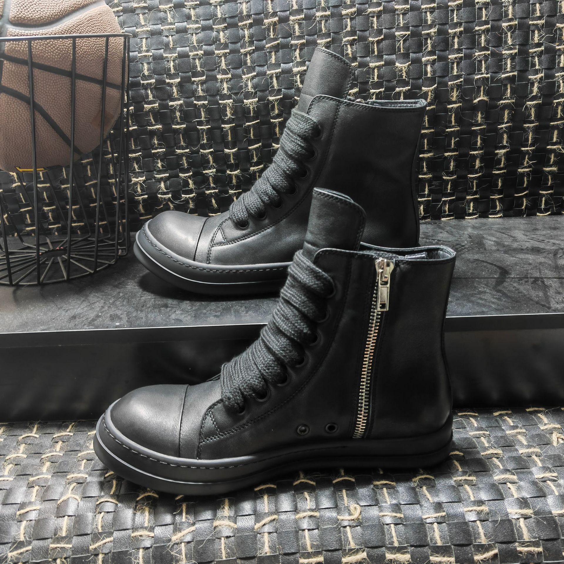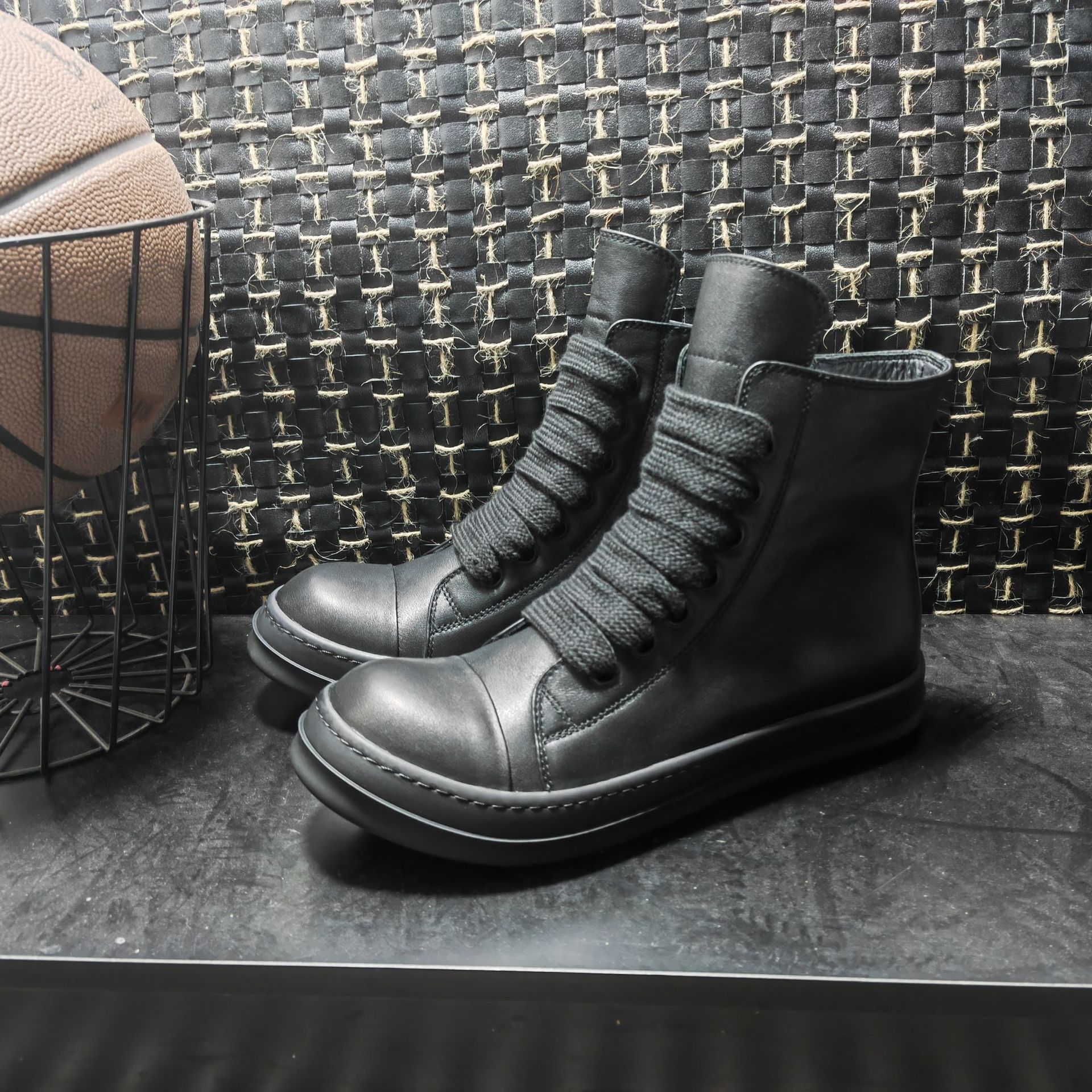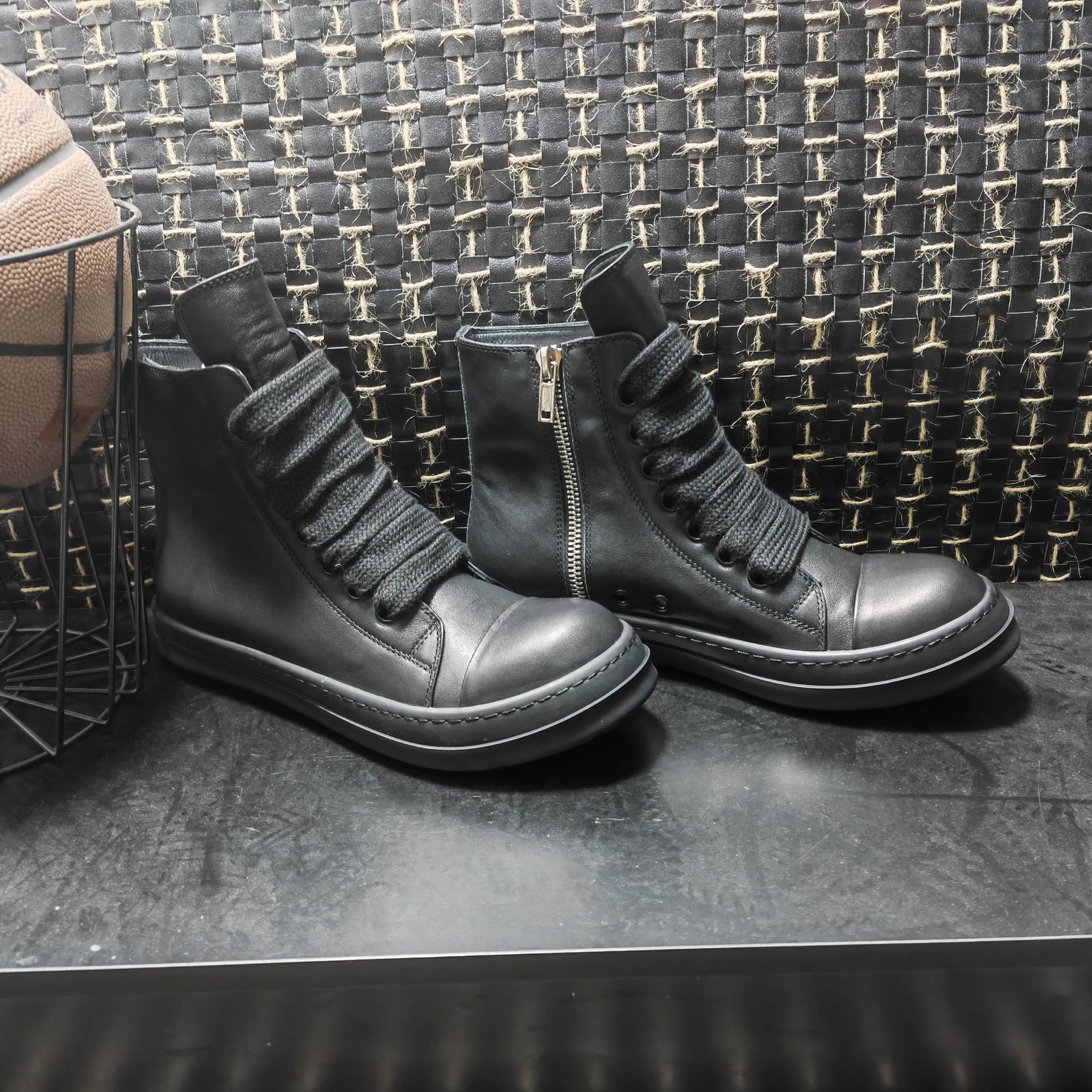 Ro Shoes мужские высокие кеды из натуральной кожи черные толстые широкие шнурки толстая подошва увеличивающая рост темный стиль уличные повседневные кроссовки женские ботильоны модные