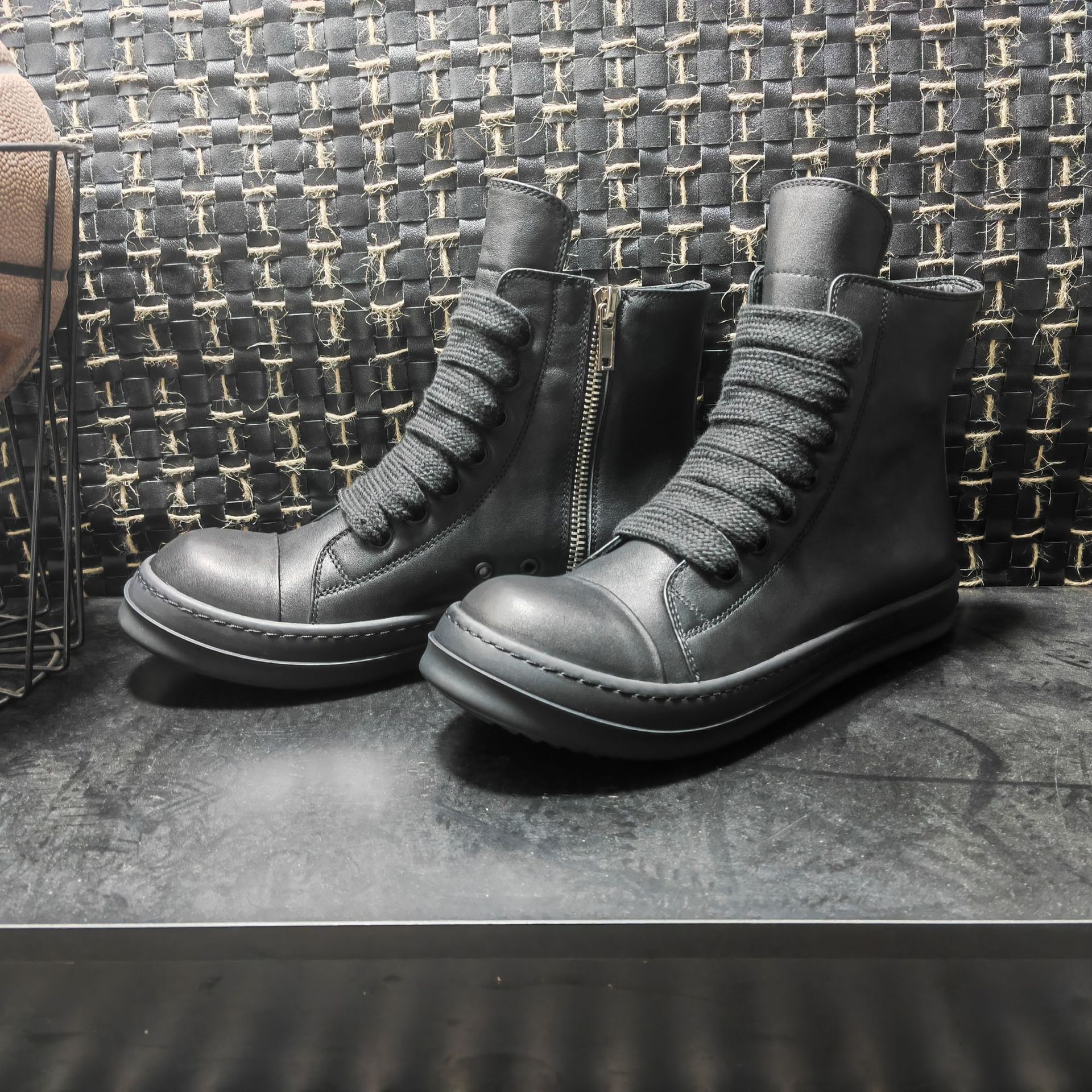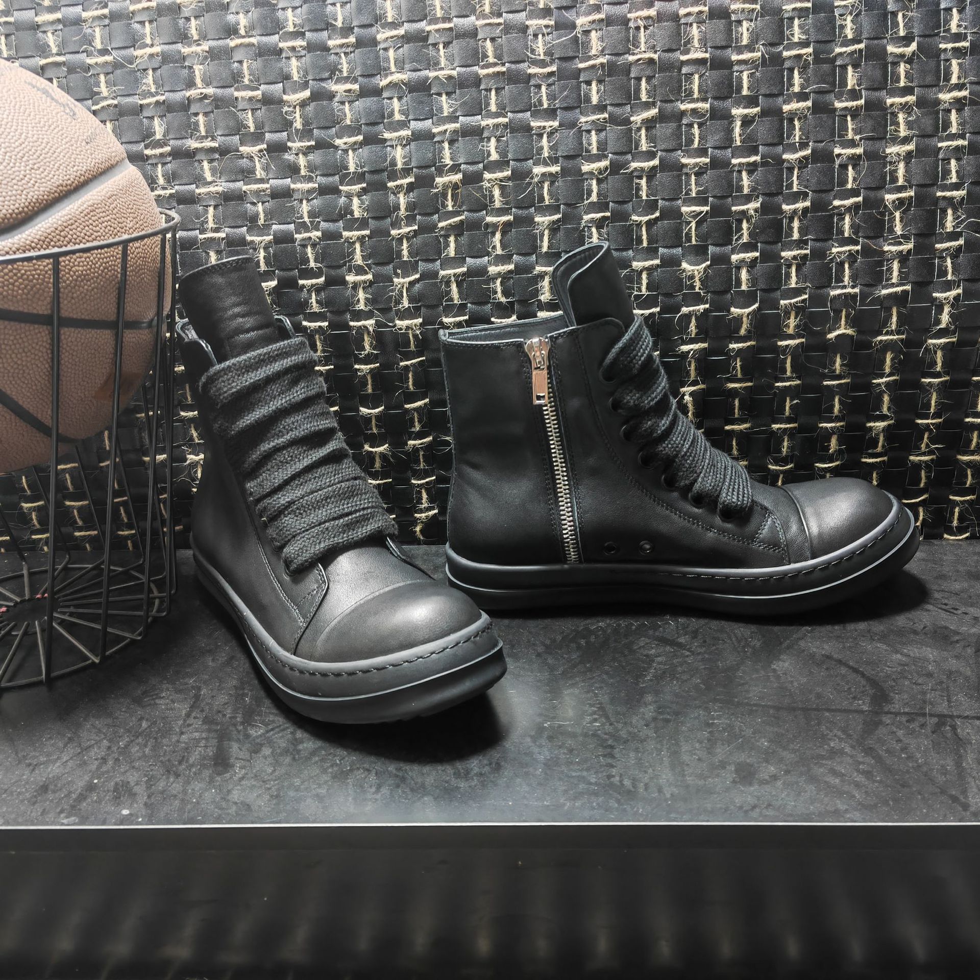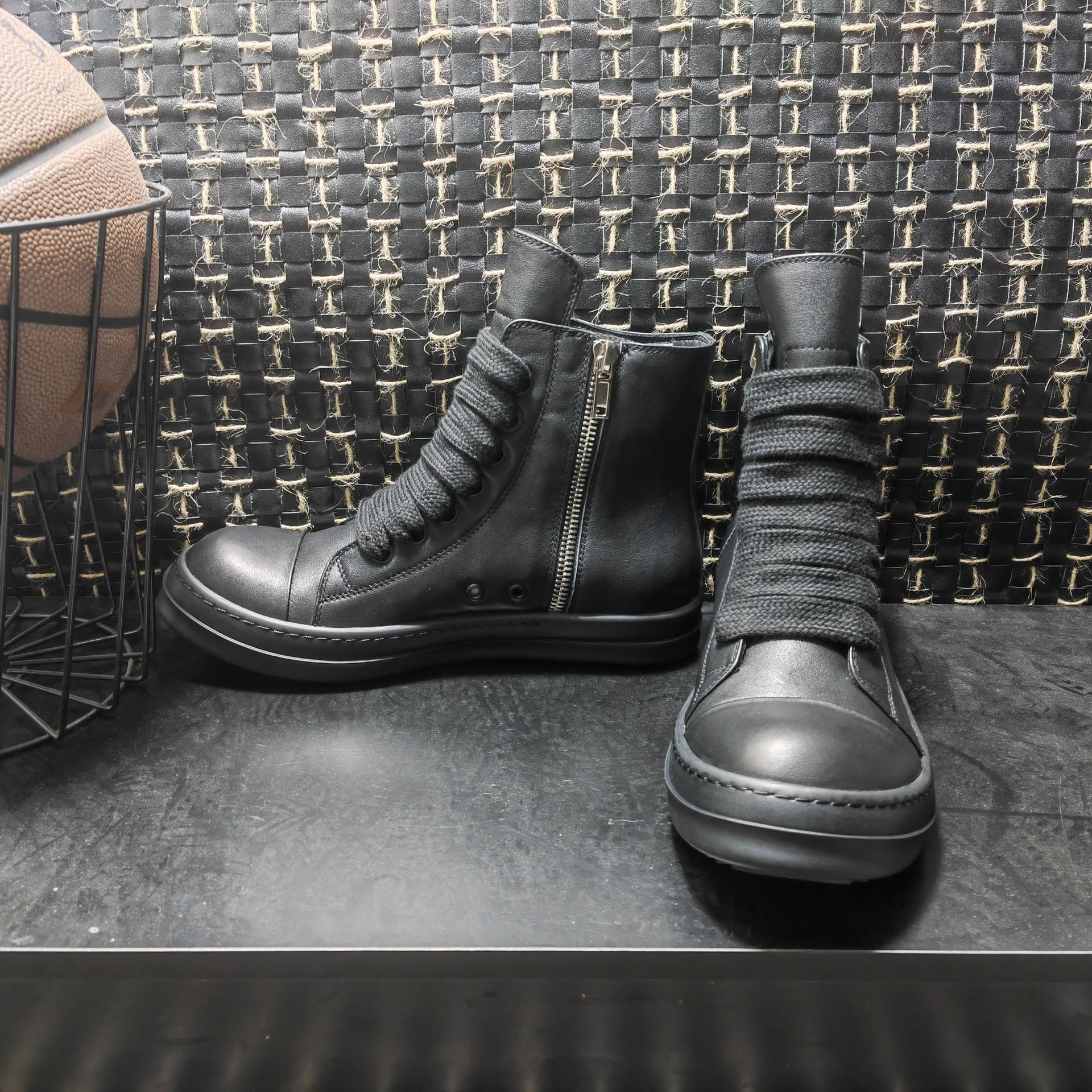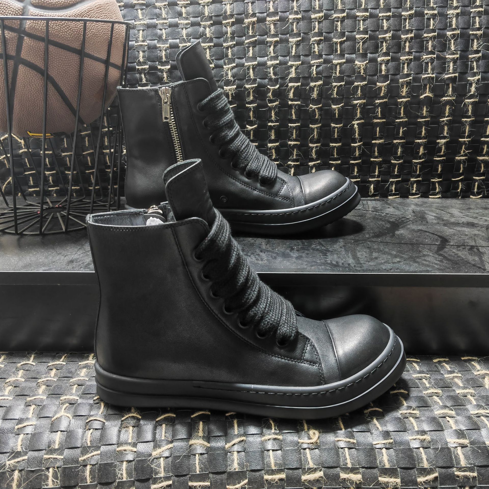 Ro Shoes мужские высокие кеды из натуральной кожи черные толстые широкие шнурки толстая подошва увеличивающая рост темный стиль уличные повседневные кроссовки женские ботильоны модные