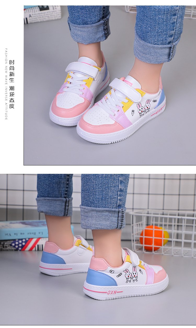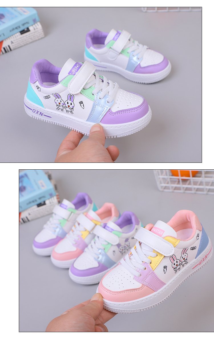 Детские кроссовки для девочек красочные повседневные туфли 2023 весна и осень новые девушки мультфильм милые одиночные туфли для школы маленькие белые туфли