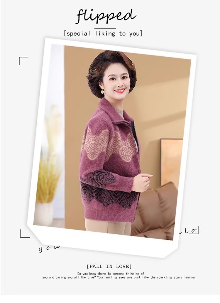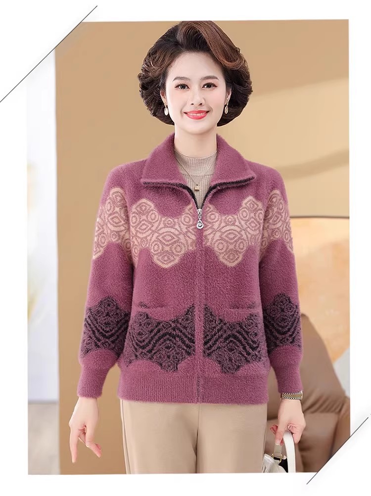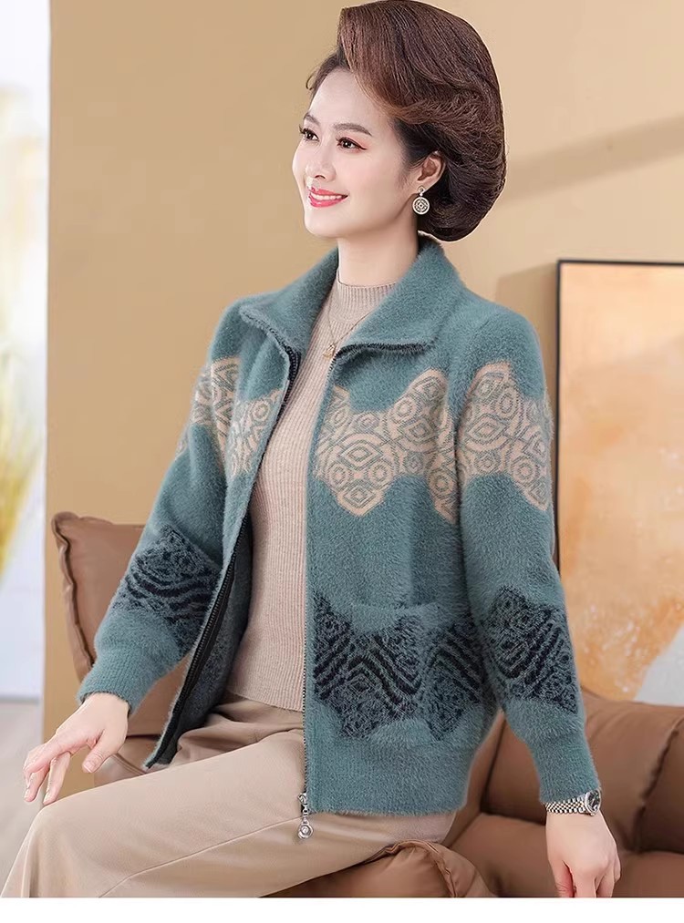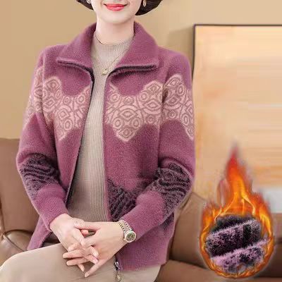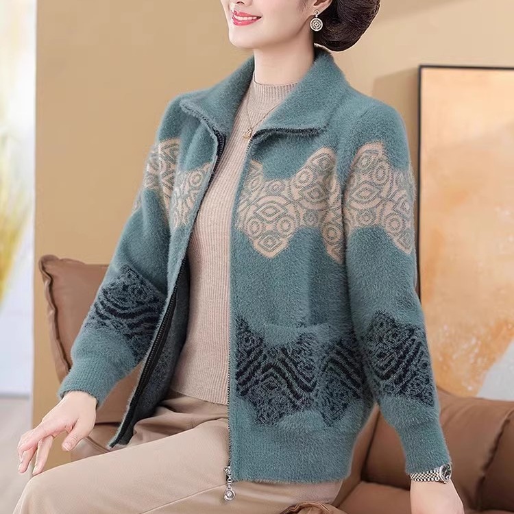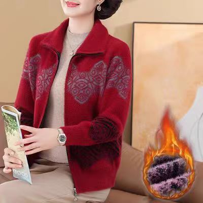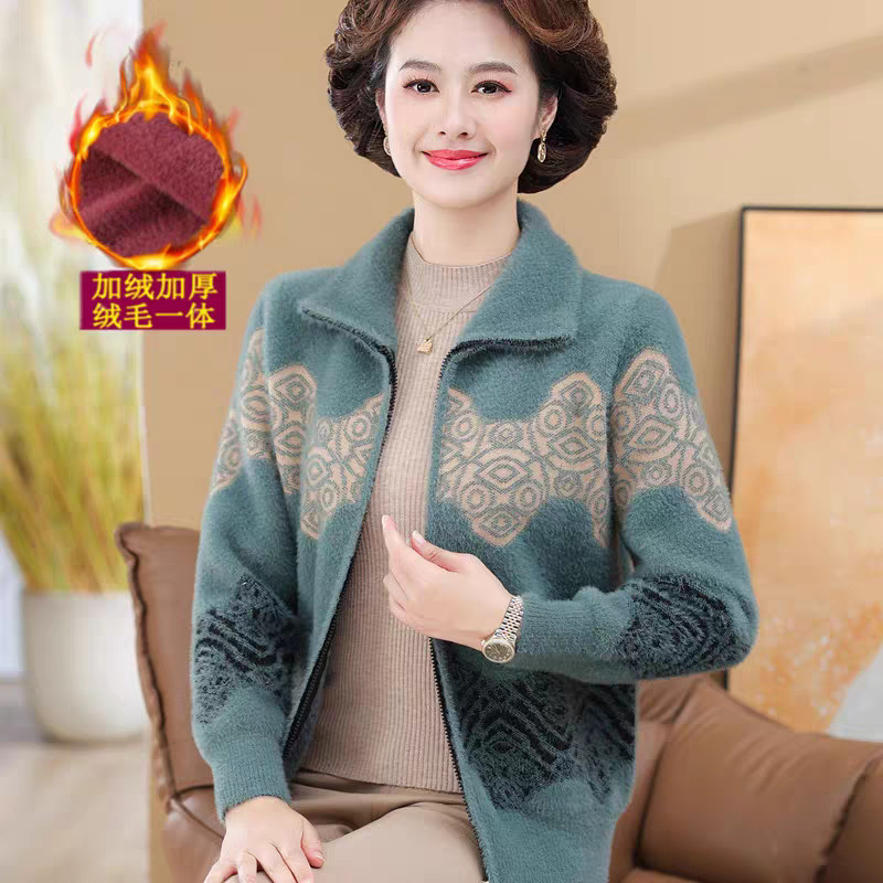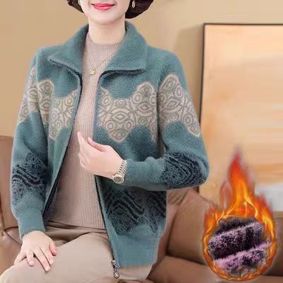 Мама одеваются толстые норковые плюшевые куртки для женщин среднего возраста осенние куртки для пожилых людей осень и зима отворот свитера кардиган