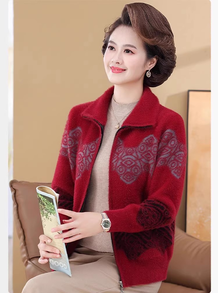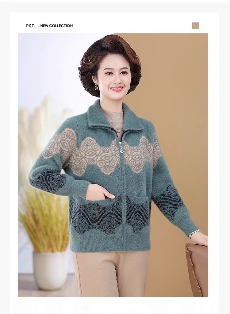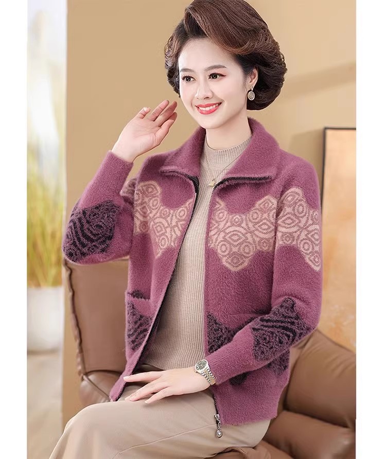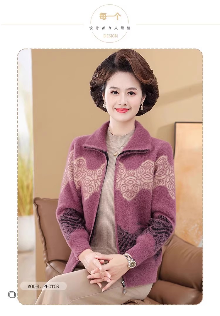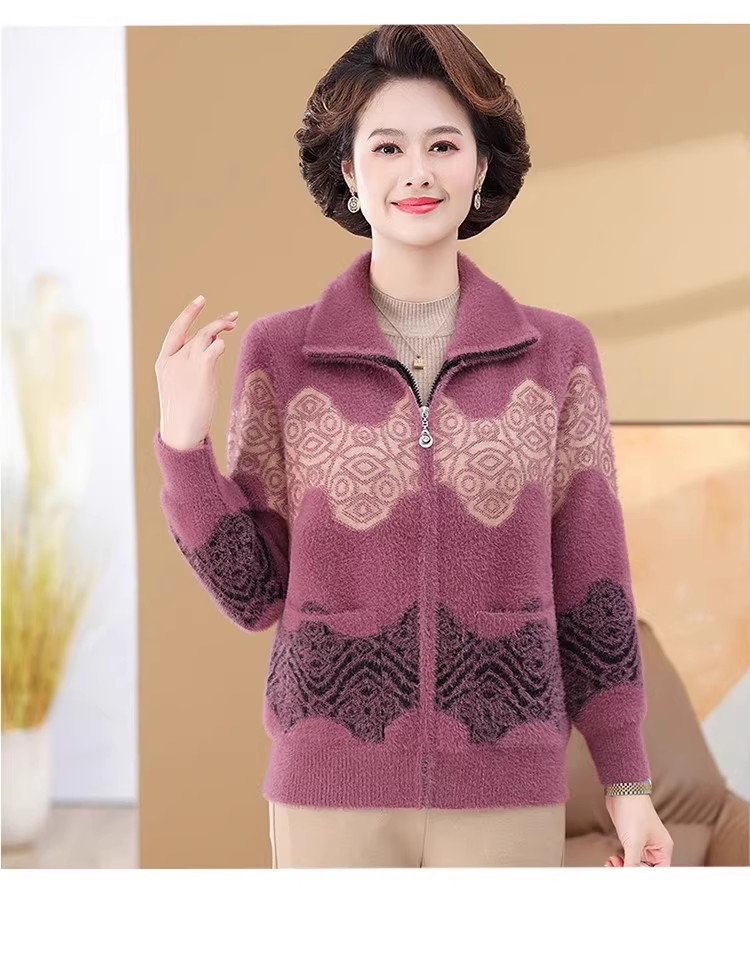 Мама одеваются толстые норковые плюшевые куртки для женщин среднего возраста осенние куртки для пожилых людей осень и зима отворот свитера кардиган