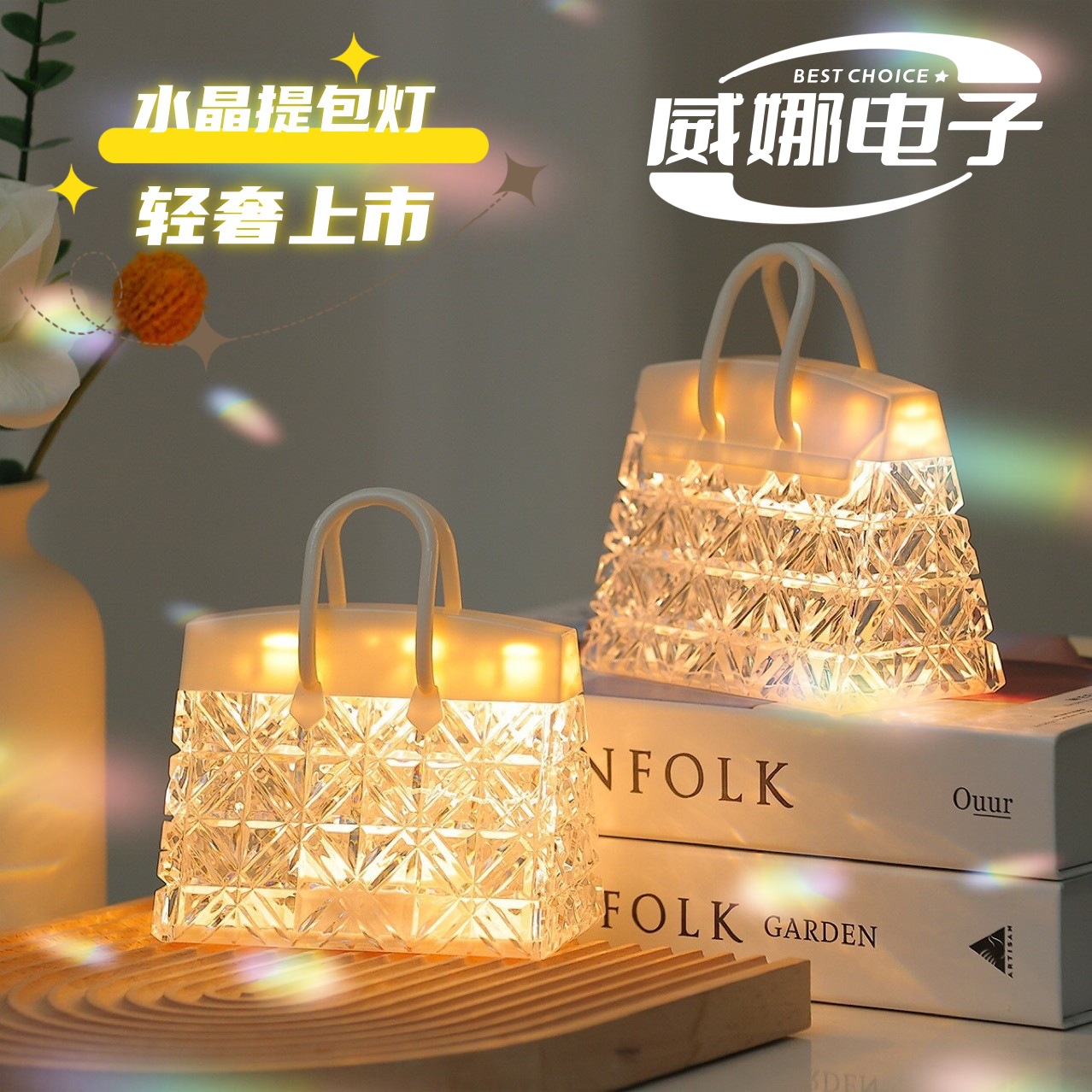 Настольная лампа в виде сумки, популярная среди интернет-знаменитостей, с кристаллами, создающая романтическую атмосферу, персонализированная, креативная, ночник, для спальни.