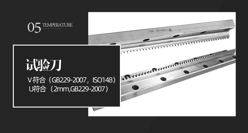 U型和V型拉刀,均采用W18Cr4V材料制造,确保了材料的硬度高,耐磨性好,每把拉刀可加工试样2万余次。