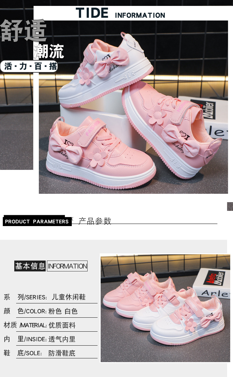 2023 Лето-осенний новый стиль девушка легкая папочка обувь детская мода мягкая подошва маленькая белая обувь для девочек повседневная спортивная обувь