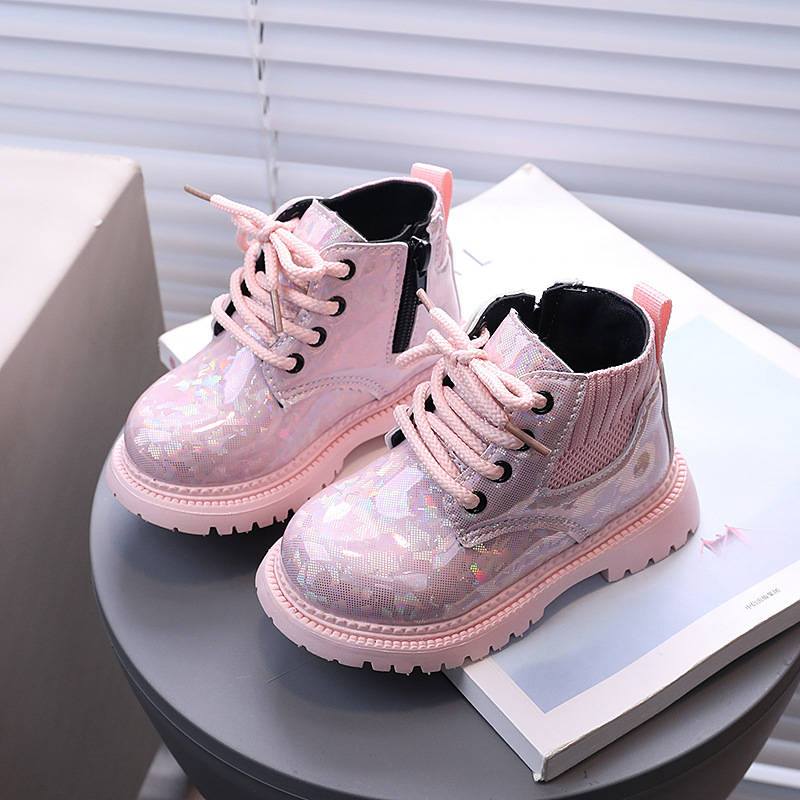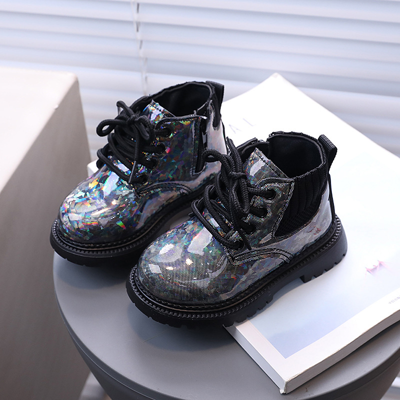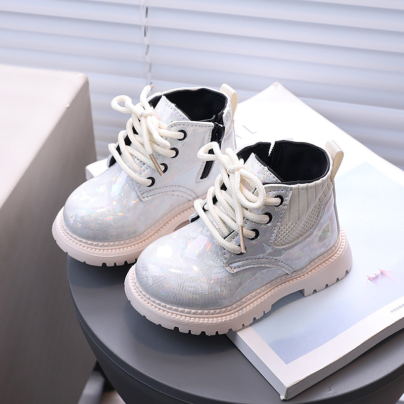 Девочки Мартина сапоги 2024 весна и осень новый детский средний ребенок корейская версия девушки противоскользящие повседневные одиночные кожаные сапоги