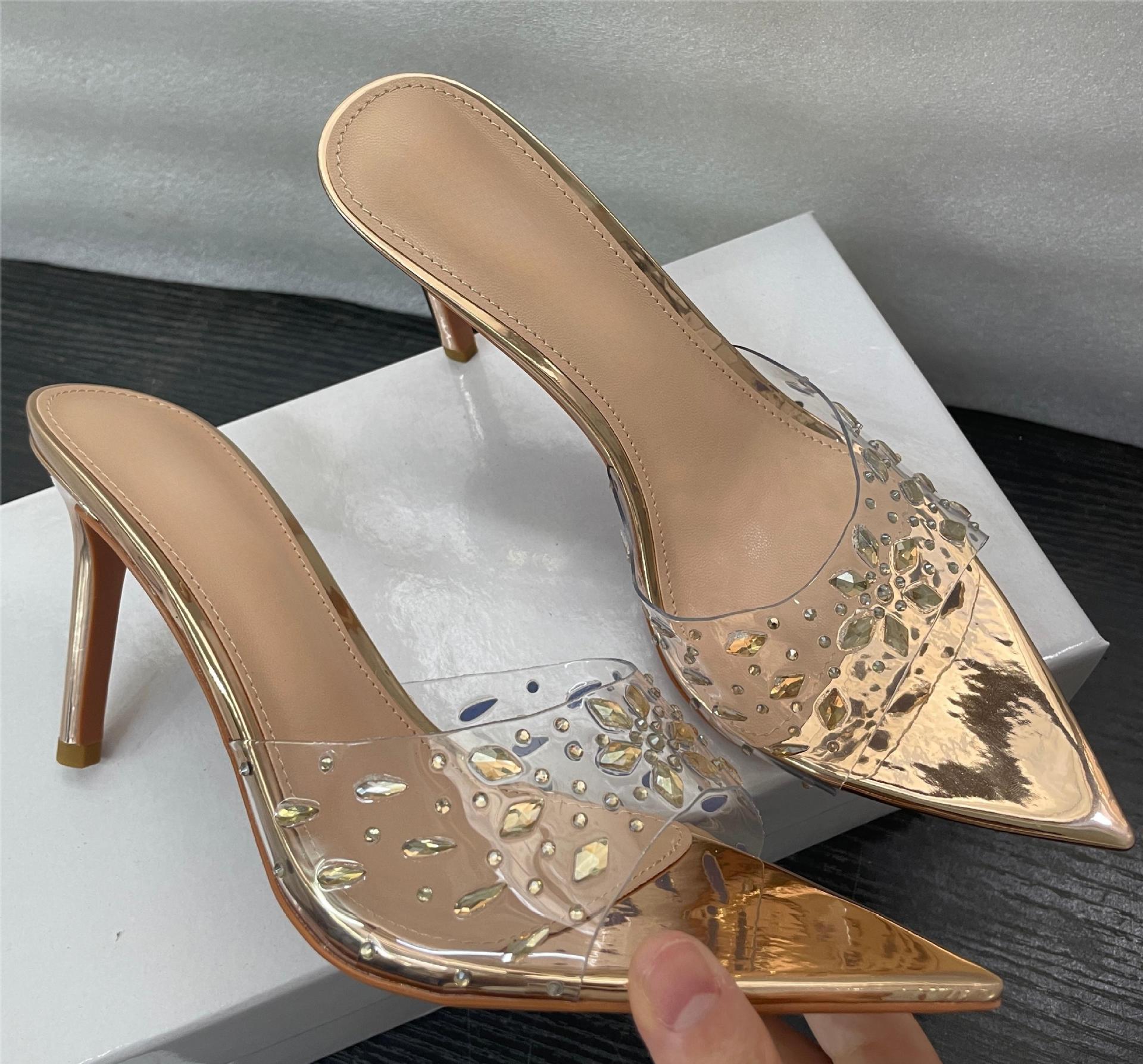 Новые прозрачные босоножки на высоком каблуке «Снежинка» с острым носком, на шпильке, с открытым носком, универсальные, сексуальные, в европейском и американском стиле, коллекция Весна/Лето 2025