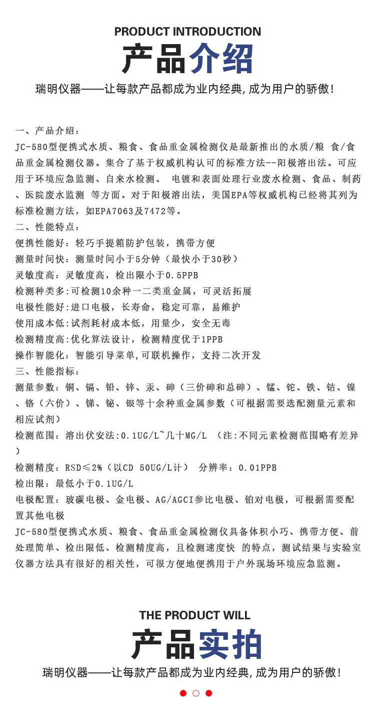 Его можно применять для экстренного мониторинга окружающей среды, обнаружения водопроводной воды, обнаружения сточных вод в гальванической и поверхностной промышленности, мониторинга пищевых, фармацевтических, больничных сточных вод и т. д.