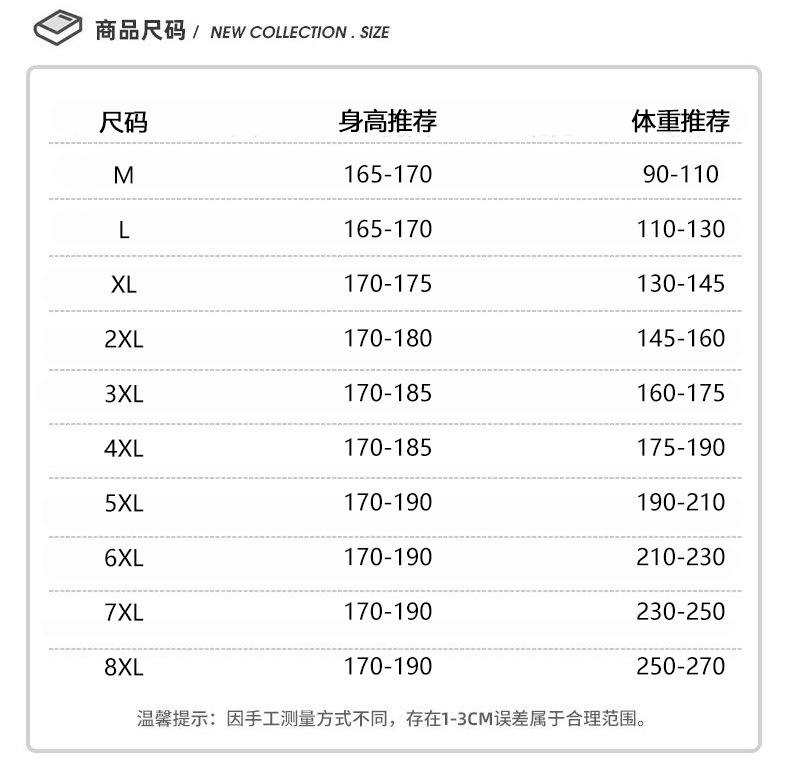 M; L; XL; 2XL; 3XL; 4XL; 5XL; 6XL; 7XL; 8XL