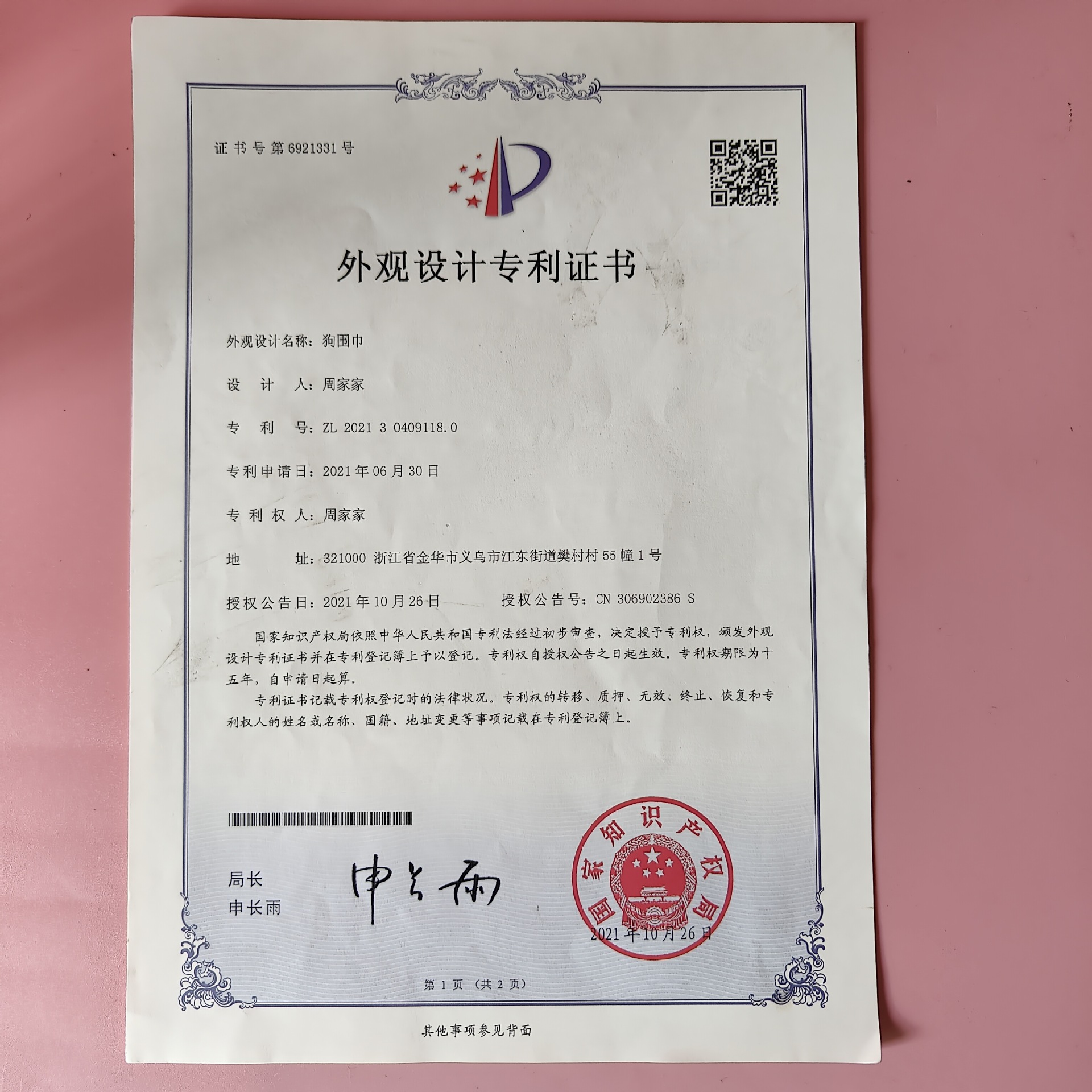 三角巾柔软,亲肤,可水洗,不掉色。项圈材质是尼龙,带有D型环,也可以牵引。