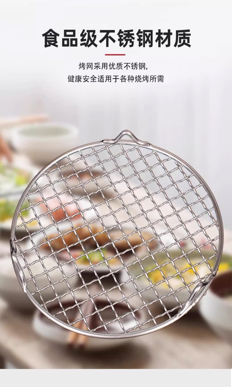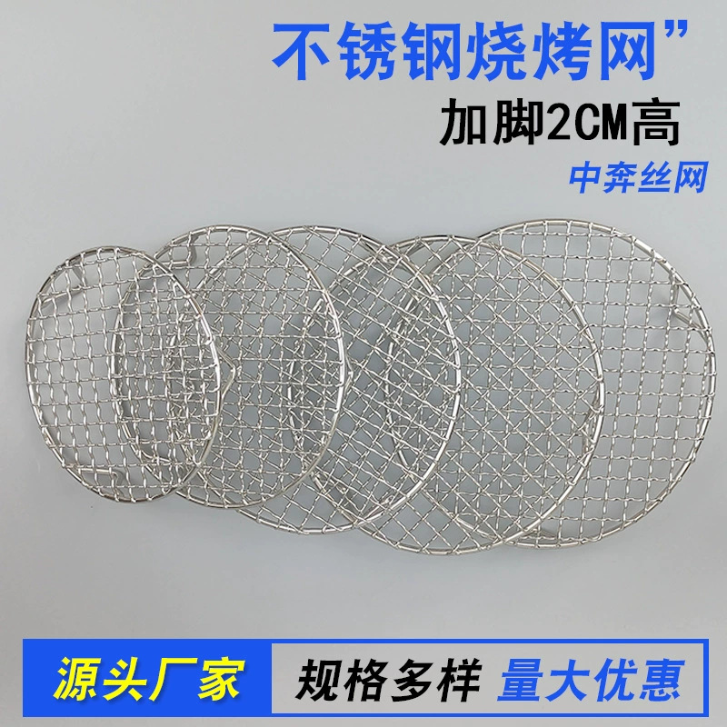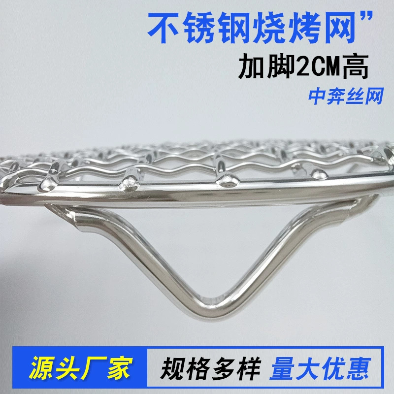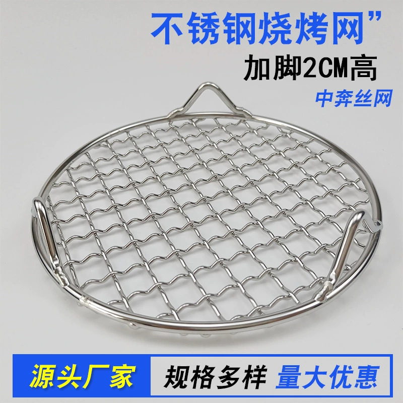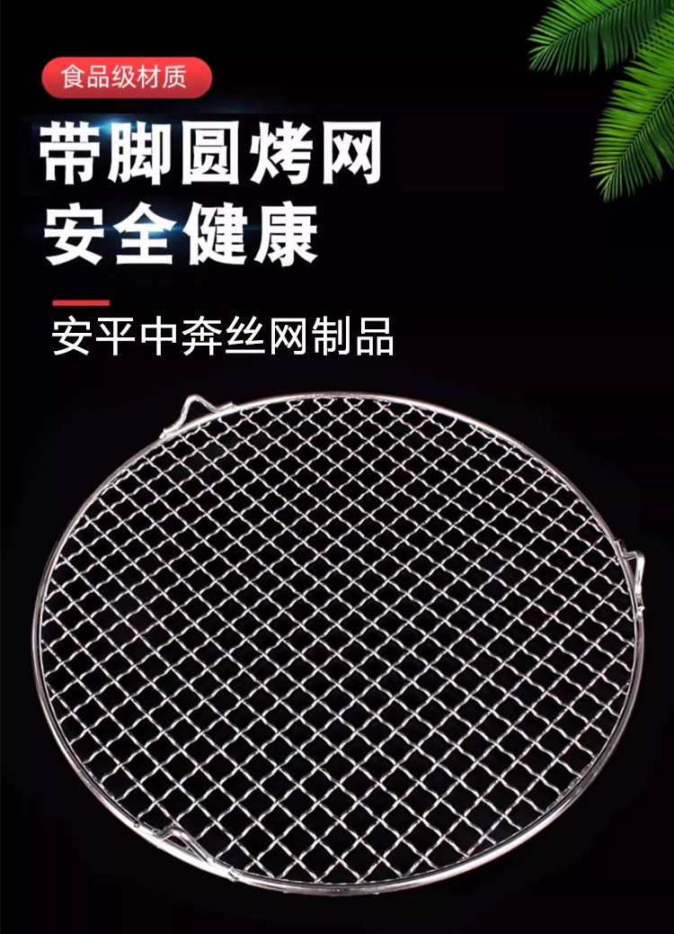 不锈钢烧烤网圆形加粗带脚空气炸锅烤网户外烤肉网熏肉篦子烧烤网