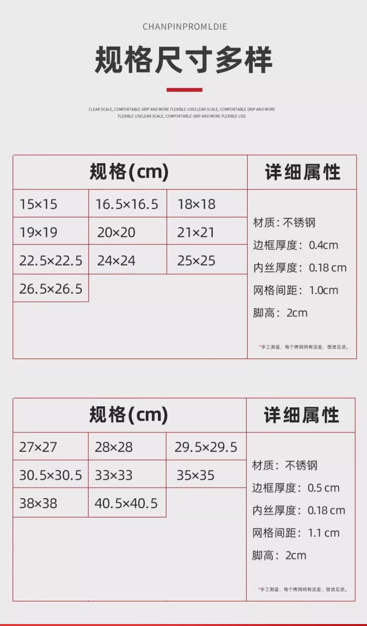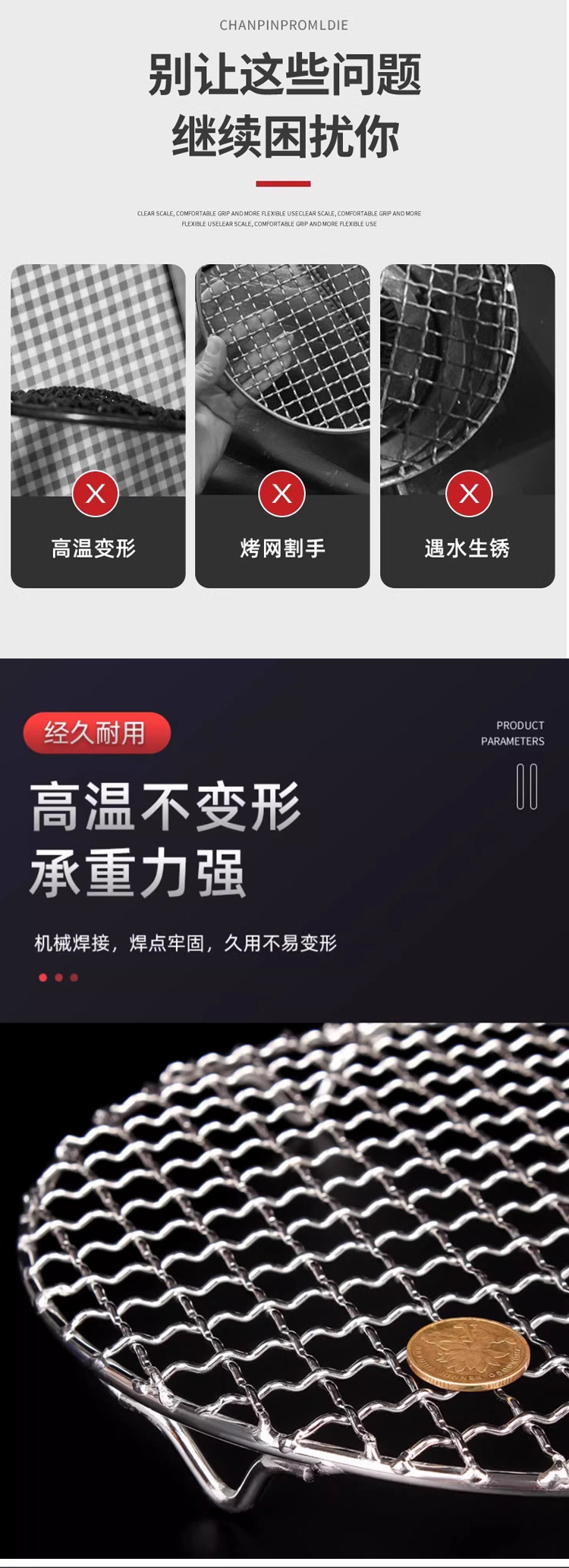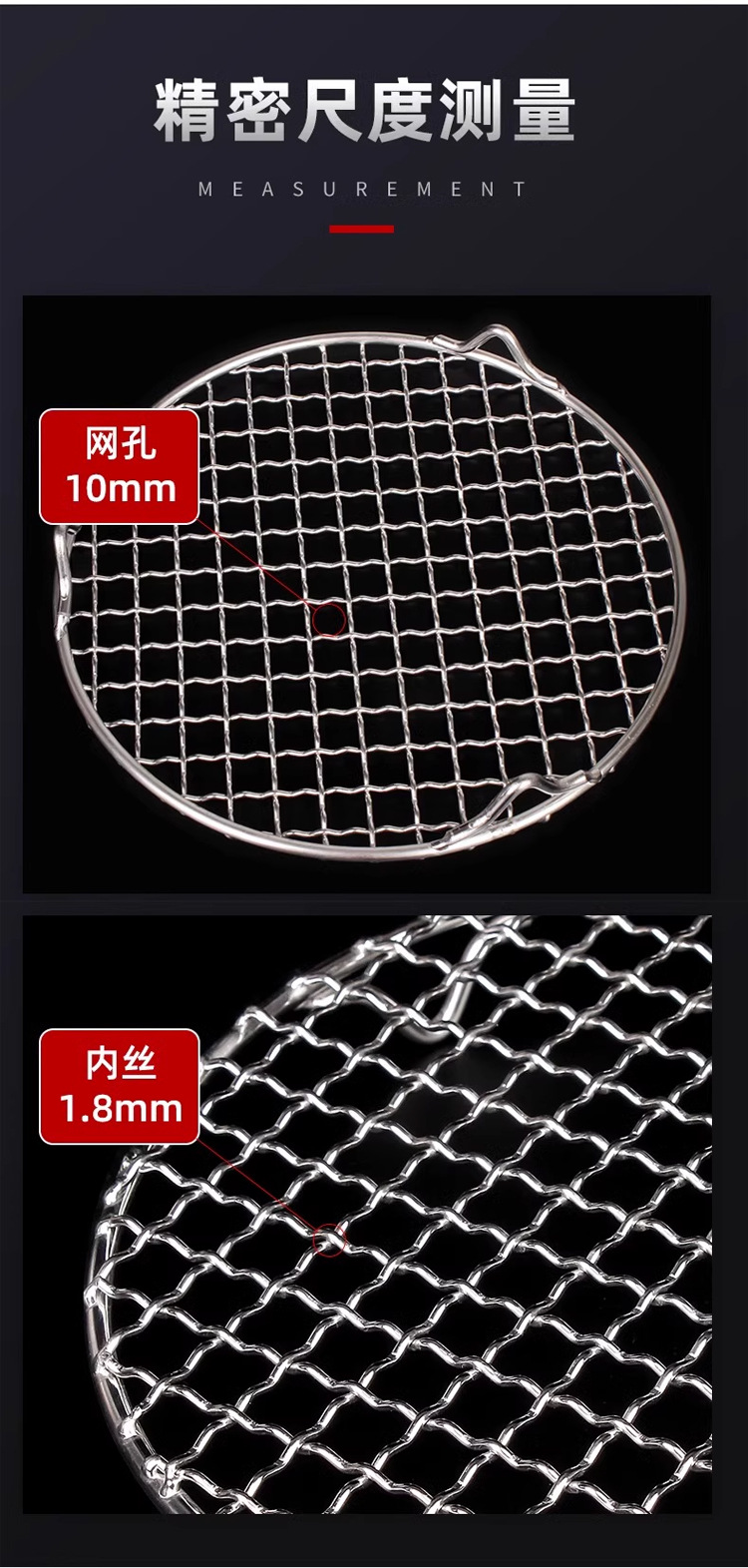 不锈钢烧烤网圆形加粗带脚空气炸锅烤网户外烤肉网熏肉篦子烧烤网