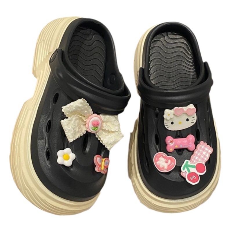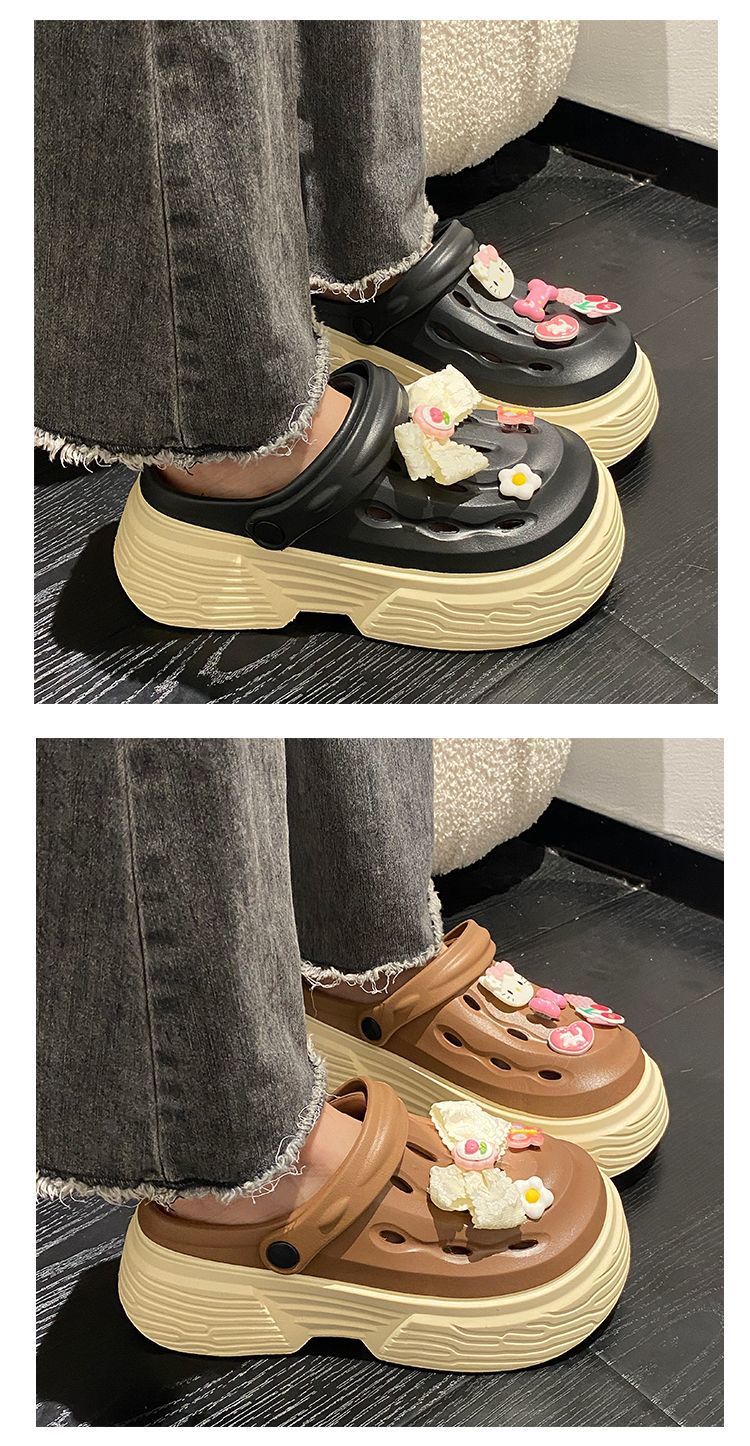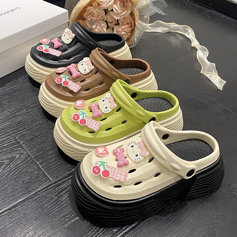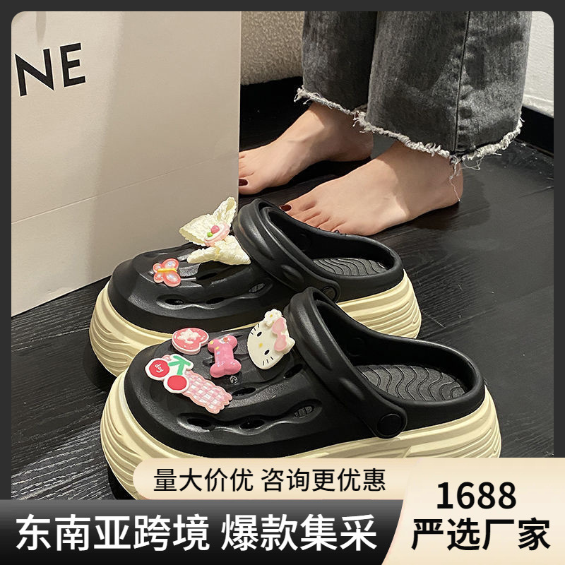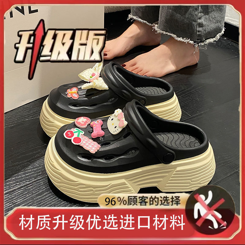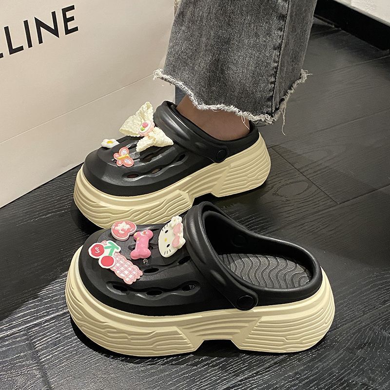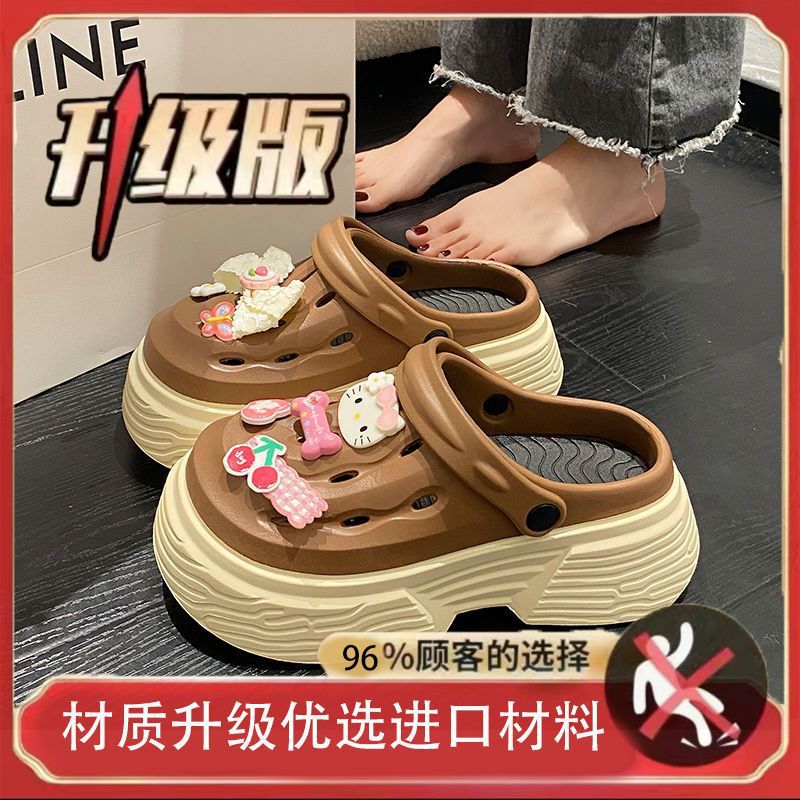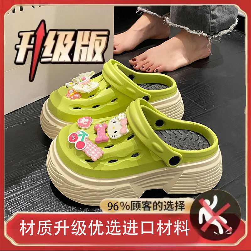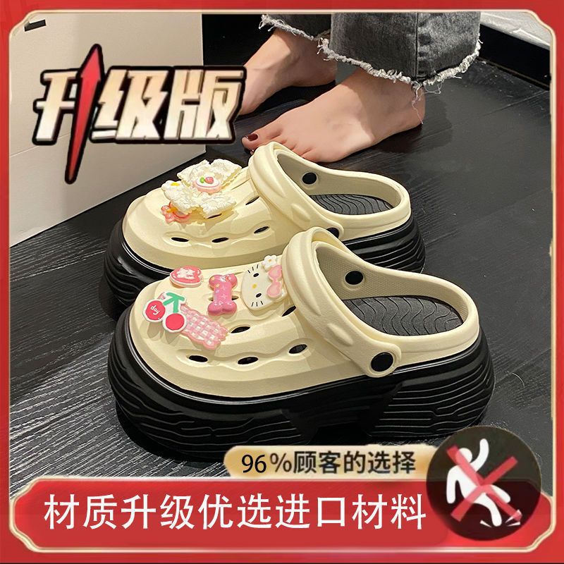 Подъем туфли с дырками на очень толстой подошве женские летние носки 2024 новые милые ins противоскользящие пляжные булочки