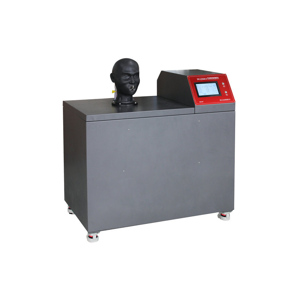 使用头模佩戴口罩,并通过呼吸机模拟人体呼吸功能,以此检测口罩是否符合要求。