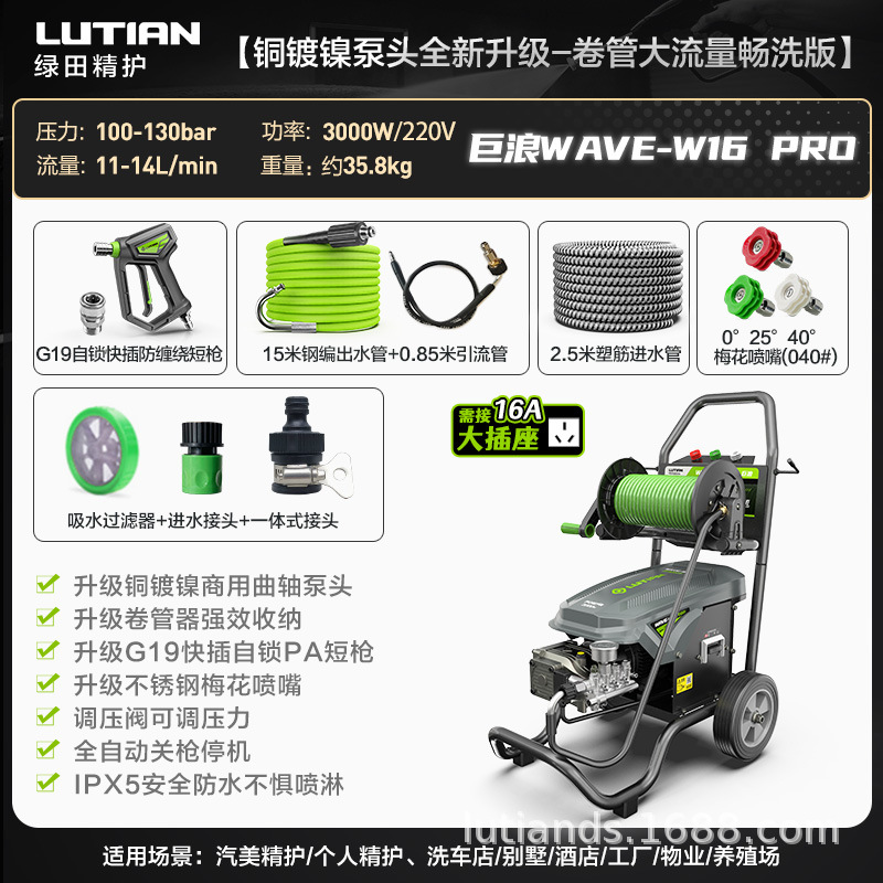 Коммерческая промышленная автомойка Greenfield, 220 В, автомобильная щетка, водяной насос высокого давления, мощный мощный водяной пистолет для промывки, гигантская волновая чистящая машина