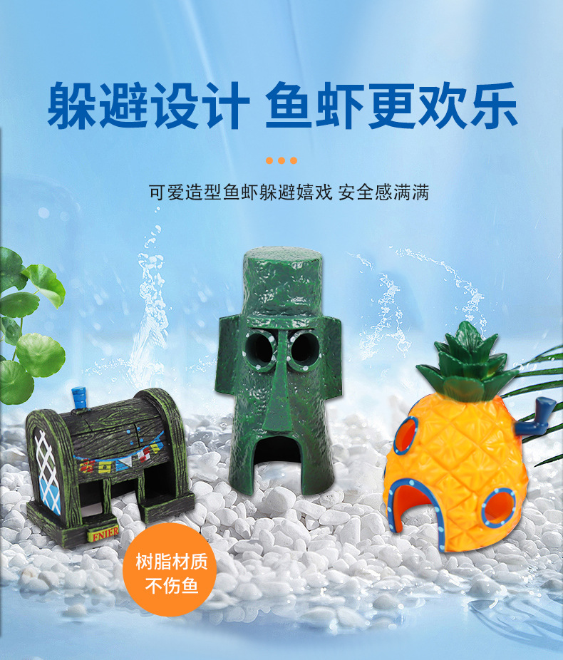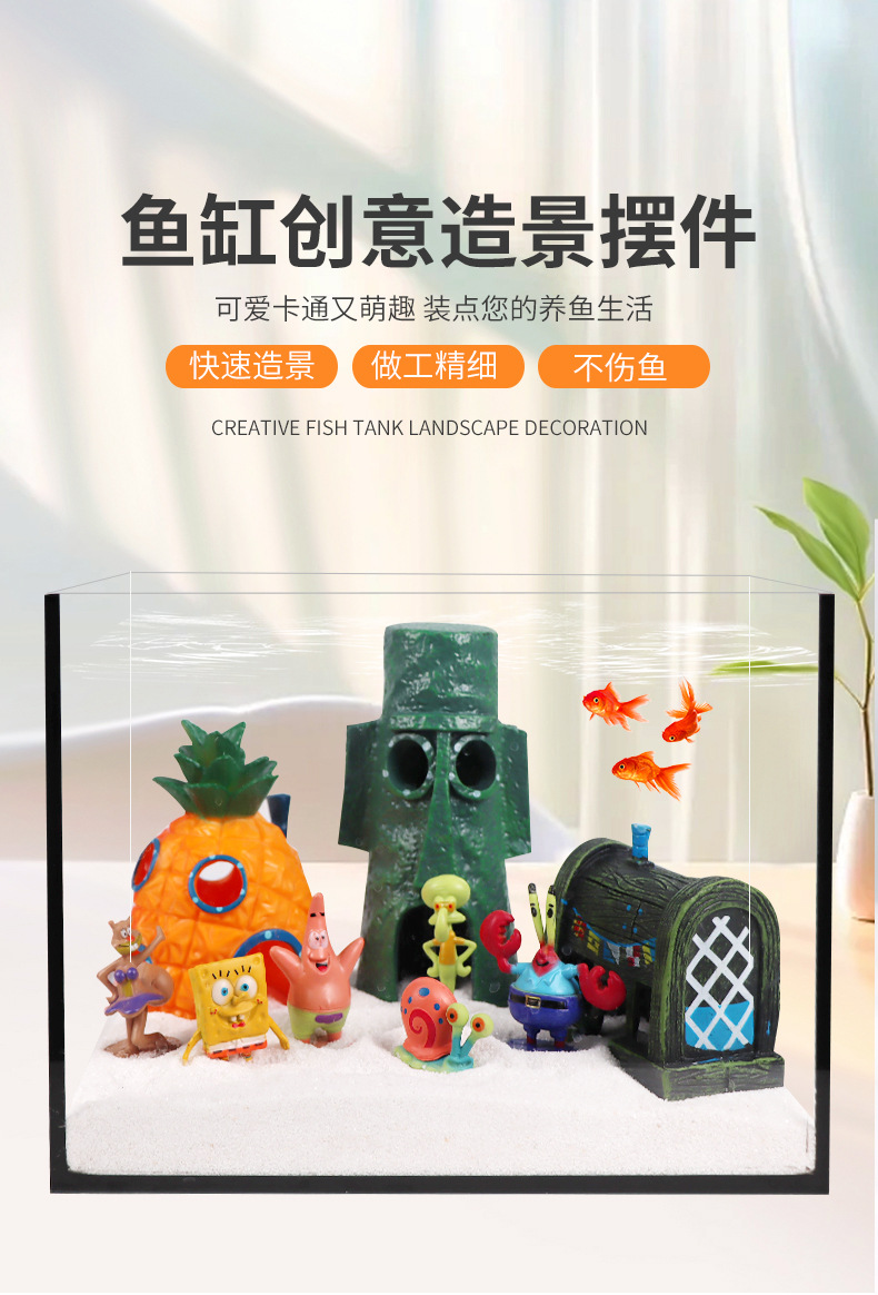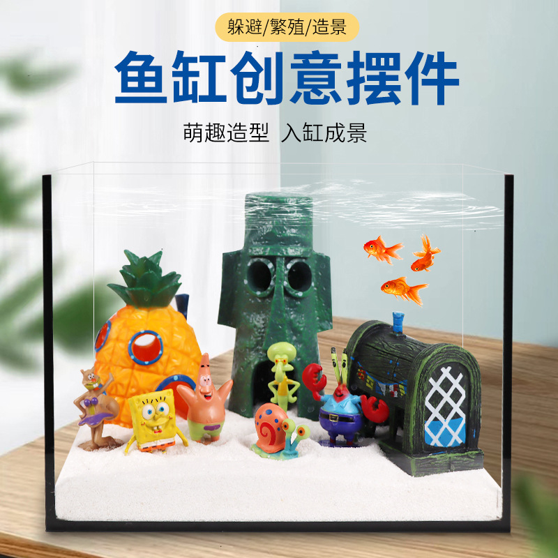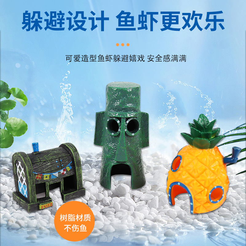 Детская кукла Губка Боб пейзажный ананасовый дом мультяшный аквариум рыба креветка уклонение дом украшения смолы аквариум декорации