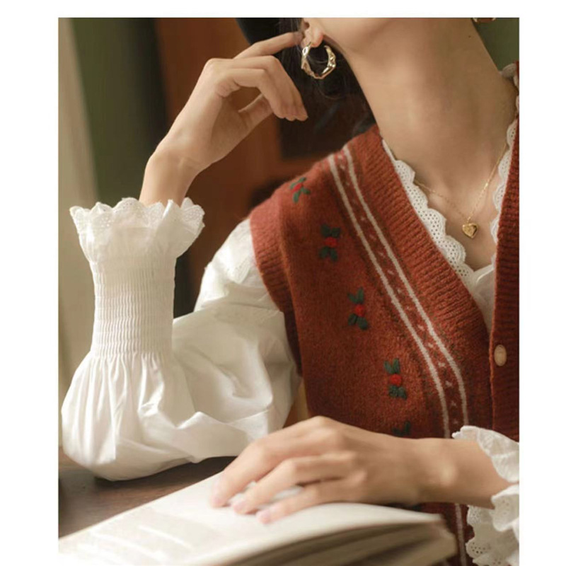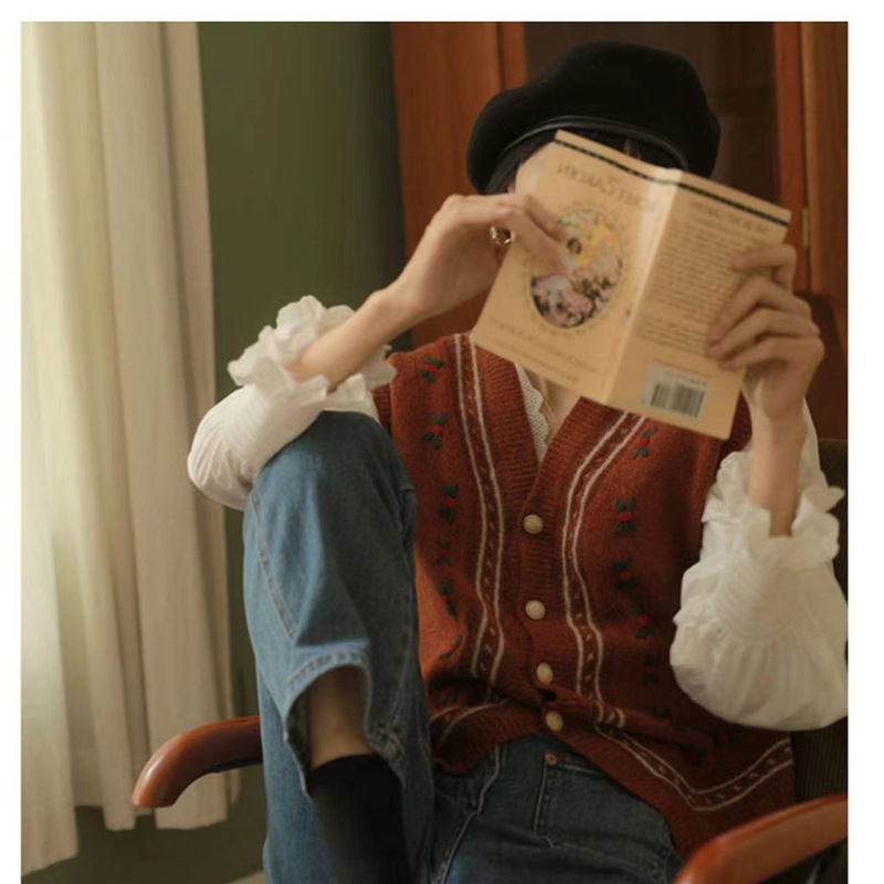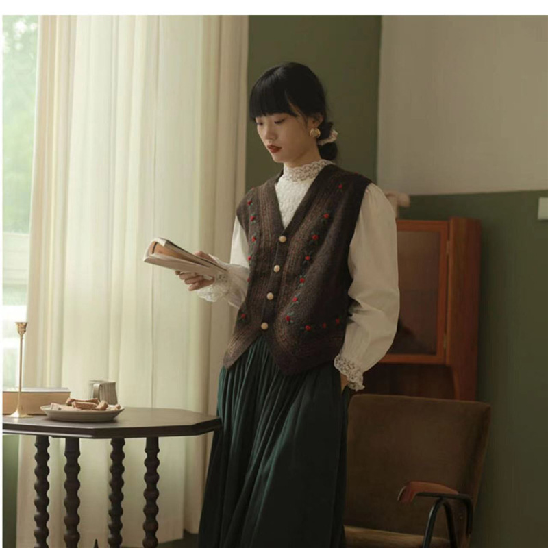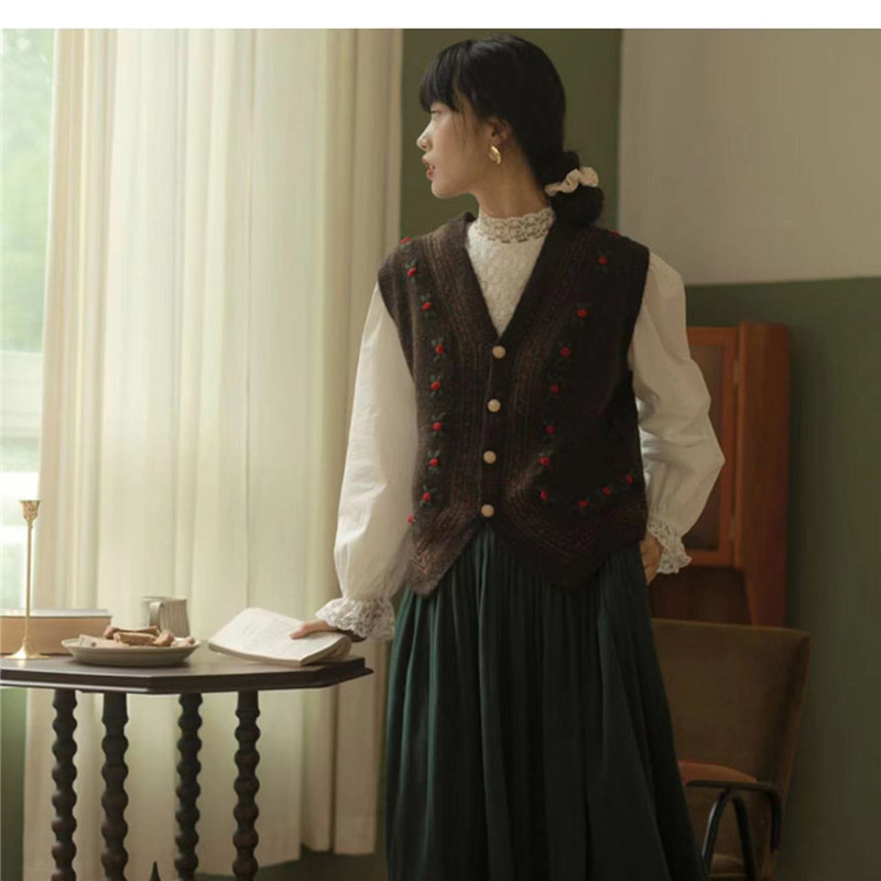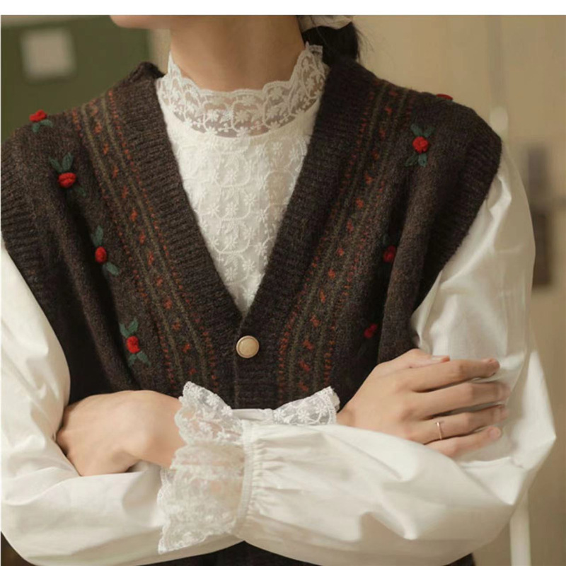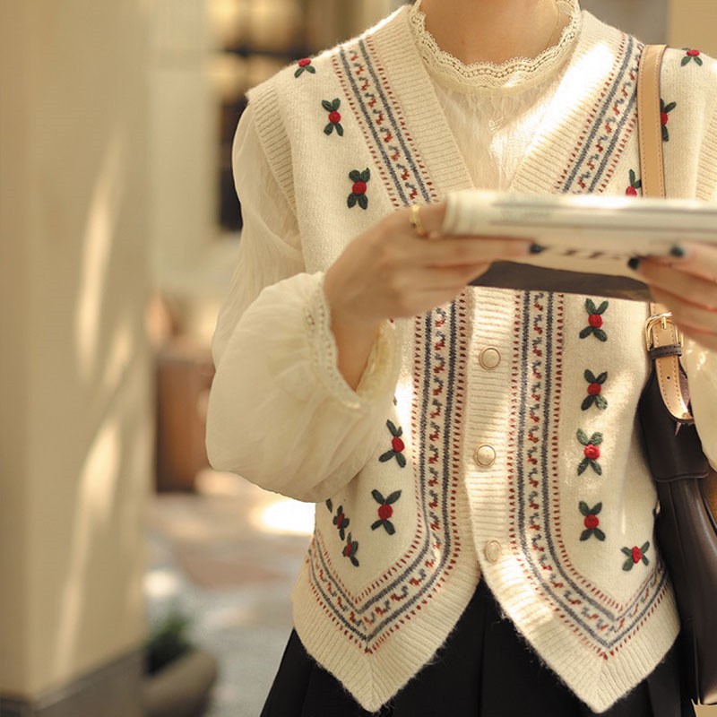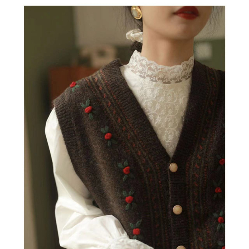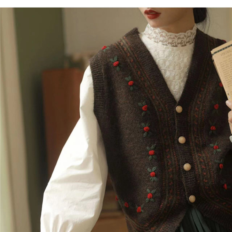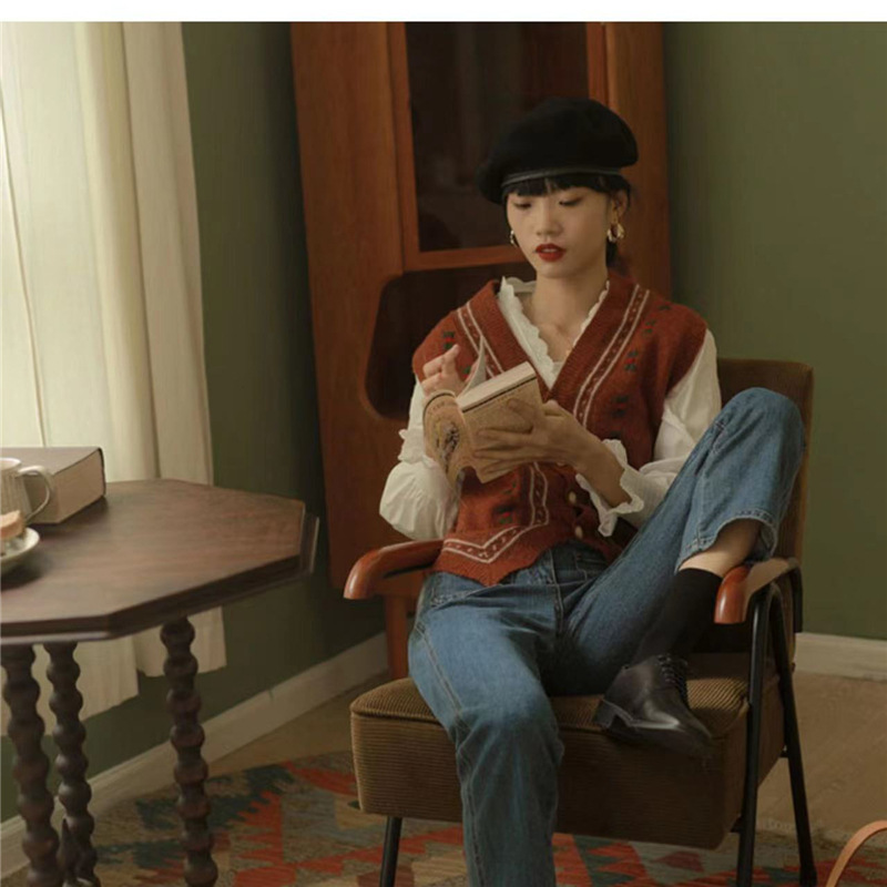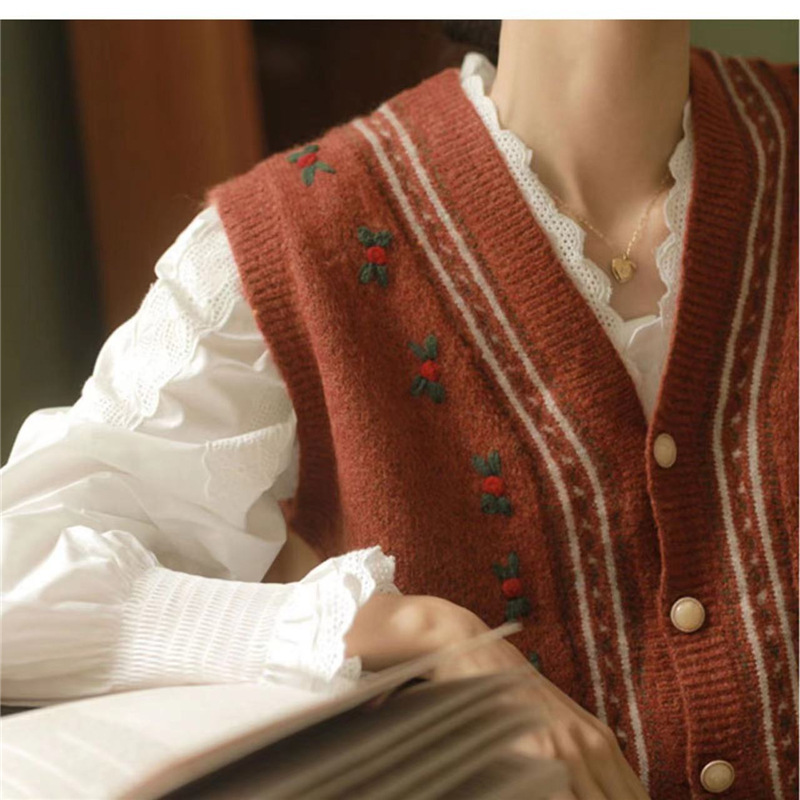 Французский ретро с вышивкой v-образным вырезом маленький ароматный ветер вязаный жилет женский весенний свитер кардиган жилет топ