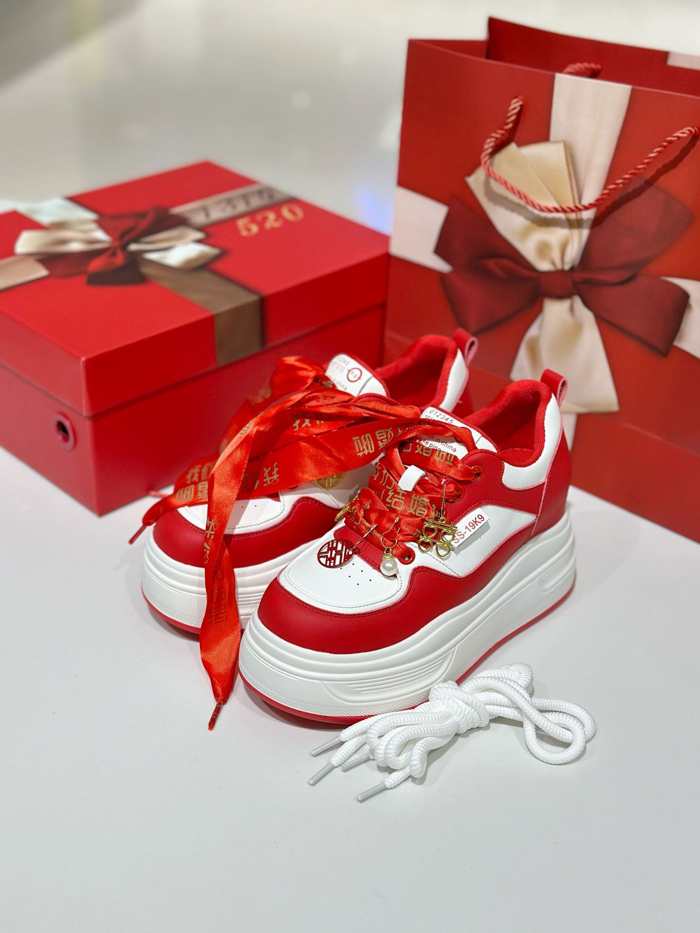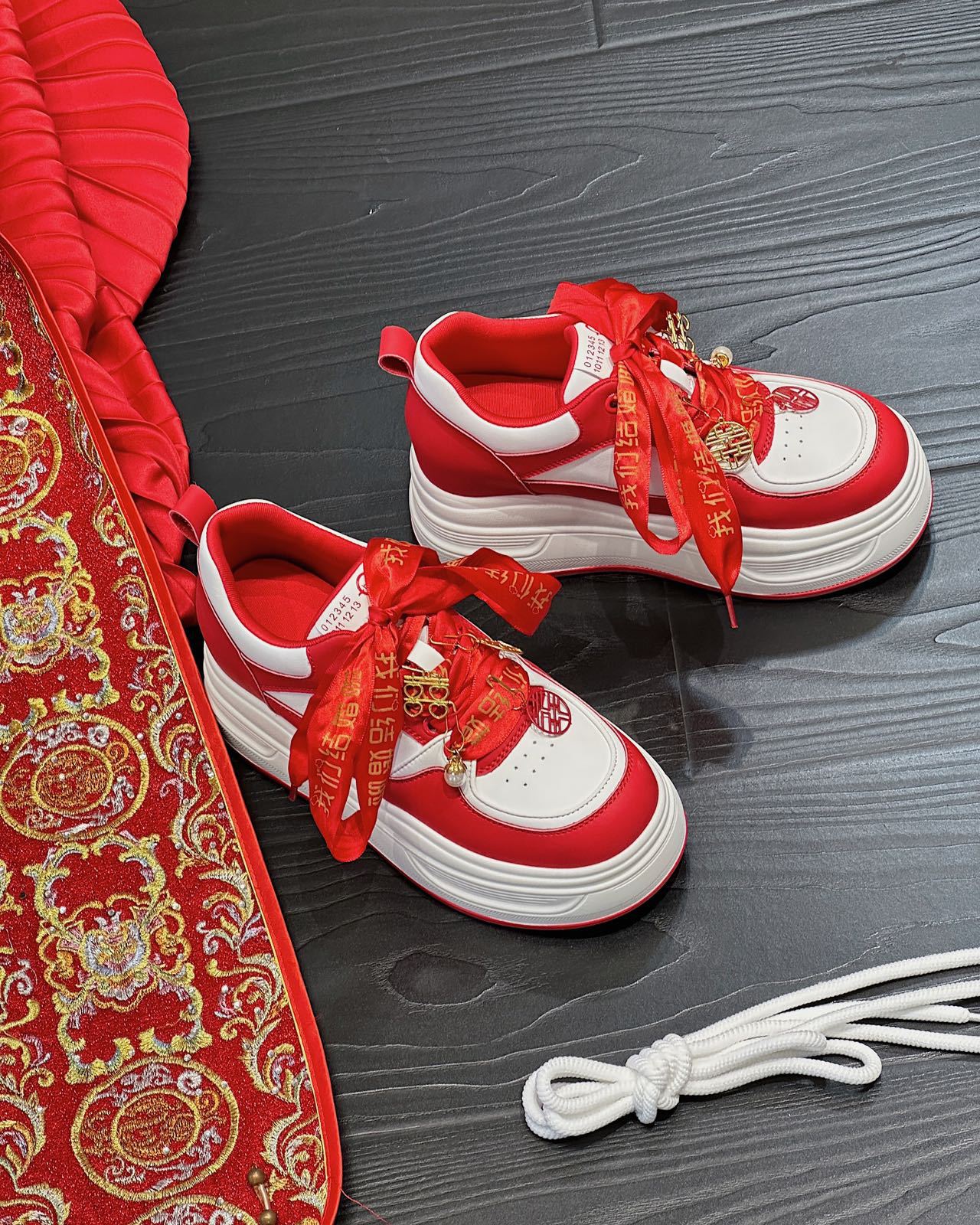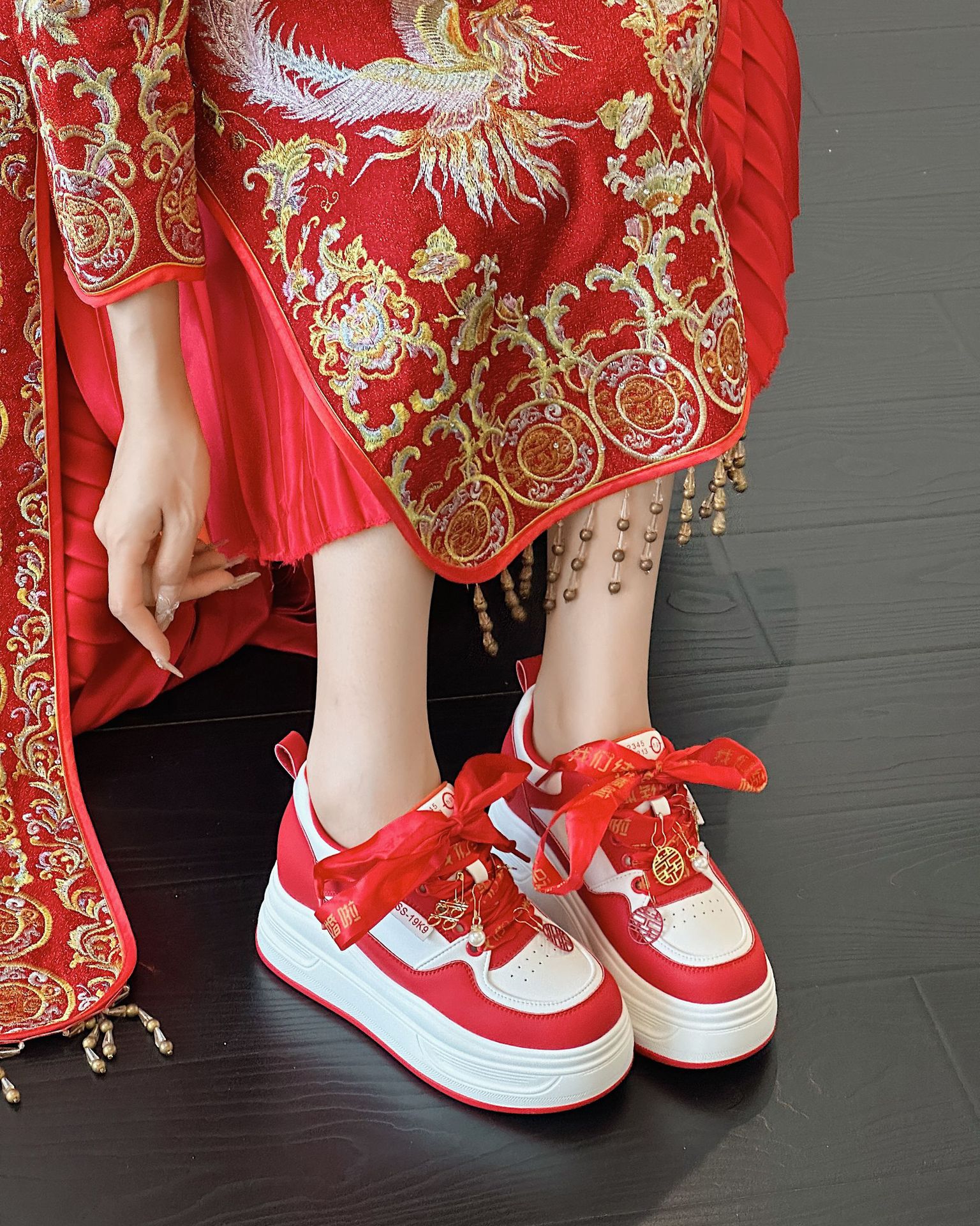 Подарочные красные свадебные туфли Xiuhe, новинка 2025 года, свадебные туфли на толстой подошве, внутренняя высота 9 см, повседневные туфли из натуральной кожи на высоком каблуке для подружки невесты