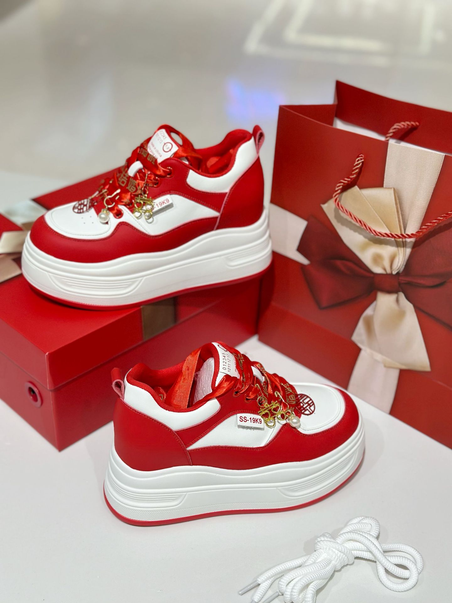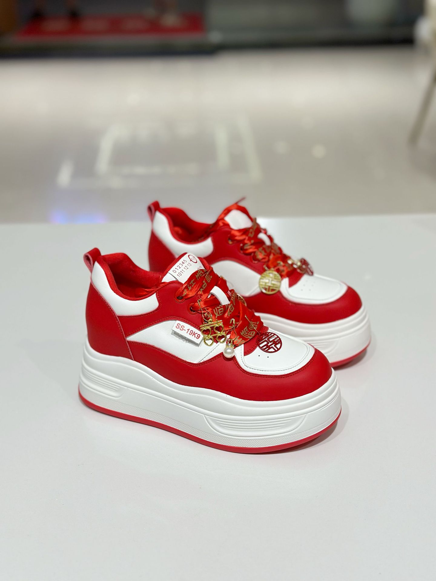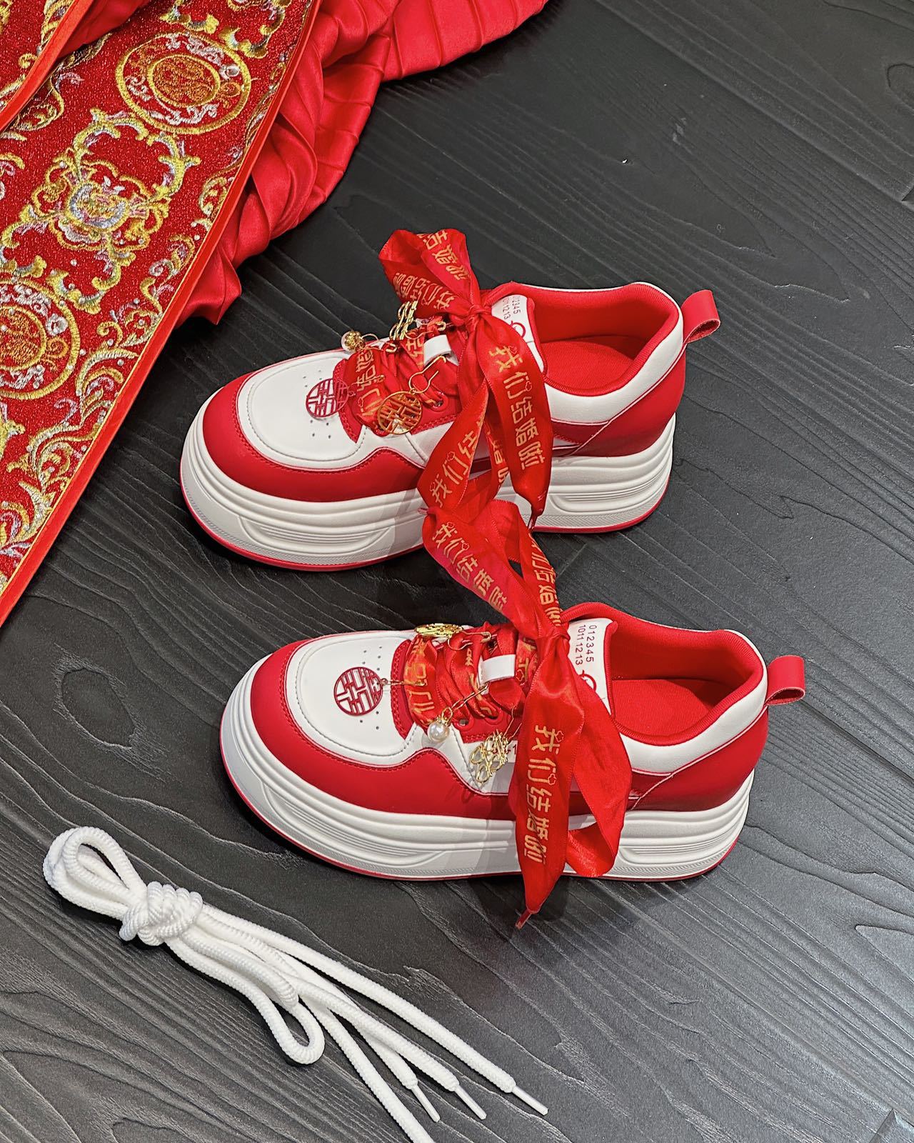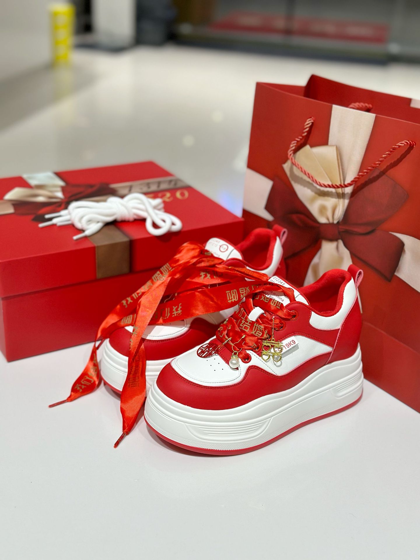 Подарочные красные свадебные туфли Xiuhe, новинка 2025 года, свадебные туфли на толстой подошве, внутренняя высота 9 см, повседневные туфли из натуральной кожи на высоком каблуке для подружки невесты