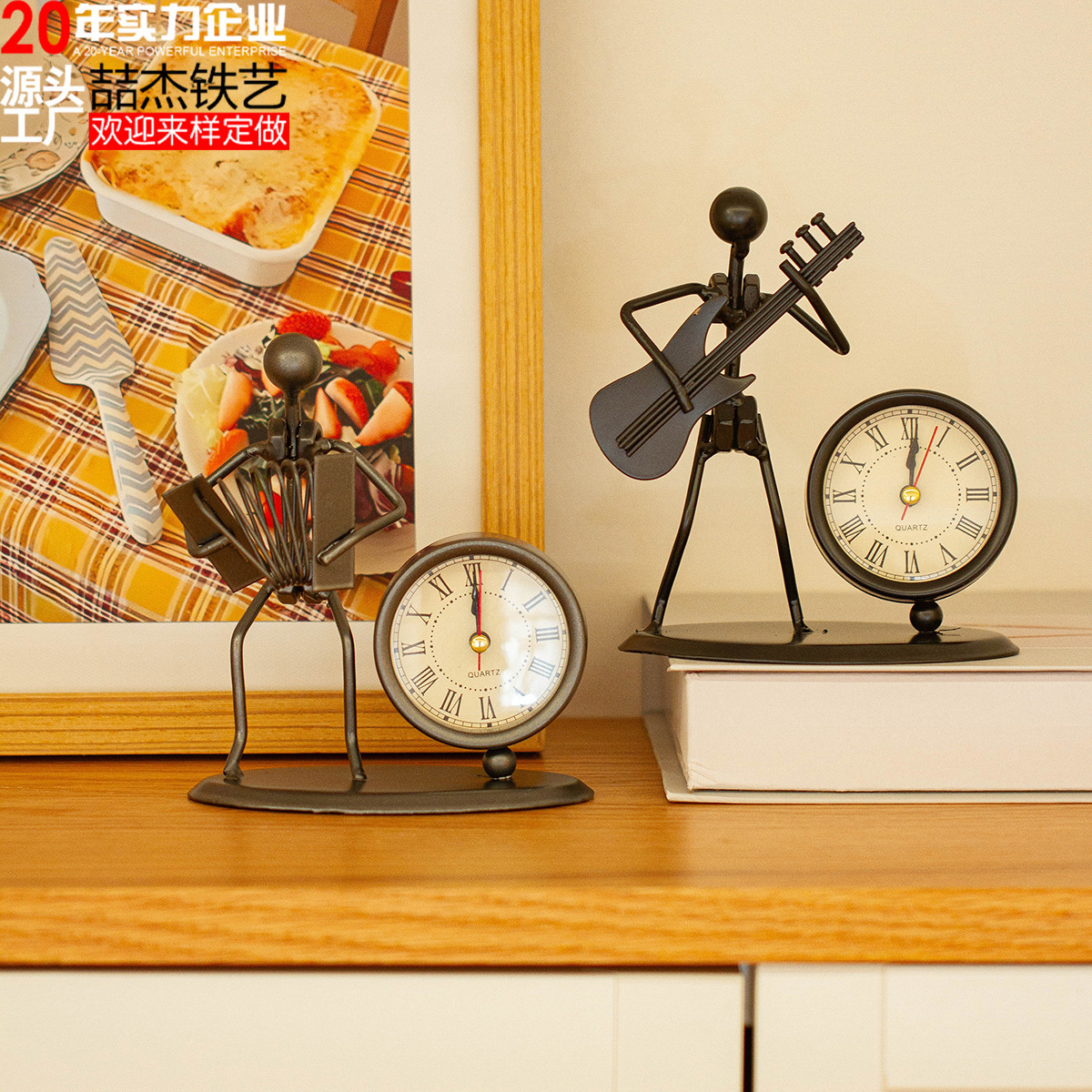 Креативные настольные часы из нержавеющей стали в форме кованого железа, винтажные, стильные, в виде фигурок, подарки на день рождения.